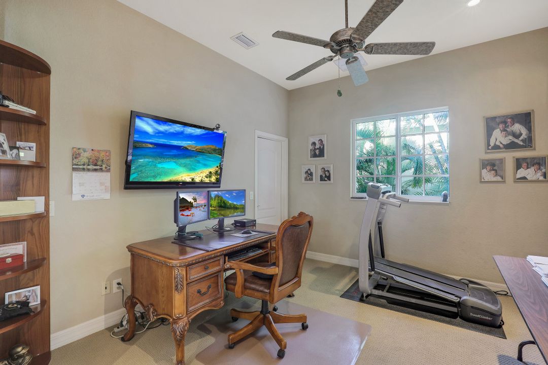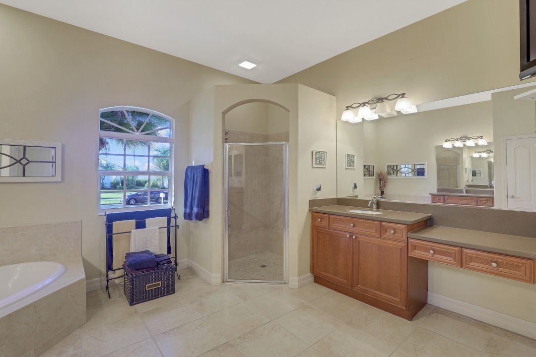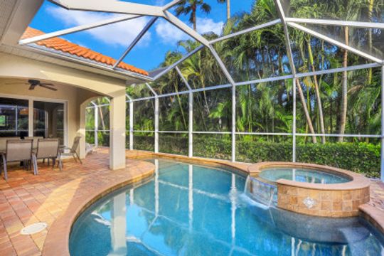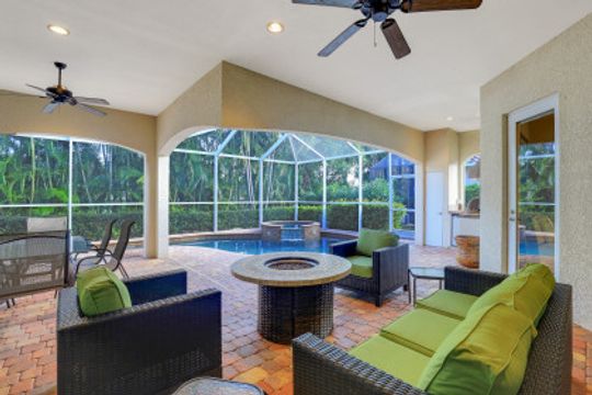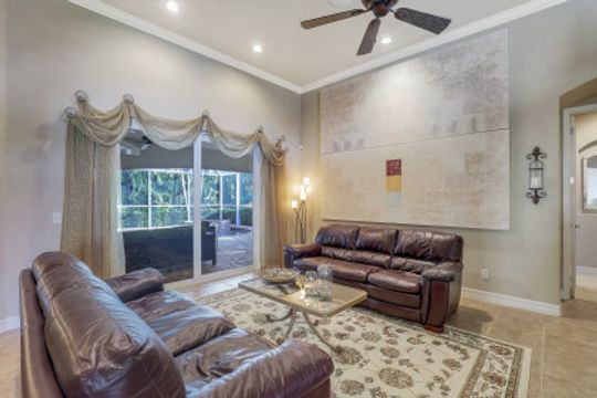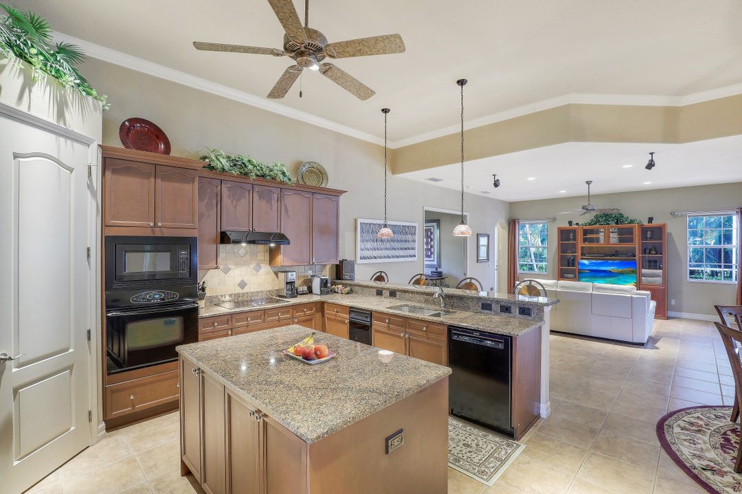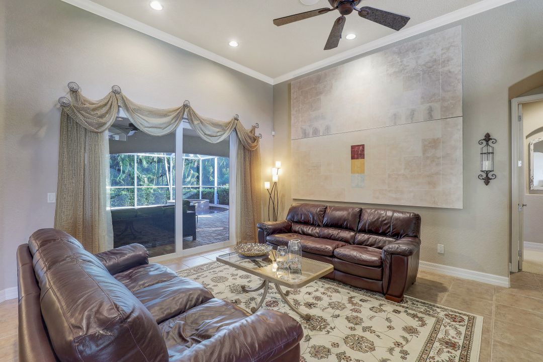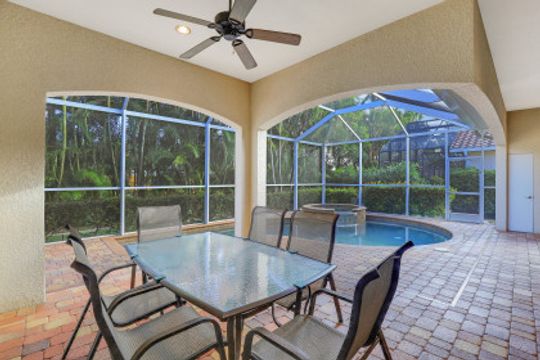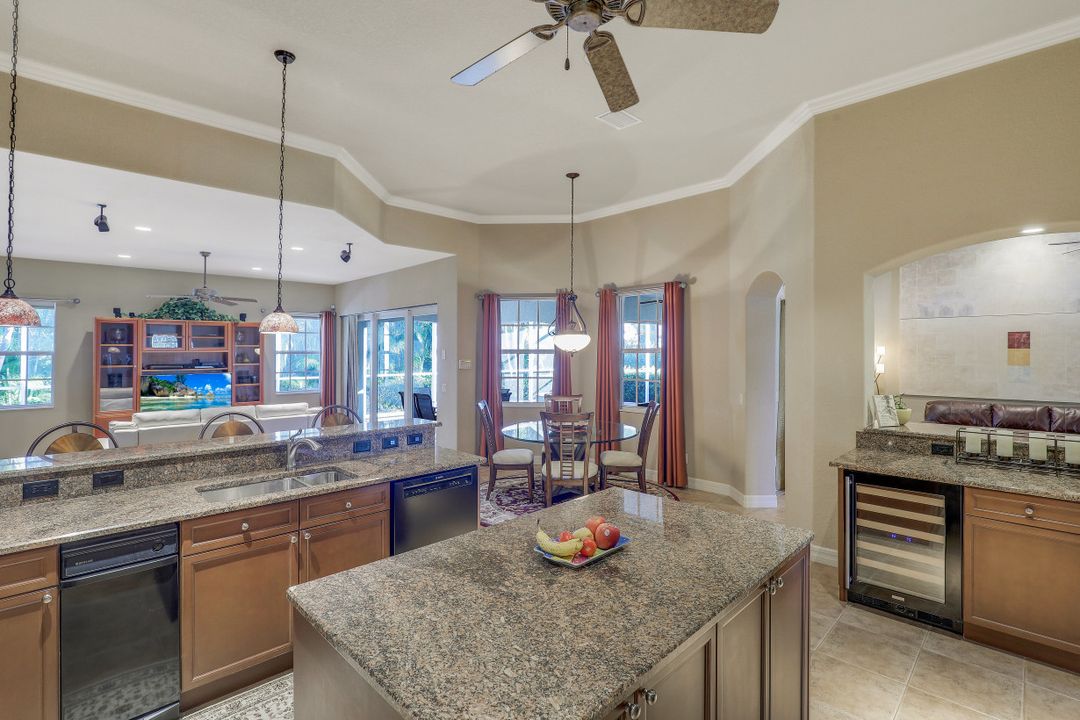 Cape Harbour - Located inside the gates of Cape Coral's premier waterfront neighborhood. This beautiful home features 3 large bedrooms plus a den, 3 full baths, island kitchen with breakfast room and formal living and dining rooms. Additionally, the spacious family room opens to the pool with its full-width cage and pavered deck, spa and outdoor kitchen all landscaped for privacy with lush tropical plantings. Other features include 12' ceilings, 8' doors, wine bar and circular driveway. This highly desirable community offers deep water boat slips, a dry storage marina, waterfront dining, shopping and entertainment.