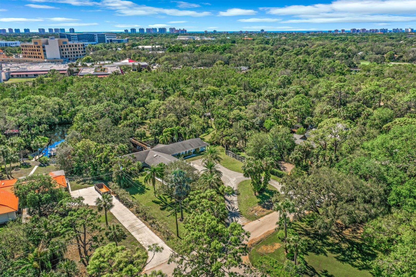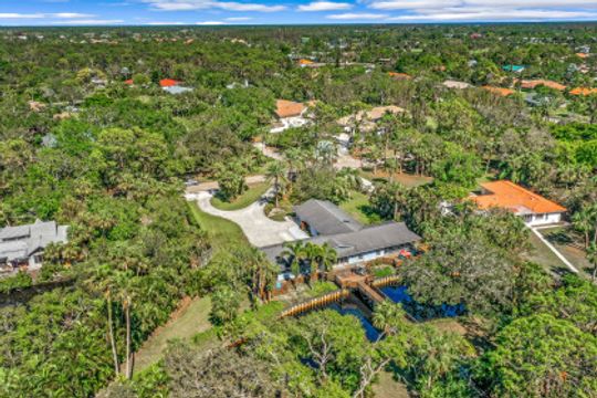 Beautiful 1.5-acre property with Gulf access located in the convenient North Naples custom home community, Cocohatchee River Estates. Home was affected by Hurricane Ian, so is being sold AS-IS at lot value. The peaceful, tranquil area has the natural beauty of Old Florida, scattered with large oaks, palm trees, and tropical plants. A small river inlet of the Cocohatchee River comes up onto the property, creating a gorgeous “lagoon” feature. Seawall along inlet was new in 2013. About 3 1/2 miles to the Gulf by small boat - the owner had a pontoon boat, and said it would take about 30 minutes. Cocohatchee River Estates is a gorgeous, isolated enclave of large acre homesites accessible through Palm River Estates. Wonderful waterfront location in the heart of North Naples.