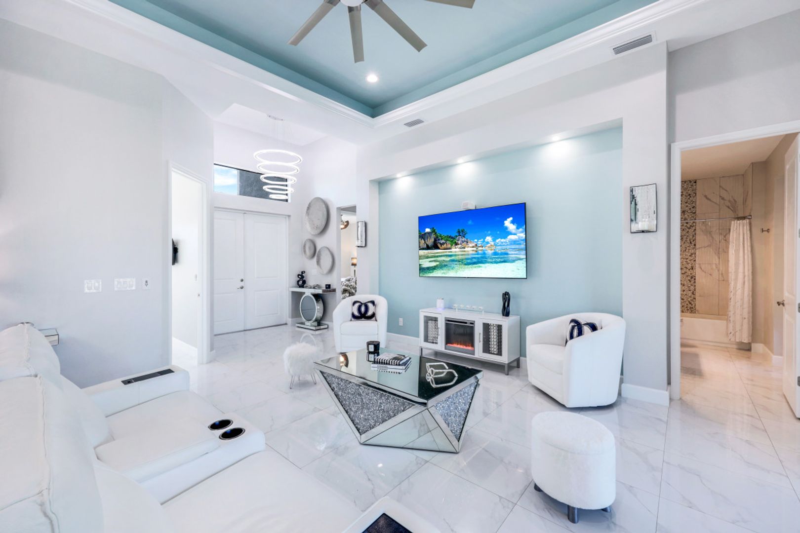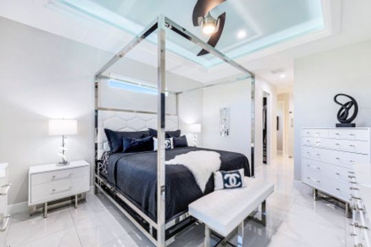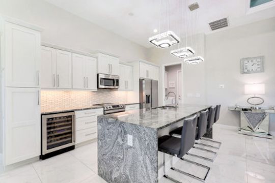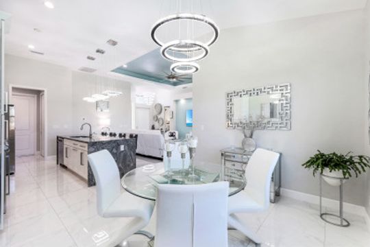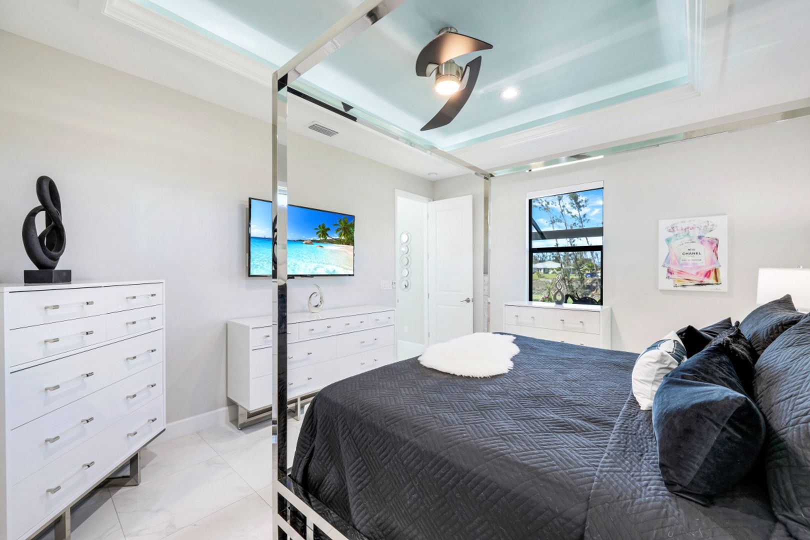 Absolutely impeccable! True pride of ownership is apparent in this immaculate, move-in-ready SW Cape Coral Pool home. Beautifully situated on an almost 0.4-acre lot with 173’ of freshwater canal surrounded by manicured landscaping. Well-appointed outdoor living includes an inviting saltwater pool with a sun shelf, double bubbler & underwater LED lighting overlooking the canal & complimented by a “must have” screened lanai spanning across the entire rear of the home. Upon entry into the home, you will immediately be captured by the open living concept cultivated for both entertaining & everyday living. Triple sliders with electric blinds create an easy flow between the stylish indoors & great outdoors. Large scale Italian porcelain flooring throughout the entire home. High ceilings with lighted tray ceilings in both living & primary suite promote the natural light. Custom zebra blinds manage the sun when you’re ready to unwind. Exquisite custom lighting & fixtures throughout. The stunning kitchen itself is appointed with an eye-catching waterfall edge granite counter, oversized island with pendant lighting, built in wine cooler, under cabinet lighting, integrated garbage pull out, upgraded SS appliances & white shaker cabinets with plenty of storage with soft close feature & dovetail construction. Conveniently located, the adjacent laundry room offers a large closet that can be used as a pantry. The split floorplan with a total of 4 bedrooms & 2 bathrooms, allows for a private primary suite with double, spacious walk-in-closets complimented by a tastefully designed ensuite bath with his and hers vanity, large walk-in shower, frameless glass shower door, pebble tile floor in shower, Italian glass mosaic tile waterfall & private water closet. Custom Paver entryway, pool deck/lanai and driveway leading to a full size 3 car garage. This home captures the essence of modern conveniences throughout, thoughtfully laid out and will not disappoint! Welcome to SW Florida living!