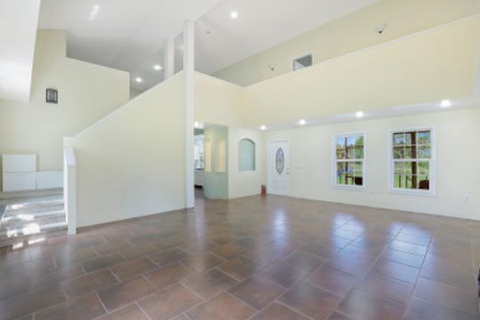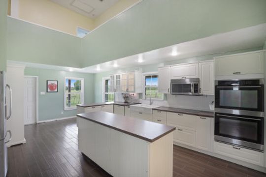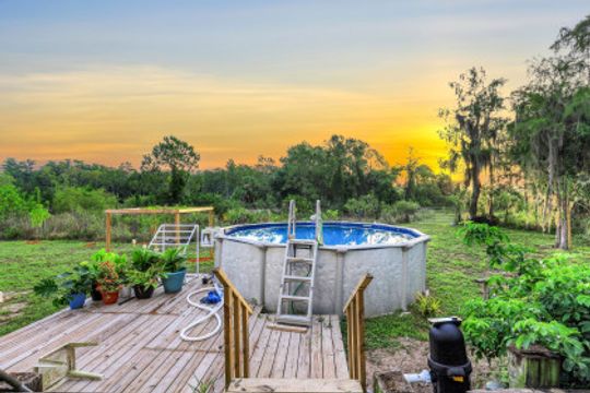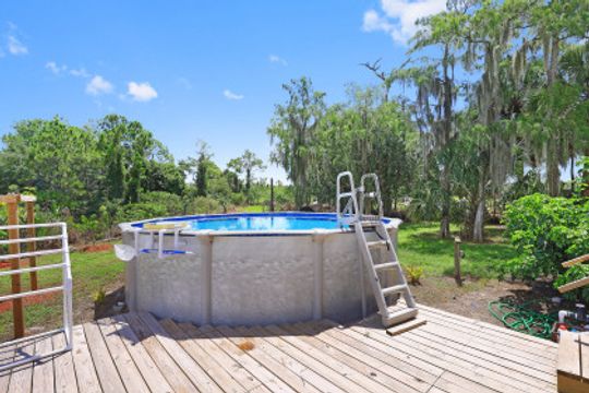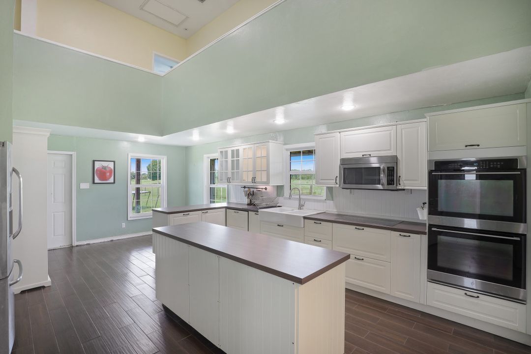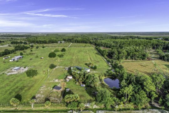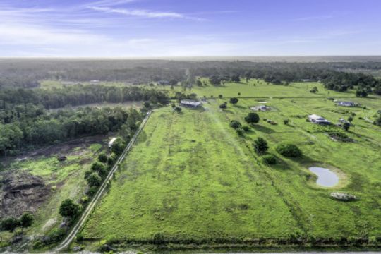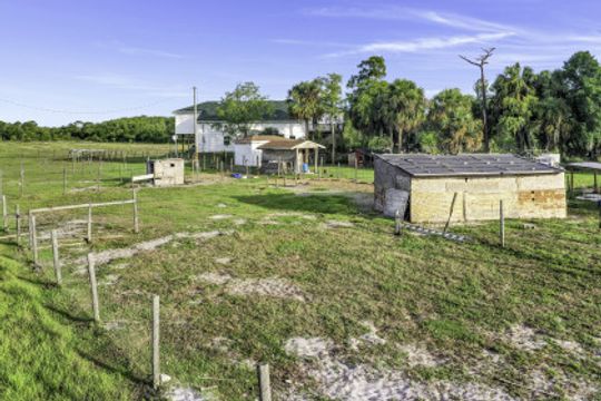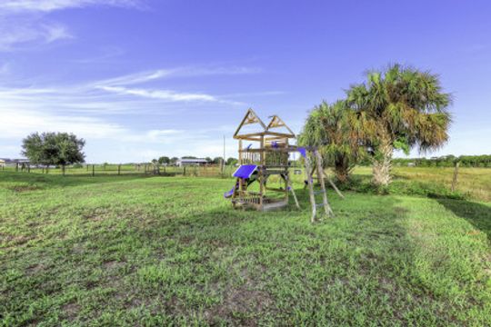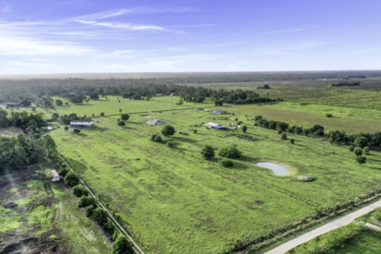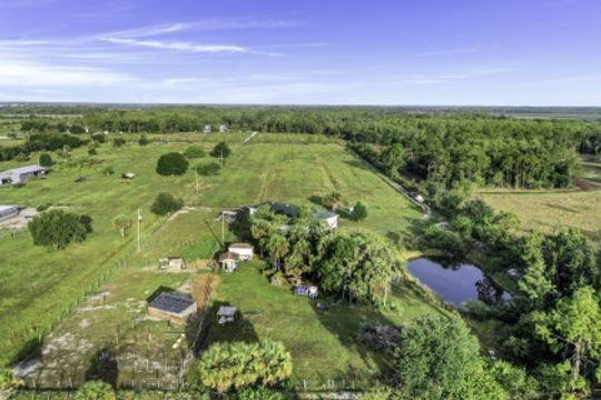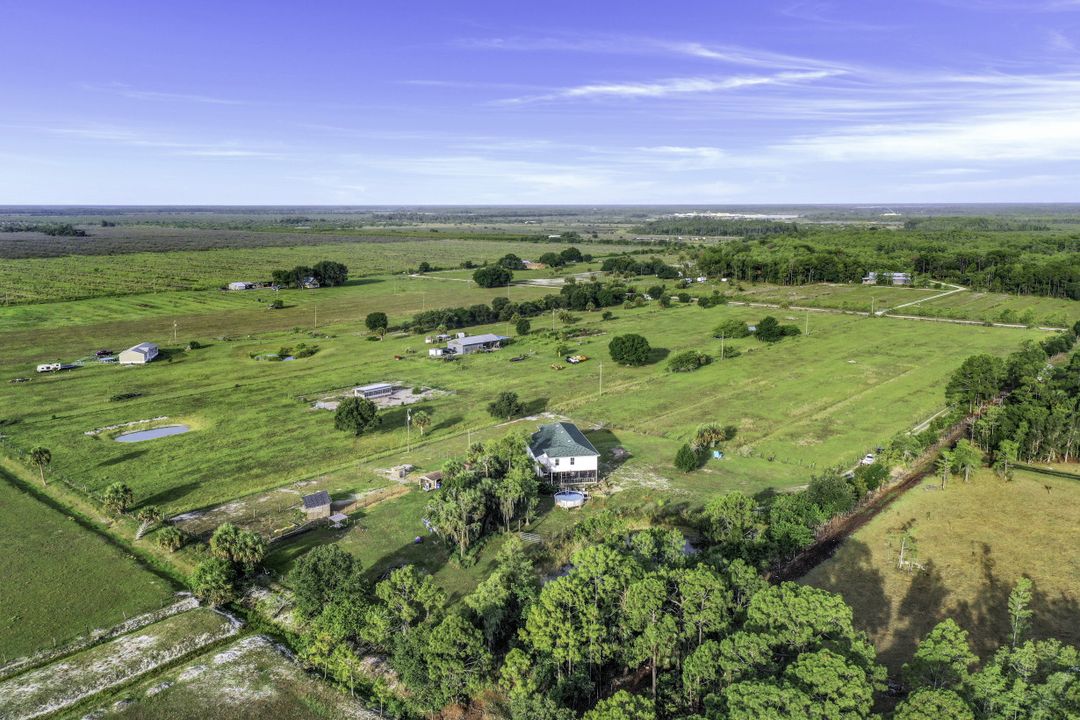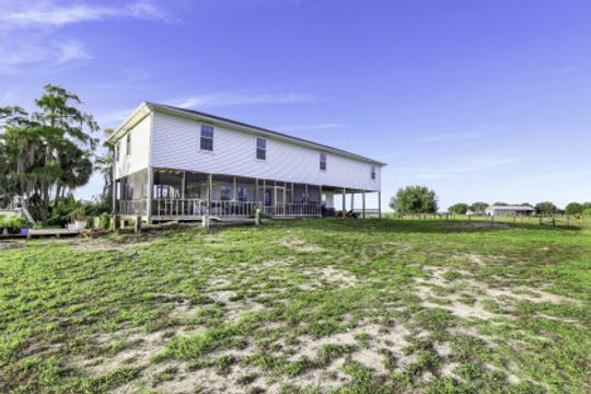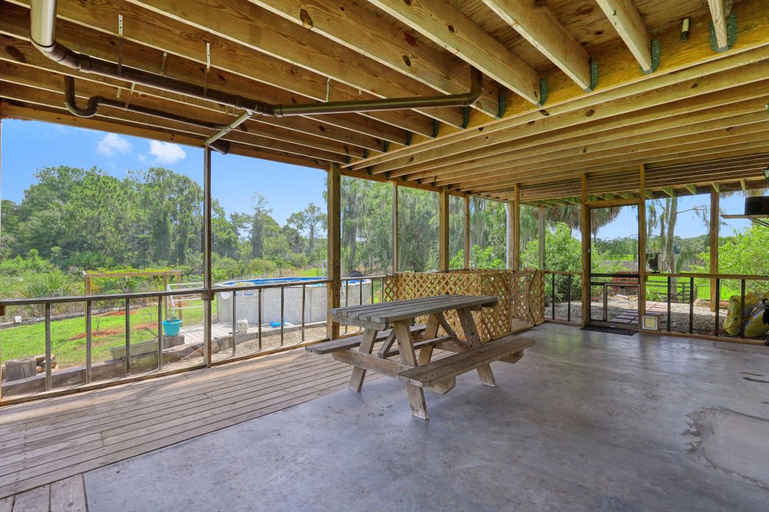 Enjoy breathtaking sunrise views on Misty Morning Lane from this 2 story 3 bed 4 bath home sitting on 8 acres of land in secluded, serene Wildcat Farms. Once known as a citrus grove the mornings sometimes presents an airy light mist capturing the beauty of country/rural living, hence the name Misty Morning. This creative two story floorplan features an expansive under building wrap around porch, half screened providing plenty of room for relaxing & half open, perfect for parking the RTV's or using as additional storage. First floor showcases second story cathedral ceilings, tile throughout the greatroom area & a freshly updated eat-in island kitchen which features plenty of cabinets, double wall ovens, electric cook top surface & double farmhouse sink. The second floor, open to the first, hosts a large newly painted owners suite with private balcony, his & her walk in closets & private bath with walk in shower & dual vanities. Two guest rooms also newly painted each with a private bath. Impact windows & sliders with lifetime warranty throughout. Your own private 10-15' deep pond, above ground pool & plenty of land for gardens, farm animals & the kids to play freely without worry.