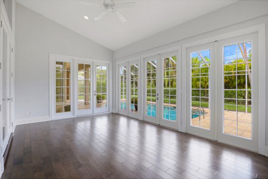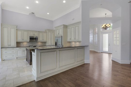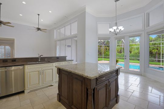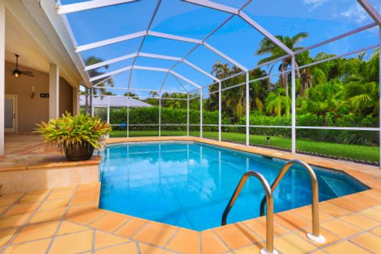 You'll love this 3135 sqft, COMPLETELY RENOVATED pool home located in Mill Run! Just minutes from Naples’ beautiful beaches, upscale shopping, and many dining options, this 4 bedroom plus den, 3 bath home has something for everyone. Features include a circular, oversized paver driveway, 2 car attached garage, NEW tile roof, high ceilings with crown molding, NO carpet throughout, newer A/C system, and the privacy of a cul-de-sac. The great room boasts ample natural lighting with direct access to the lanai and is overlooked by a bright kitchen w/ travertine tile, granite counters, cabinets w/ upper crown molding, custom backsplash and a suite of stainless steel appliances. The generously sized master bedroom also provides a naturally lit den space and a spacious walk-in closet with wooden shelving, as well as your own private ensuite complete w/ soaking tub and a large walk-in shower with dual shower heads. The lanai gives you stunning landscaped views and is perfect for hosting or relaxing by the private pool. Mill Run is a highly desirable community with LOW HOA fees and amenities to enjoy, such as a clubhouse and community pool.