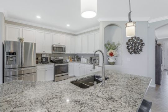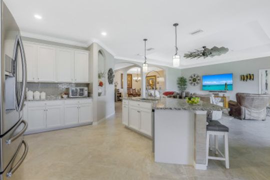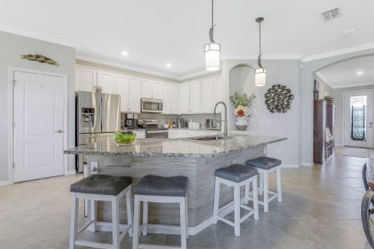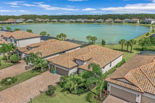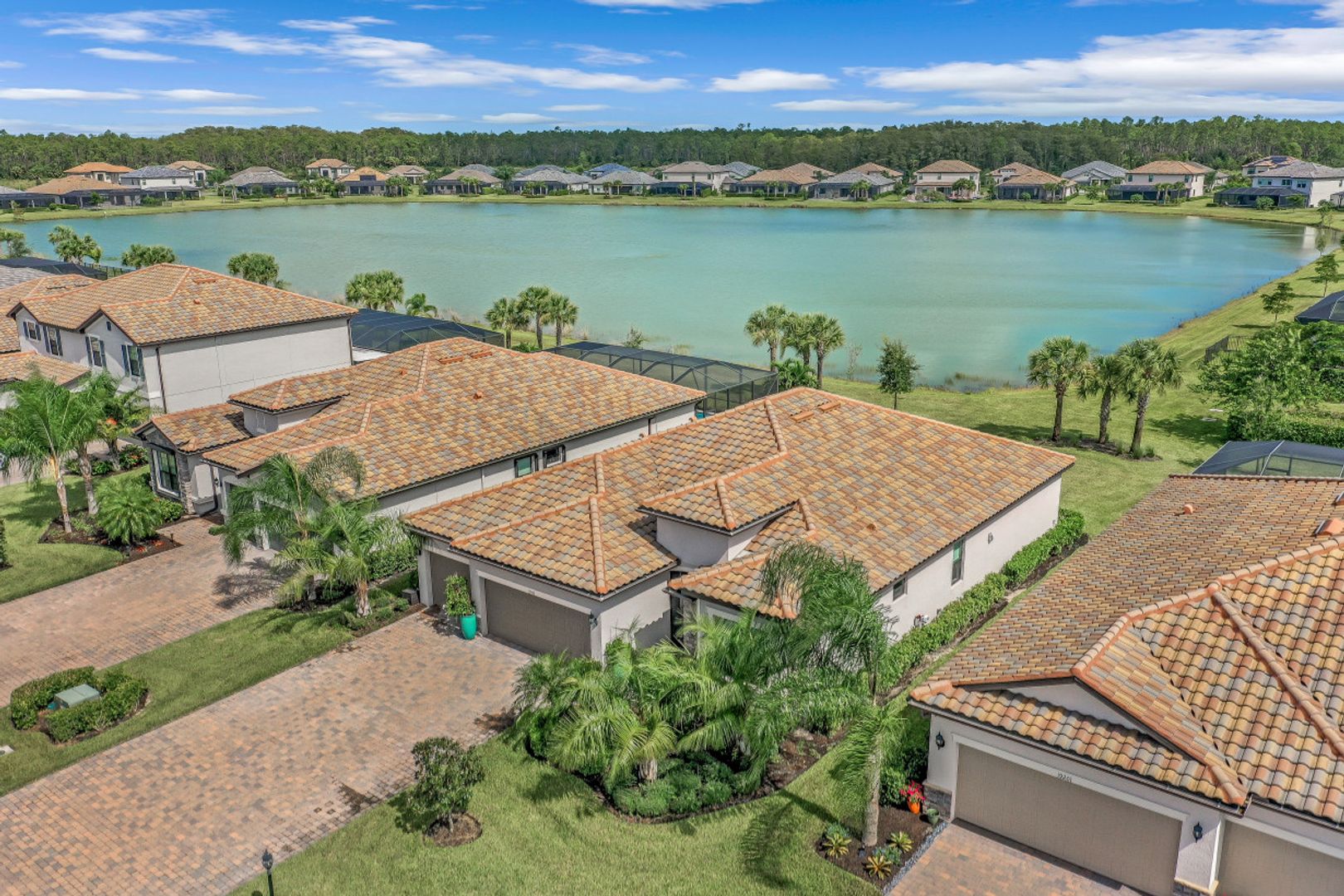 FANTASTIC OPPORTUNITY TO PURCHASE THIS LAKEFRONT MANOR HOME IN THE PLACE AT CORKSCREW! This "Princeton" residence offers 4 Bedrooms, 2 Full Baths, 3 Car Garage, 2,251 sf living area. Relax on your shaded lanai (Northern rear exposure) and take in the tranquil water vistas. The spacious backyard is perfect for a Custom Pool/Spa with oversized paver deck, a fenced yard... or BOTH! This home features an open concept Greatroom and Kitchen, with an elegant Formal Dining Room (or could be used as an office). Features of the home include: 21" Porcelain Tile, White Cabinetry w/Custom Built-ins in Kitchen, Decorative Backsplash, Upgraded Light Fixtures/Ceiling Fans, Plank Tile on Island Face, Powered Shades on Sliders, Crown Molding, Granite Tops in Kitchen/Baths, Heavy Glass Frameless Enclosure in Owners Bath. Amenities at The Place are second to none!: Resort Pool w/100' Waterslide and Spa, Indoor Restaurant, Bourbon Bar, Cafe, Outdoor Bar, Fitness Center, Movement Studio, Tennis, Pickleball, Bocce, Basketball, Playground, Dog Park, Complimentary Child watch program, Spa Services, (2) Manned Guard Gates. Low HOA's include lawn maintenance, irrigation water/system. NEW PUBLIX COMING SOON!