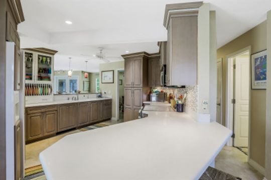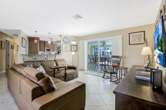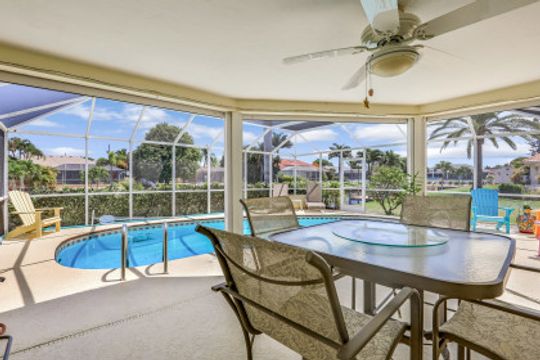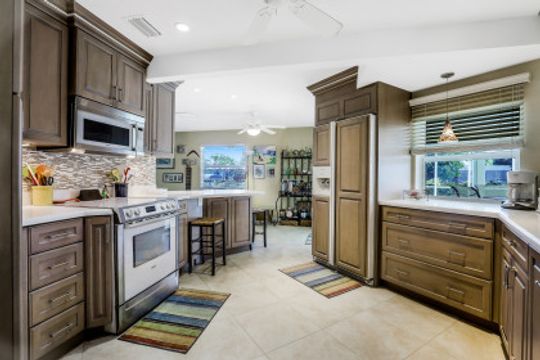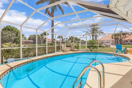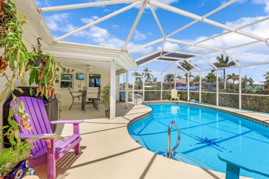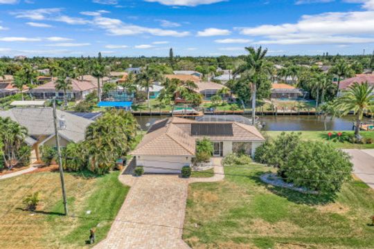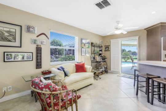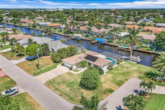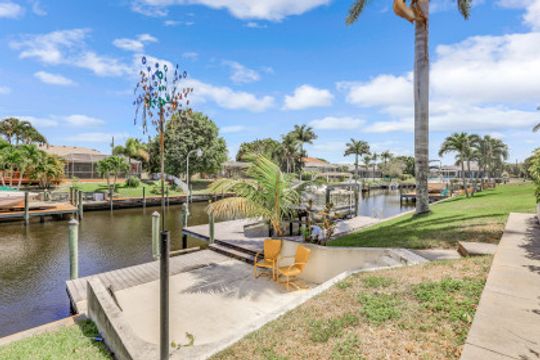 Quick Direct Access - No Bridges...This well maintained pool home was totally renovated in 07/08 including tile roof, kitchen, hurricane windows & more. Two bed two bath split floor plan showcases tile throughout and a double ended breakfast bar overlooking the great room area and the open den area with built in desk & cabinets. The custom kitchen takes advantage of every bit of space with its built ins & storage and features maple cabinets, pantry with roll out shelves, soft close drawers, Bosch appliances & Kitchen Aid refrigerator. The screened pool/lanai area with partial cover hosts a solar heated pool with decorative tiles and lanai with electric roll shutters making it a great space for entertaining. Enjoy the shade of the palm as you relax canal side on the extended concrete deck/dock. The oversize lot has 110' of water frontage on an 80+ foot wide canal plus a walk around 7500 lb boat lift. Beautiful mature landscape and extra wide paver driveway gives this house great curb appeal. Located just south of Viscaya Pkwy places you near shopping, restaurants, hospital, parks and more.