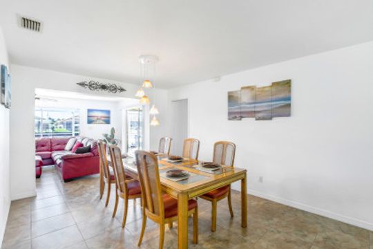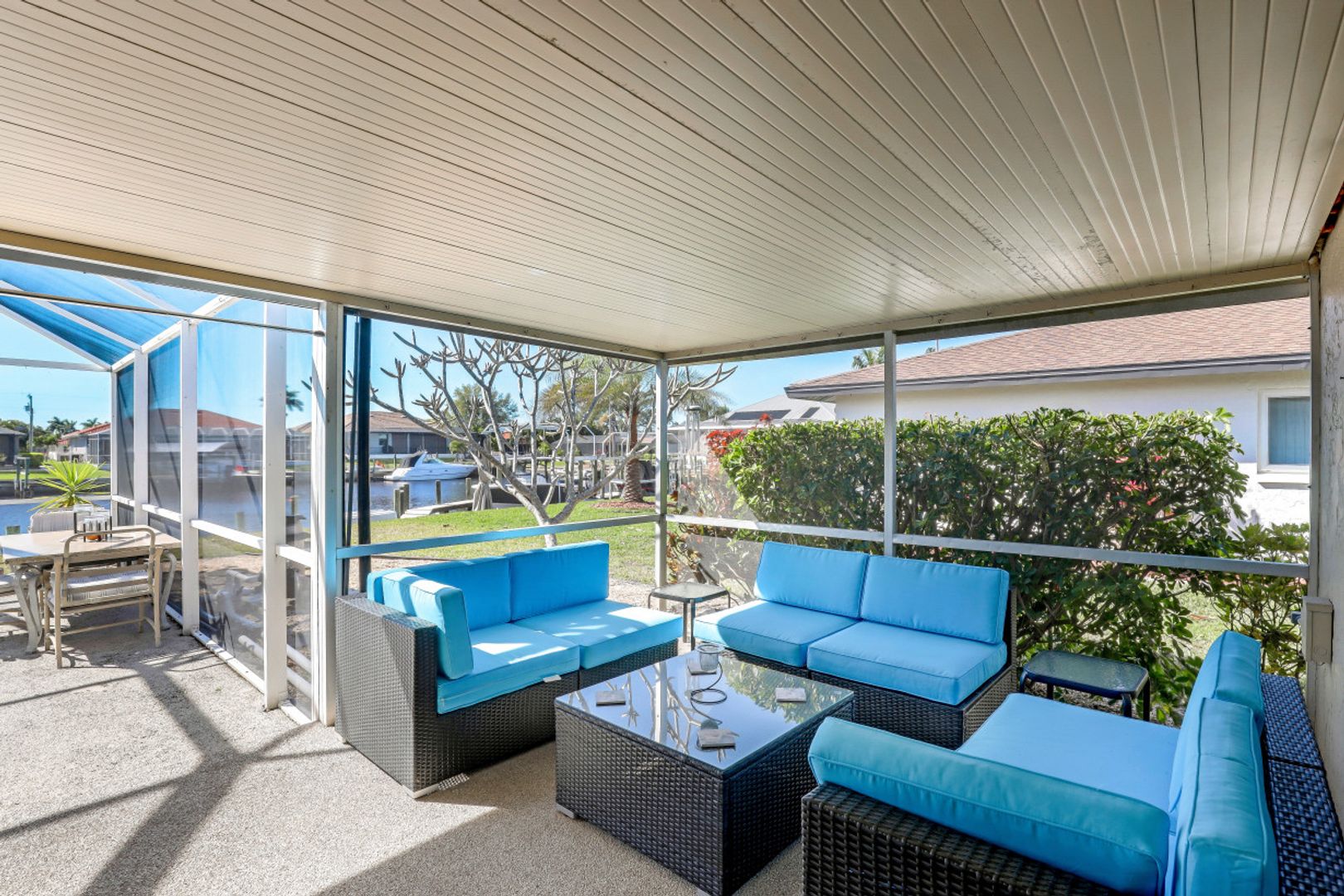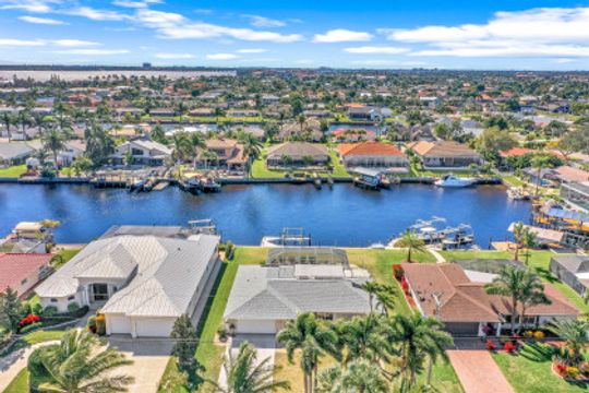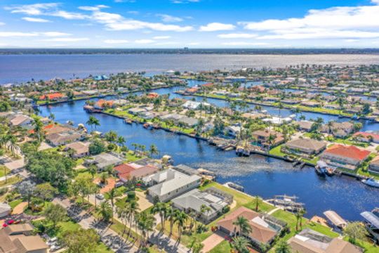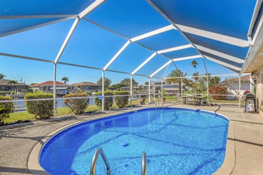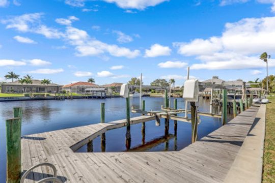 SOUTHERN EXPOSURE - SAILBOAT ACCESS - POOL HOME ON A 200 FOOT WIDE CANAL - located just MINUTES to open water and the Caloosahatchee River! Nestled in the highly sought after neighborhood of Palaco Grande this home features 3 BR, 2 BA with a 2 car garage & just under 2000 Sq Ft of living space. Home is a split floorplan with formal living and dining areas, gorgeous water views, new Roof in 2019 & AC in 2017. The kitchen includes plenty of cabinet and counter space, double sink, white cabinets and pantry. The owner's suite overlooks the wide canal views and has private sliding glass doors to the outdoor living area & walk-in closet! Enjoy the large outdoor living area that caters to the Florida lifestyle with a solar heated pool, private covered patio, wooden dock (dock needs work), 10,000lb boat lift and captains walk. Palaco Grande is a mature beautifully maintained neighborhood known as a boater's paradise with unrestricted boating access which is perfect for large or small vessels and sailboats alike. You deserve to enjoy everything that SW FL has to offer - boat, sail, kayak, SUP & jet skis! White sandy beaches & world class fishing all from your back yard!