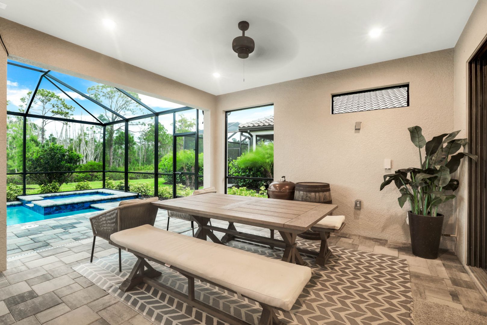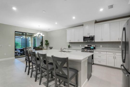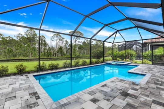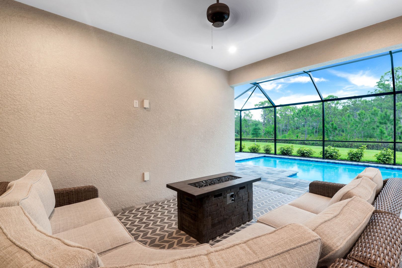 Expansive Preserve Views from your luxury outdoor living space with heated pool & spa. Estero Pointe is a gated community conveniently located West of 41, close to beaches, shopping, restaurants, airport & golf courses, including nearby Estero Country Club. This is a natural gas boutique community nestled in the preserve surrounding Estero Bay & is located only moments from Mullock Creek. This tributary of Estero Bay (the state’s first outstanding body of waters designated as an Aquatic Preserve) provide opportunities for fishing. Built in 2021 & rarely used, this home feels like new construction & looks like a model home with beautiful negotiable furnishings! The Azzure floor plan offers two bedrooms and a flex room to be used as a third bedroom or office space. This home is well-appointed, the kitchen provides GE, stainless appliances, with natural gas cooktop, smart shut cabinets, walk-in pantry, and quartz countertops. Other features include, led lighting, contemporary fixtures, solid core doors, impact, tinted front glass all under 10 ft. ceilings. Large laundry room with front load washer & dryer. Don’t miss out on this rare opportunity to own a brand new home in Florida
