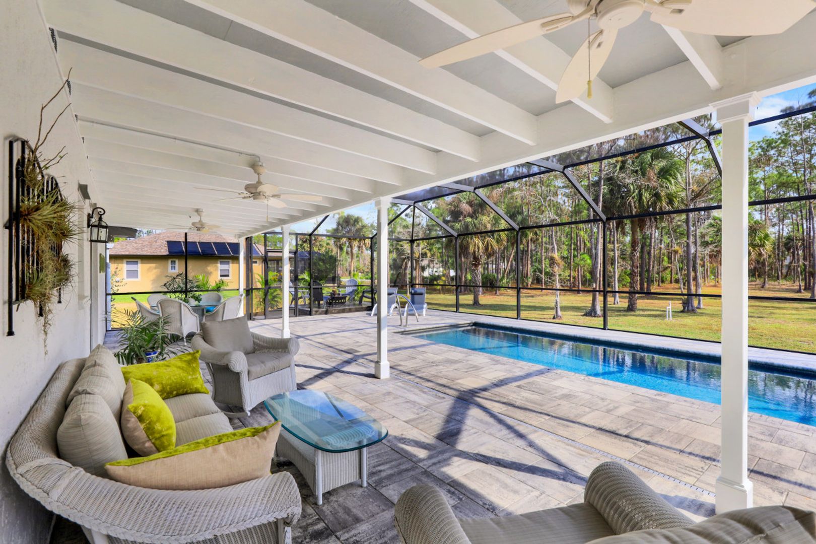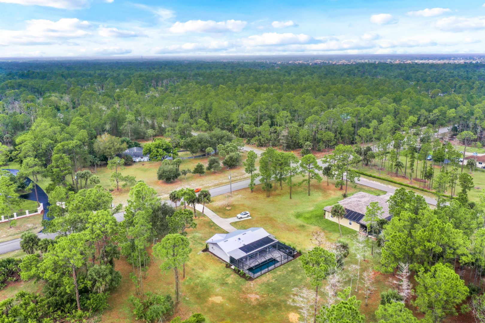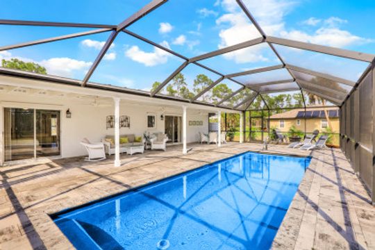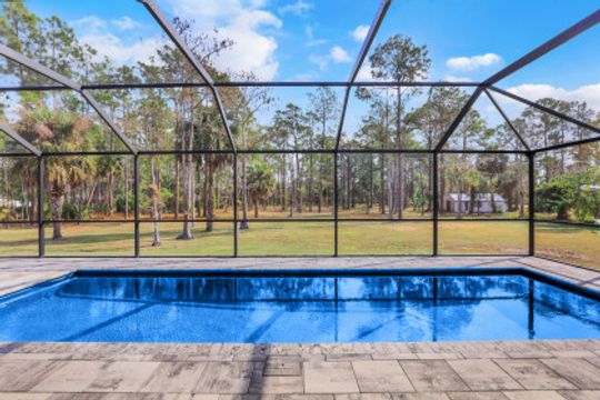 3 BDRM/2BA GOLDEN GATE ESTATES POOL HOME ON 2.34 ACRE LOT. UPDATED AND METICULOUSLY MAINTAINED ~ pride in ownership shows! You’ll literally have nothing to do but move in and enjoy this “cream puff” on 2.34 mostly cleared acres. ALL NEW IN 2019: metal roof, solar heated in-ground pool with swim-out bench, expansive brick paver lanai, and pool cage. Sitting area for four around the stand alone fire pit. Updated kitchen with solid wood cabinets, soft close doors/drawers, granite counter tops, and tile backsplash. Newer stainless kitchen appliances (2016), and brand new stainless stove (Jan. 2022). Newer washer/dryer. Updated master bath with jetted tub, glass shower enclosure and double sink vanity. Updated guest bath. Luxury vinyl tile throughout; tile in bathrooms. Concrete driveway with plenty of parking. Great location ~ right off Randall Blvd (across from Valencia Golf and Country Club entrance). Just minutes to the Immokalee Rd/Randall Blvd Publix, CVS and Dunkin’ Donuts, and just 10 minutes to the all new Big Corkscrew Island Regional Park.