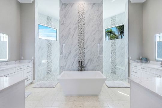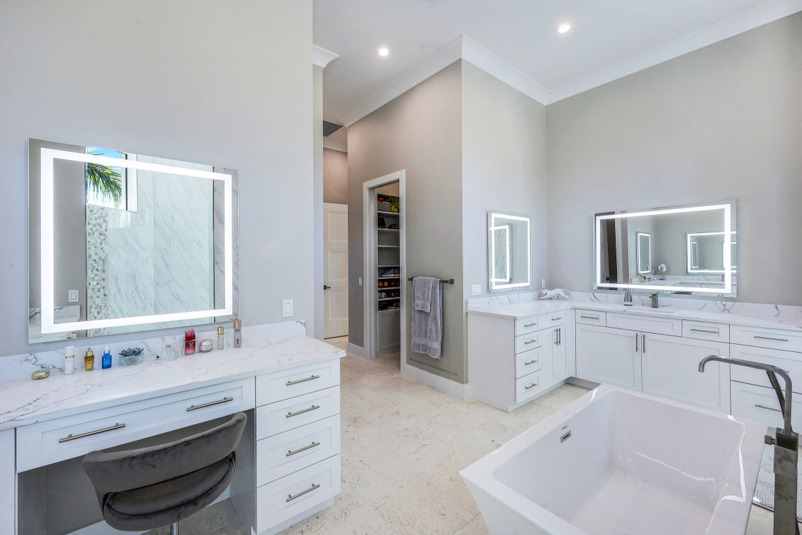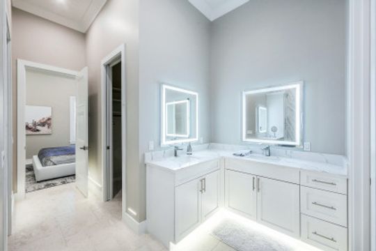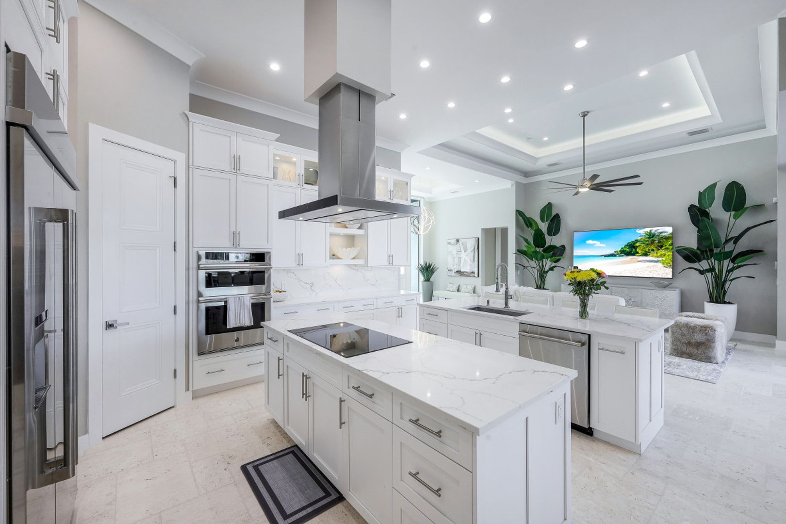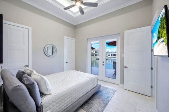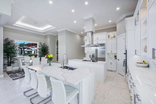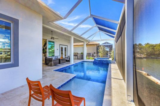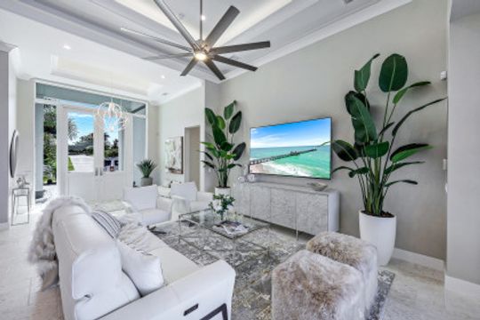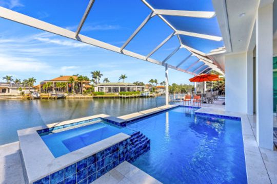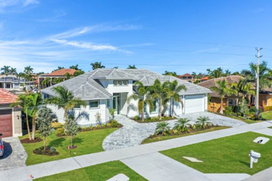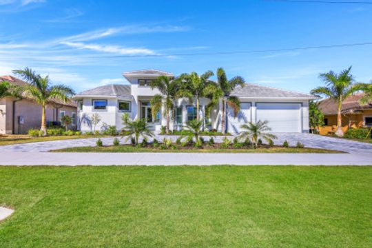 Stunning brand-new custom-built luxury coastal-contemporary residence with big wide water views. Direct access with 100' of new seawall and minutes to open water. This spacious light and bright 5 bedrooms, 3.5 baths home has an open great room concept with gourmet kitchen breakfast bar, and separate dining area. The coastal floor plan includes ultra-custom features with high-end finishes and upgrades. Stone flooring, 10-foot entry doors, 90-degree sliders, soaring 12-16 ft coffer ceilings with crown detailing, tricked-out LED lighting, dual ACs, smart home tech, frameless cabinetry, quartz counter-tops, Jenn Air appliances, impact glass windows and doors. Two master suites with his & hers custom closets. Master bath has a large walk-in shower, dual sinks and soaking tub. The 2nd master bath has an ultra-luxurious steam shower. Enjoy beautiful views from your large sweeping veranda with Saltwater pool, cascading spa and summer kitchen. Oversized 3-car garage with 10-foot overhead doors and huge circular driveway. Tastefully decorated with high quality furnishings. Built more than a full foot above required flood code with no front entry steps. Own your slice of paradise today!