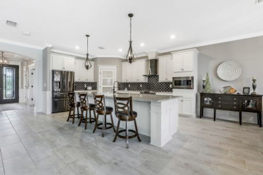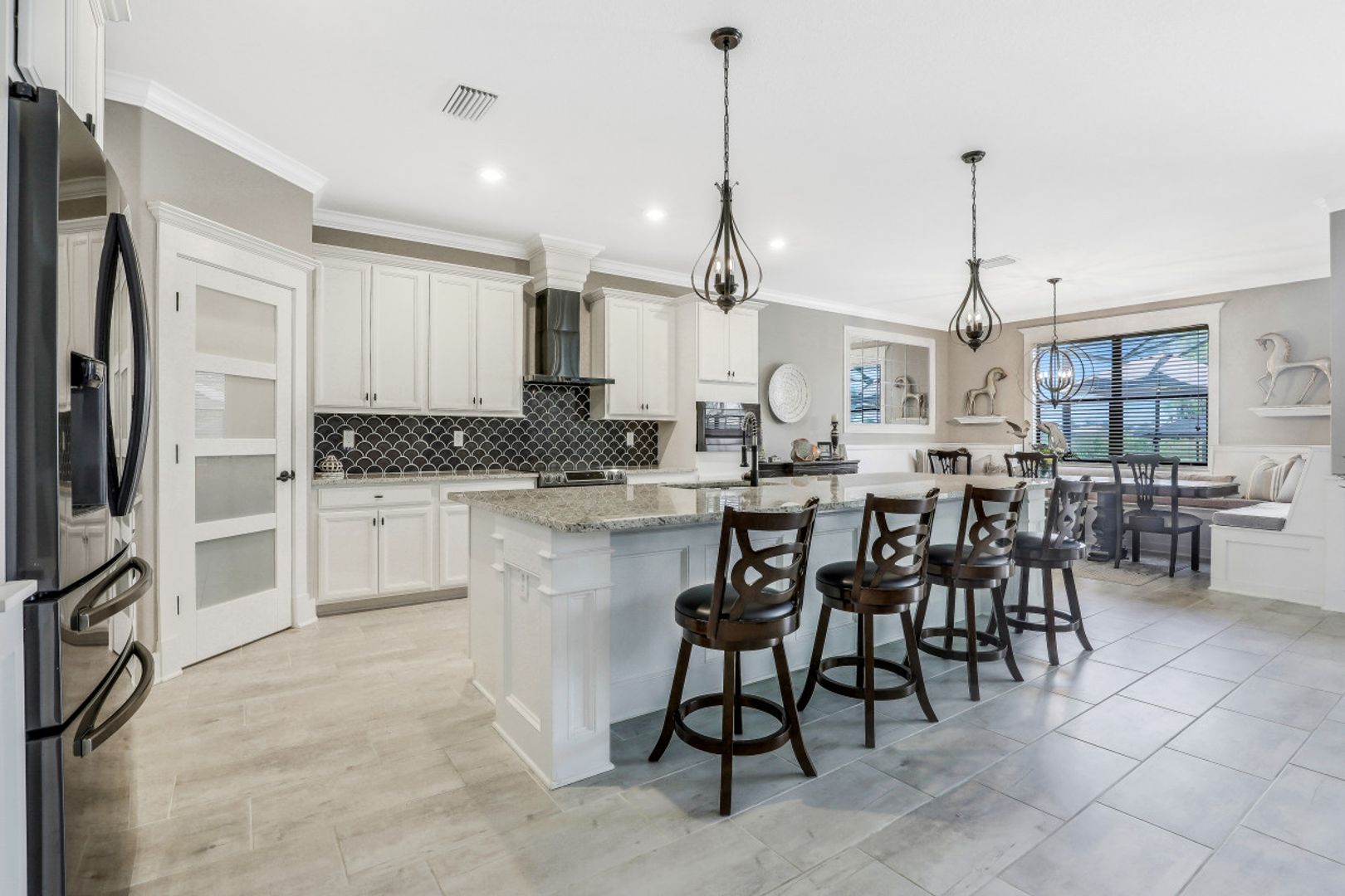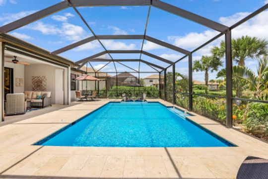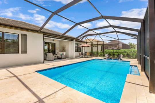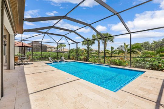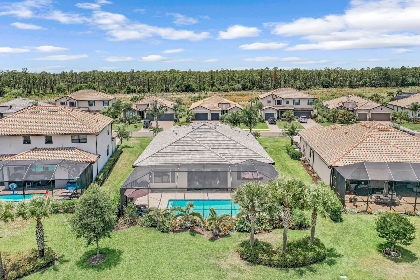 EXQUISITELY UPGRADED SUMMERVILLE POOL HOME IN THE PLACE AT CORKSCREW... This recently built residence offers 3 Bedrooms + Den, 3 Full Baths, 3 Car Garage, with just under 2500sf living area. The oversized homesite with ESE Rear exposure provides for peaceful sunrises over the trees/marsh. Relax in the Custom/Heated/Saltwater Pool with Travertine Stone deck (installed after closing). Options include: Plank Tile (throughout the home... no carpet anywhere!); White Cabinetry, Crown Molding, Granite Tops. Features installed after closing: Woodwork/Custom Mirrors/Chair Rail/Trim + Ceiling Detail throughout home, TV/LED Fireplace Buildout in Greatroom, Modified Kitchen Layout w/Wall Microwave Oven, Hood and Upgraded Dark Finish Appliances; Built-in Dining Bench, Roll down Bug Screen on Lanai, Custom Office Bookcases, Closet Organizers in Master, Storage Rack and Wall AC Unit in Garage. The Amenities at The Place at Corkscrew are amazing... Resort Pool w/100' Waterslide and Spa, Indoor Restaurant, Bourbon Bar, Cafe, Outdoor Bar, Fitness Center, Movement Studio, Tennis, Pickleball, Bocce, Basketball, Playground, Dog Park, Childcare Center, Massage Services, Two 24 Hour Manned Guard Gates.