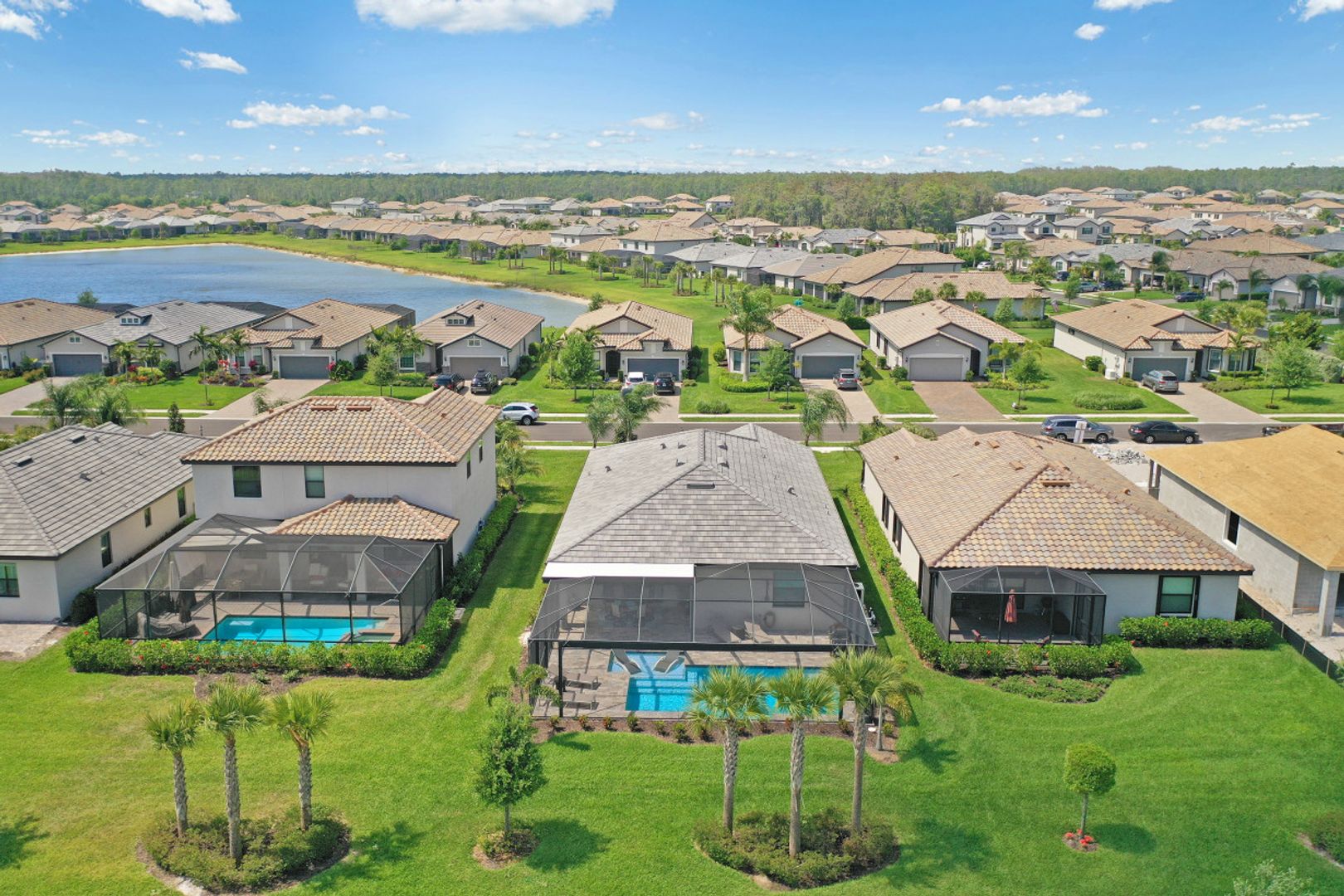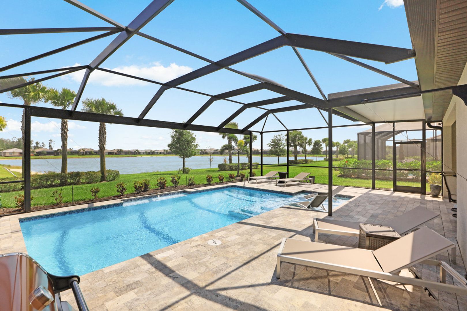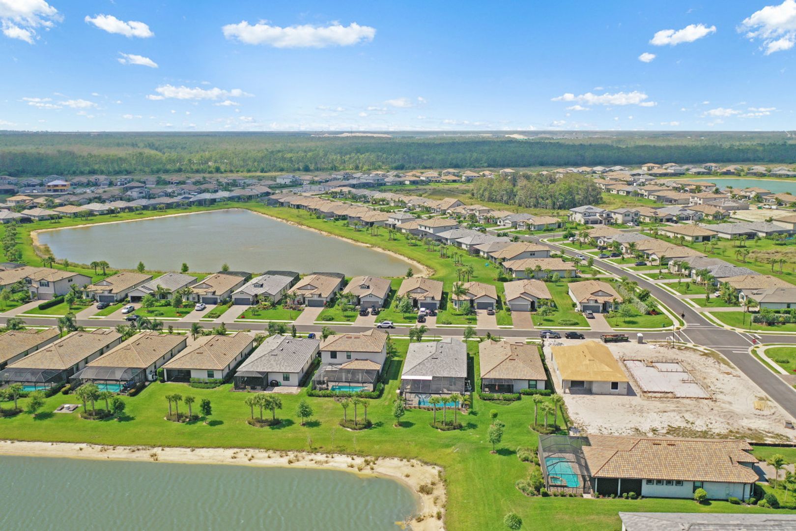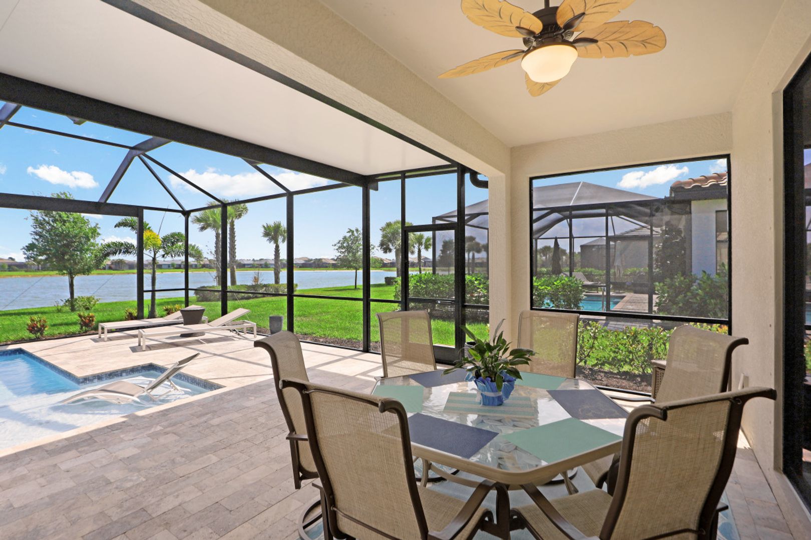 CUSTOM SALTWATER POOL HOME WITH SPARKLING LAKE VIEWS AVAILABLE IN THE PLACE AT CORKSCREW... This recently built "Venice" plan by Lennar Homes offers 3 Bedrooms, 3 Full Baths, 2 Car Garage and just under 2000sf of Living Area. The waterfront homesite with Eastern rear exposure offers sunny mornings poolside and cool, shaded evenings under the extended covered lanai. The focal point of the home is the Custom Saltwater Pool with LED lights, 2 bubblers, sunshelf, picture-window screen, silver travertine deck. Features include porcelain plank tile, glass backsplash, under cabinet lighting, white cabinets throughout, stainless appliances, security cameras, garage racks. The Place at Corkscrew in Estero has been one of the hottest selling communities in Southwest Florida, as it provides the Ultimate Florida Lifestyle: Resort Pool w/100' Waterslide, Indoor Restaurant, Outdoor Bar, Bourbon Bar, Cafe, Fitness Center, Movement Studio, Tennis, Pickleball, Bocce, Basketball, Playground, Dog Park, Childcare Center, Two 24 Hour Manned Guard Gates. Low HOA Fees include Lawn/Shrub Maintenance and Irrigation Water/System. Just Minutes to Schools, Shopping, Restaurants, Airport, Golf, Beaches.
