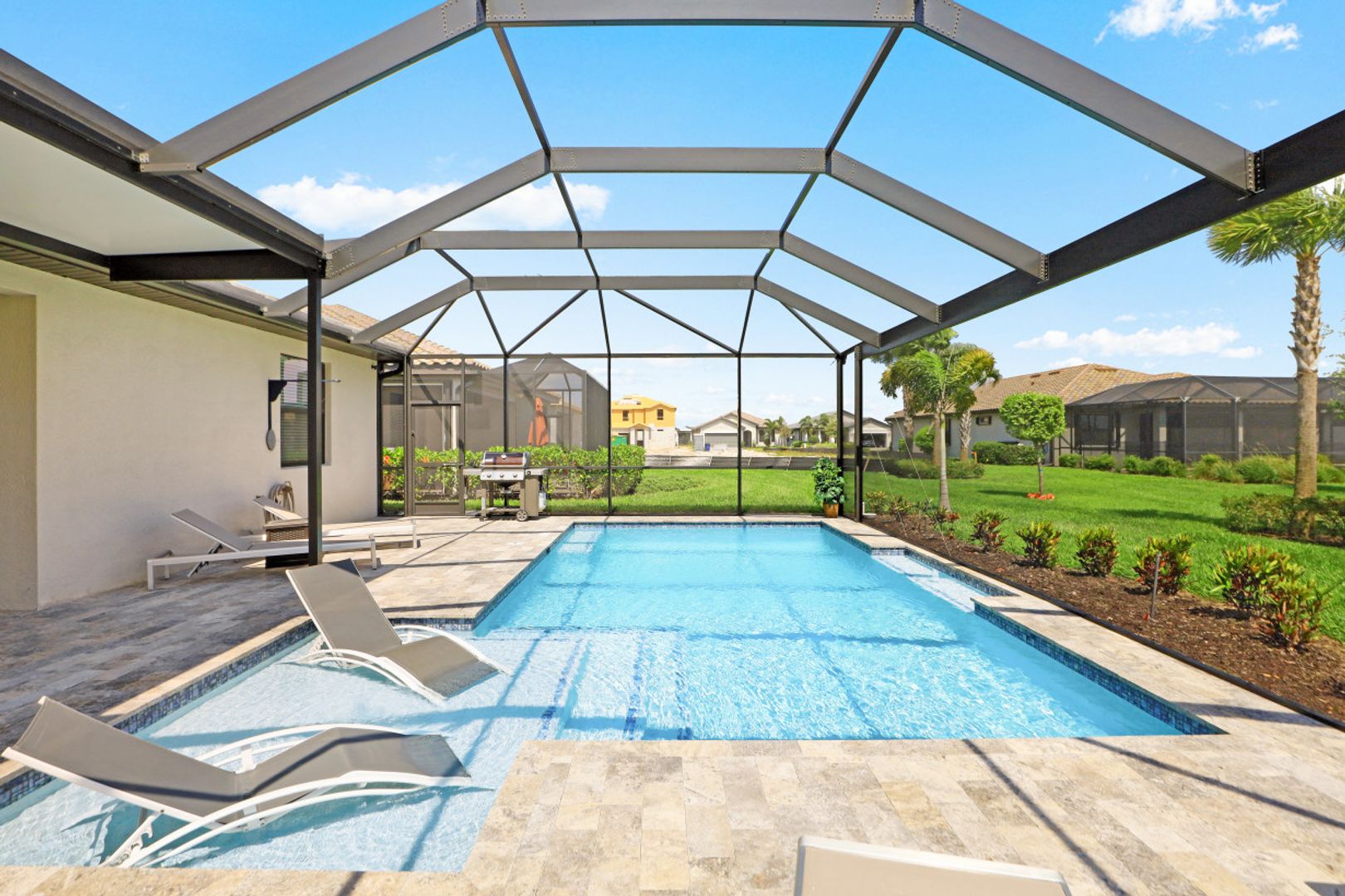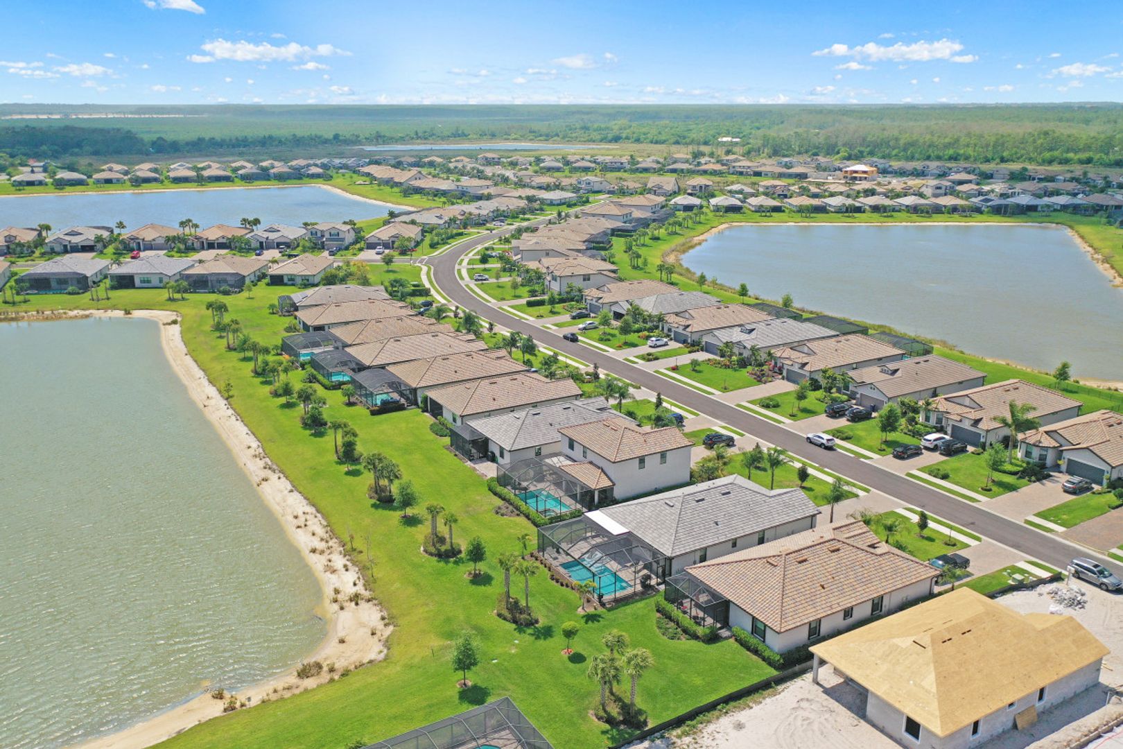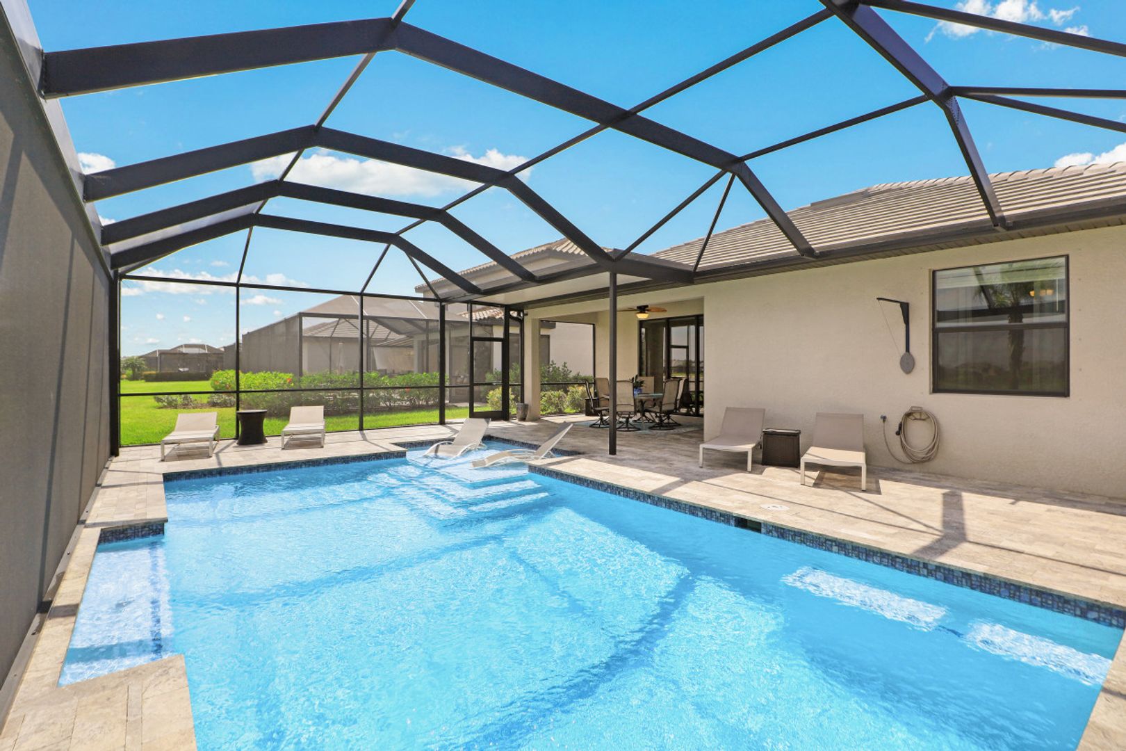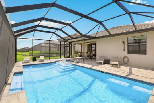 CUSTOM SALTWATER POOL HOME WITH SPARKLING LAKE VIEWS AVAILABLE IN THE PLACE AT CORKSCREW... This recently built "Venice" plan by Lennar Homes offers 3 Bedrooms, 3 Full Baths, 2 Car Garage and just under 2000sf of Living Area. The waterfront homesite with Eastern rear exposure offers sunny mornings poolside and cool, shaded evenings under the extended covered lanai. The focal point of the home is the Custom Saltwater Pool with LED lights, 2 bubblers, sunshelf, picture-window screen, silver travertine deck. Features include porcelain plank tile, glass backsplash, under cabinet lighting, white cabinets throughout, stainless appliances, security cameras, garage racks. The Place at Corkscrew in Estero has been one of the hottest selling communities in Southwest Florida, as it provides the Ultimate Florida Lifestyle: Resort Pool w/100' Waterslide, Indoor Restaurant, Outdoor Bar, Bourbon Bar, Cafe, Fitness Center, Movement Studio, Tennis, Pickleball, Bocce, Basketball, Playground, Dog Park, Childcare Center, Two 24 Hour Manned Guard Gates. Low HOA Fees include Lawn/Shrub Maintenance and Irrigation Water/System. Just Minutes to Schools, Shopping, Restaurants, Airport, Golf, Beaches.