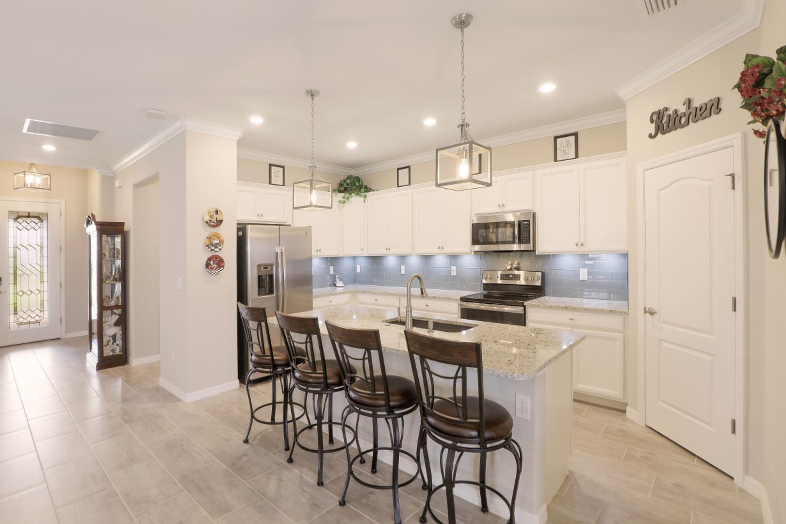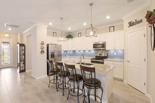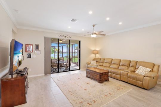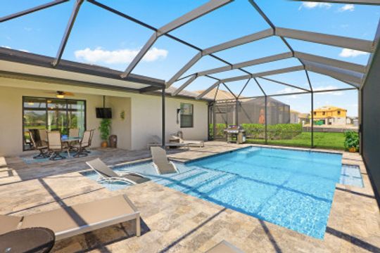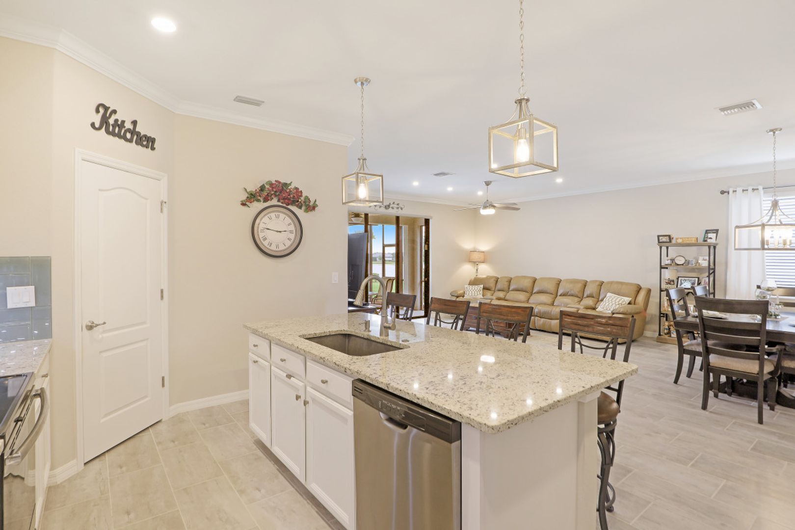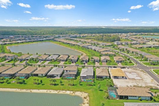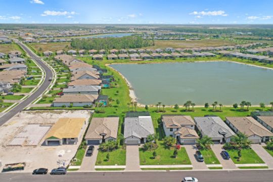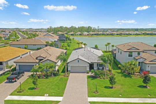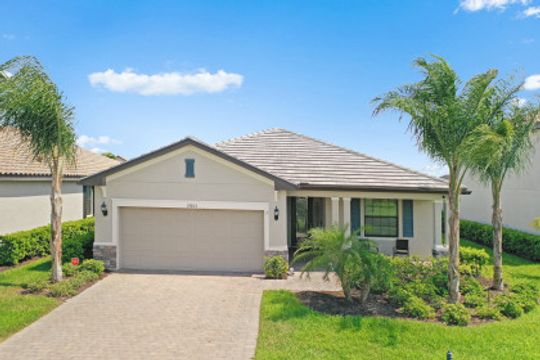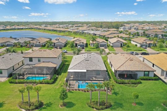 CUSTOM SALTWATER POOL HOME WITH SPARKLING LAKE VIEWS AVAILABLE IN THE PLACE AT CORKSCREW... This recently built "Venice" plan by Lennar Homes offers 3 Bedrooms, 3 Full Baths, 2 Car Garage and just under 2000sf of Living Area. The waterfront homesite with Eastern rear exposure offers sunny mornings poolside and cool, shaded evenings under the extended covered lanai. The focal point of the home is the Custom Saltwater Pool with LED lights, 2 bubblers, sunshelf, picture-window screen, silver travertine deck. Features include porcelain plank tile, glass backsplash, under cabinet lighting, white cabinets throughout, stainless appliances, security cameras, garage racks. The Place at Corkscrew in Estero has been one of the hottest selling communities in Southwest Florida, as it provides the Ultimate Florida Lifestyle: Resort Pool w/100' Waterslide, Indoor Restaurant, Outdoor Bar, Bourbon Bar, Cafe, Fitness Center, Movement Studio, Tennis, Pickleball, Bocce, Basketball, Playground, Dog Park, Childcare Center, Two 24 Hour Manned Guard Gates. Low HOA Fees include Lawn/Shrub Maintenance and Irrigation Water/System. Just Minutes to Schools, Shopping, Restaurants, Airport, Golf, Beaches.