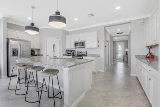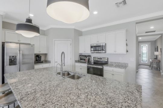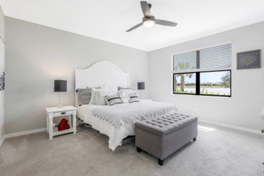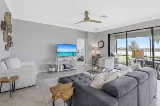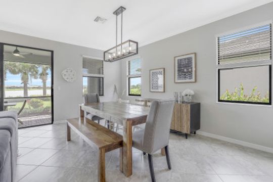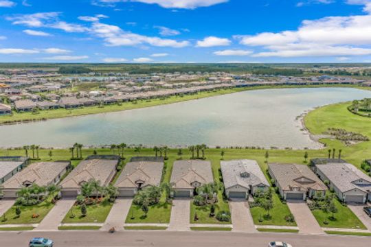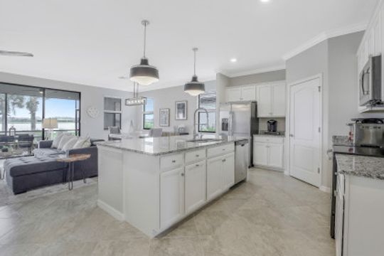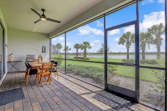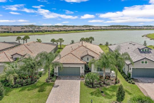 RARELY AVAILABLE MARSALA FLOORPLAN WITH SPECTACULAR WATER VIEWS IN THE PLACE AT CORKSCREW, JUST 5 HOUSES FROM THE AMENITIES... This recently built residence offers 3 Bedrooms + Den, 3 Full Baths, 2 Car Garage, 2202sf living area. Enjoy spectacular sunrises over the sparkling lake, and comfortable, shaded evenings on the lanai... with the Eastern rear exposure. The large backyard would be perfect for a Custom Pool/Spa, a fence, or BOTH. Have peace of mind with motorized Storm Screens on the lanai, and a whole house Generator with 500 gallon propane tank! Builder Options include: 21" Porcelain Tile in Main areas and Den, White Cabinetry, Crown Molding, Granite Tops in Kitchen/Baths. Post Closing Improvements include: Garage Door Insulation, Additional Hot Water Tank, Sealed Driveway, Upgraded Light Fixtures and Ceiling Fans, Reverse Osmosis Water System. Amenities at The Place are second to none!: Resort Pool w/100' Waterslide and Spa, Indoor Restaurant, Bourbon Bar, Cafe, Outdoor Bar, Fitness Center, Movement Studio, Tennis, Pickleball, Bocce, Basketball, Playground, Dog Park, Childwatch, Spa Services, (2) Manned Guard Gates. FURNITURE PACKAGE AVAILABLE FOR SEPARATE PURCHASE.