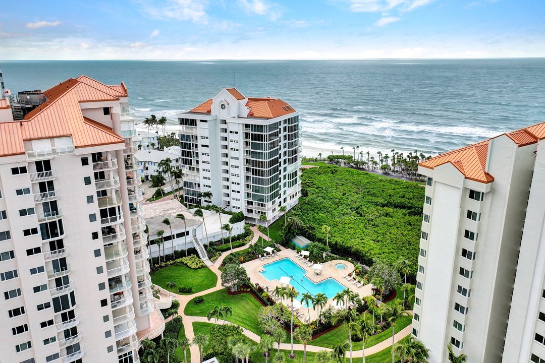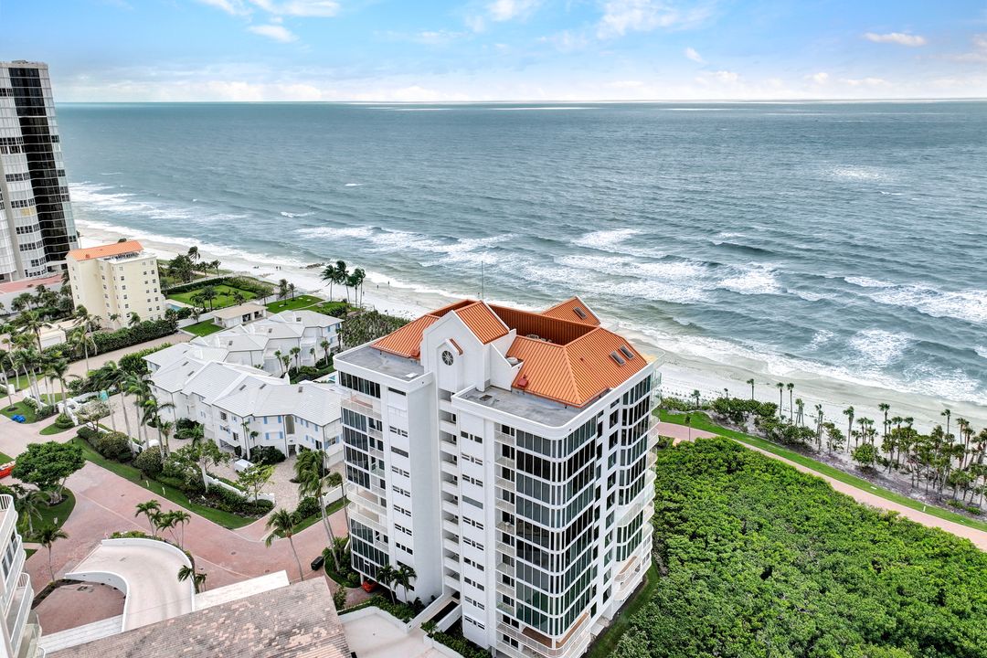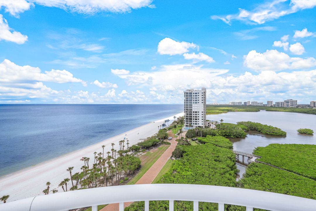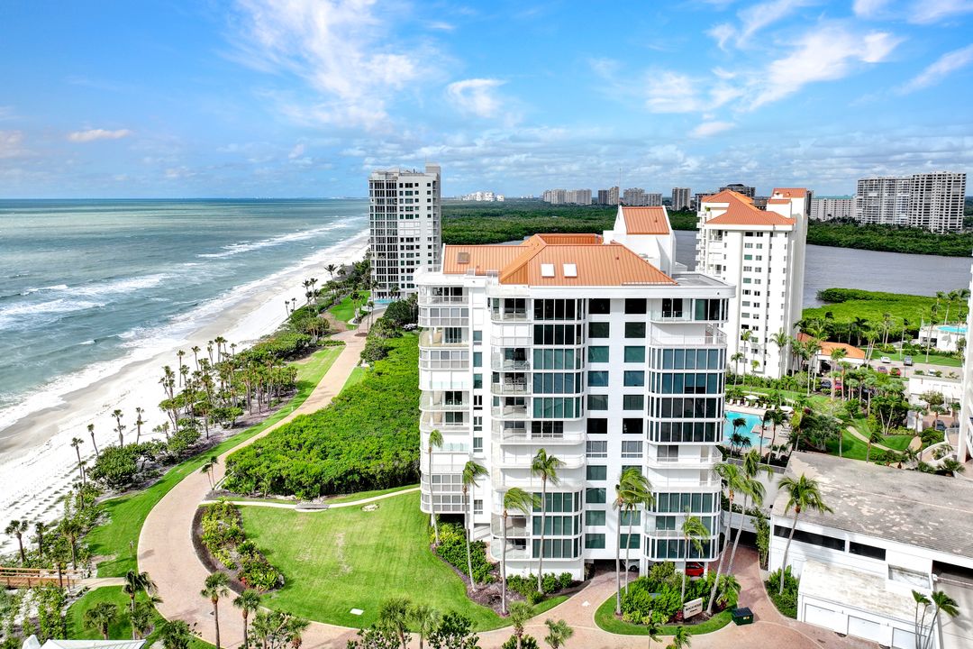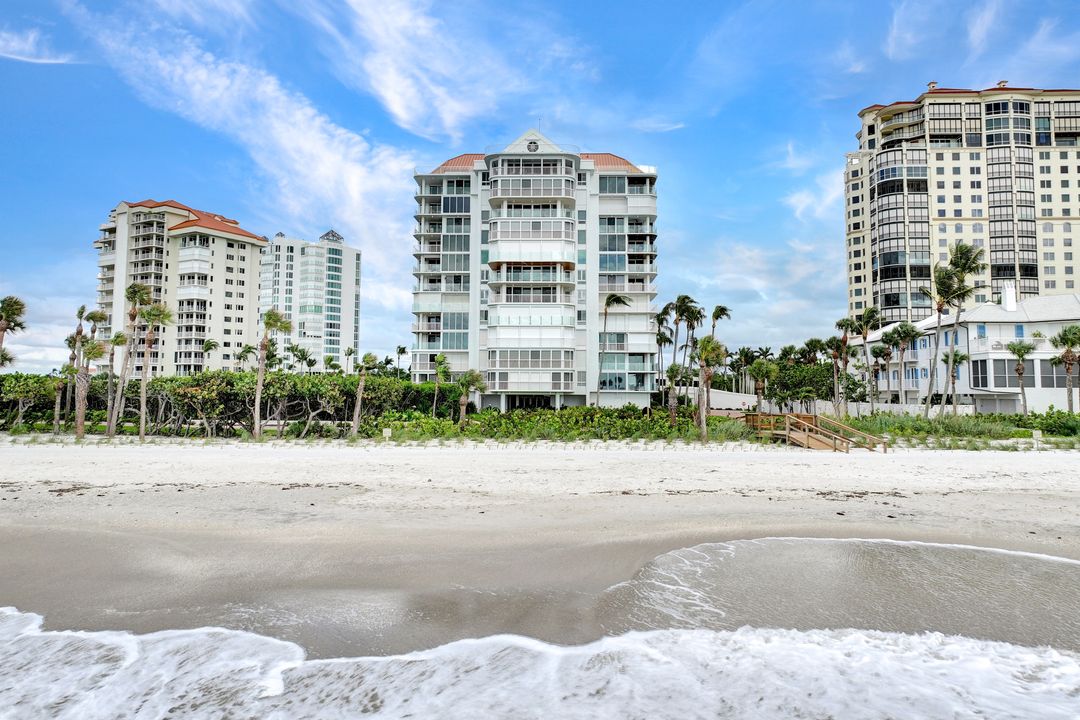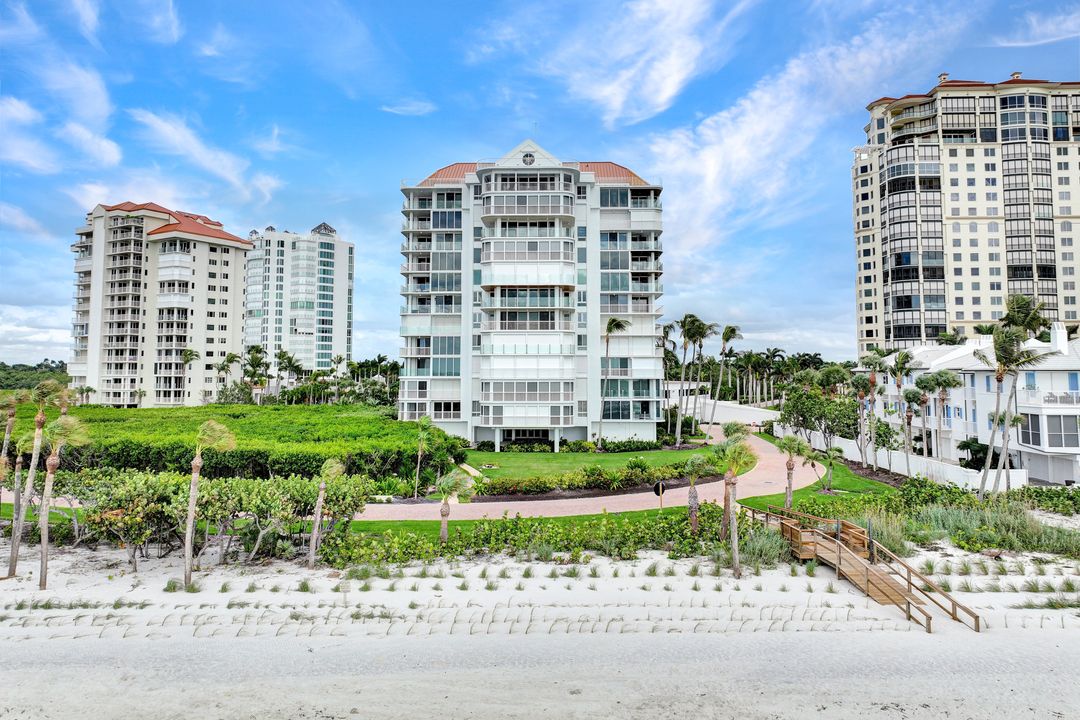 SOLD! BEACHFRONT PENTHOUSE CONDO ON THE SAND AT BEACH HOUSE IN NAPLES CAY! Never before in MLS. Beach House lives like a beach house with all the convenience of a condo. Living Room has 18 FT cathedral ceiling, two skylights, and a large decorative picture window facing the Gulf. Two wrap-around balconies totaling over 1,100 sq.ft. ~ one on the main level and one private rooftop balcony. Oversized private garage near entry to building and elevators. Unobstructed 180 degree Gulf, beach and Clam Bay views. Year-round sunsets! Only 33 units (just 3 per floor). Beach House at Naples Cay lives like an intimate, upscale boutique hotel. PET FRIENDLY building allows two pets. 2,484 under air, 4,027 total SF. Two large master suites, 3 full baths and a large den that is easily converted into a third bedroom. The Beach House lobby was completely remodeled in 2023; NEW ELEVATORS to be installed summer 2024 (assessment paid). Naples Cay is nestled between Park Shore and Pelican Bay, is a 24 hour guard gated beach community offering a unique level of privacy and tranquility, yet is within walking distance to fine dining, shopping and entertainment to Venetian Village, Waterside Shops, and Artis Naples. Centrally located in Naples. Just a short drive to Mercato, 5th Ave and 3rd St. South.