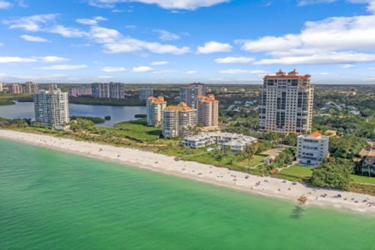 Listed for $3,695,000. and SOLD for $3,840,000. NAPLES BEACHFRONT CONDO ON THE SAND! Just 150 ft to the beach! Enjoy unobstructed, panoramic Gulf & beach views. Expansive, 500+ sf wrap-around lanai ~ see the sand, hear the waves and enjoy amazing sunsets. European White Oak natural wood floors throughout the living area and bedrooms, glass railings on the lanai, upscale accent lighting for artwork, Bosch A/C with UV light and neutral paint throughout. With only 33 units (just 3 per floor), Beach House at Naples Cay lives like an intimate, upscale boutique hotel. PRIVATE GARAGE (12’ X 18’) plus a deeded spot in the upper deck garage. 2,484 SF under air/Total SF 2,988, 2 large bedrooms + large den, 2 1/2 baths ~ with room and flexibility to convert to a 3 BD/3BA. Large climate controlled ground floor private storage closet. PET FRIENDLY building allowing 2 pets. Naples Cay is nestled between Park Shore & Pelican Bay, a 24 hour guard gated beach community offering a unique level of privacy and tranquility, yet is within walking distance to fine dining, shopping & entertainment of Venetian Village, Waterside Shops, and Artis Naples. Centrally located in Naples. Short drive to Mercato and 5th Ave.