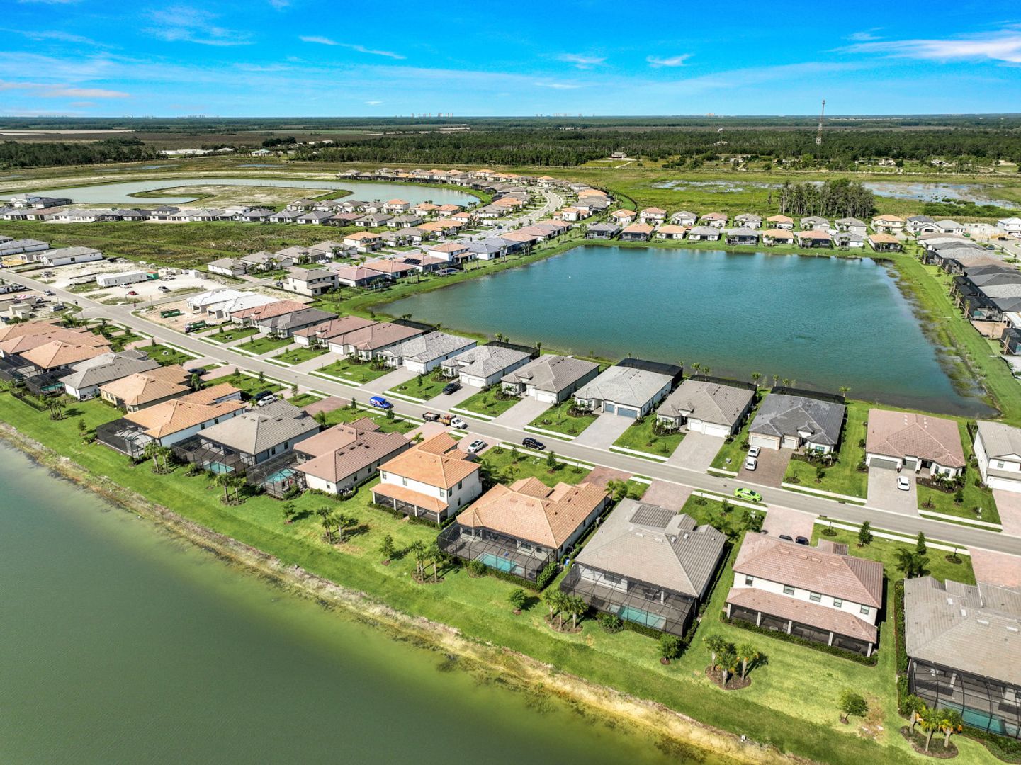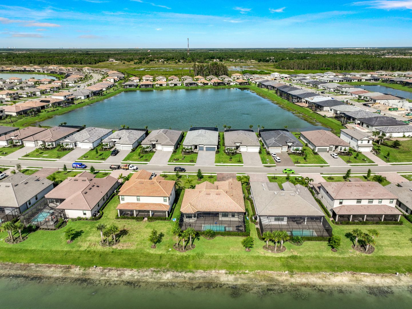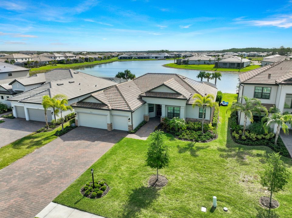 Look no further! The only Lennar Estate home currently available for purchase in Verdana Village. Lennar is currently sold out of Estate Series homes and doesn’t plan to build any new estate series homes until they start the second half of the community. This home, a beautiful Oakmont II model with pool & spa on a large lakefront homesite offers all the current design features you expect. Home features include white shaker cabinetry throughout, stainless steel appliances, quartz countertops throughout, plank floor tile throughout, luxury lighting, subway tile backsplash in the kitchen, designer accent paint and trim moldings, crown molding throughout and much more. The seller has invested over $145k in upgrades. Verdana Village offers unparalleled amenities which include indoor basketball, pickleball and tennis courts, a state of the art fitness center, movement studio, lockers, dog park, tennis pro shop, Café, restaurant, and bar plus a children’s playground and additional outdoor tennis, pickleball and bocce courts for your enjoyment. Verdana Village also offers a large resort style pool with an oversized spa, zero entry walk-ins, in pool sun decks, covered cabanas and daybeds. And if all this isn’t enough, the location is just minutes from the Southwest Florida International Airport and there is a new shopping Center with a Publix anchor under construction just outside the gate. No waiting to build a home, just move right in! Start living “Enjoy The Florida lifestyle” today!