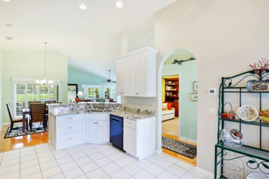 Open the wonderful stained glass front door to discover this charming single-family home in the very desirable North Naples community of Heritage Greens. This home features 3 beds and 2 baths in an extremely comfortable 1,684 sq. ft. of living space. The vaulted ceilings make this space feel even larger. Enjoy an amazing lake view and a view of the 13th fairway of the public Arrowhead golf course from the large bay window in your great room. Savor your morning coffee on the screened lanai watching birds on the lake.This home has been lovingly cared for, with a new roof in 2018 and new air conditioner in 2020. The kitchen was updated & expanded with white cabinetry, granite counters and a double wall oven, which is perfect for entertaining. The master bedroom suite includes a walkout to the lanai, a large walk-in closet and private bath with dual vanities, soaking tub and separate shower. Heritage Green residents enjoy A rated schools that include Laurel Oak Elementary, Oak Ridge Middle and Gulf Coast High School. You are close to shopping, world class beaches, and amazing restaurants. Don’t miss out on this opportunity to enjoy the SWFL lifestyle you have been dreaming about.