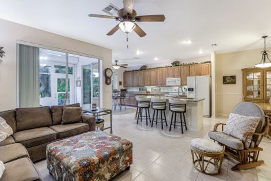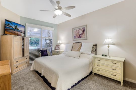 Treat yourself to a tour of this beautiful 2bed/2ba/1car garage villa located in the popular bundled golf community of Country Creek of Estero, Florida. Interior features of this villa home include neutral tone tile flooring throughout the home with carpet in the guest bedroom. The master bedroom appears carpeted but has a large area rug over. The master bathroom features a walk-in shower refreshed with cool toned tiles. The kitchen, which opens to the great room &dining area, has been updated with warm wood cabinetry, upper cabinets are 42” & lower cabinets are upgraded with pull out shelves & granite counter tops. Exterior features include roll down storm shutters on both lanai areas (front and back) and impact glass windows in the kitchen nook. The lanai is enclosed with vinyl windows with a view of the open-air patio framed with areca palm trees. Oversized garage w/ addl storage. Pull down attic to additional lighted storage. Floor plan available+2 tours-ask your agent for links. The active community of Country Creek offers an 18 hole golf course with country club. Amenities include swimming pool, tennis & more. RSW airport is 20 min away & Coconut Point is about 8 min away.