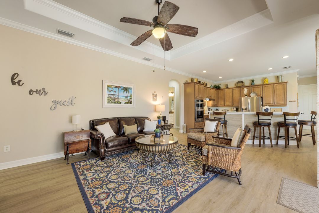 Interior Highlights: Step inside to discover a fabulous floor plan with two living areas enhanced by new Core Luxury Plank Vinyl flooring that gracefully unifies all the living spaces. The home is equipped with plantation shutters on most windows, adding a touch of elegance and privacy. The kitchen and bathrooms have been thoughtfully updated with quartz countertops, modern backsplashes in the kitchen, and freshly painted cabinets in all bathrooms. Each bathroom mirror has been framed, adding sophistication and style. This home comes with a plethora of newer appliances including a microwave/oven, dishwasher, refrigerator, and washing machine, ensuring that all conveniences are at your fingertips.