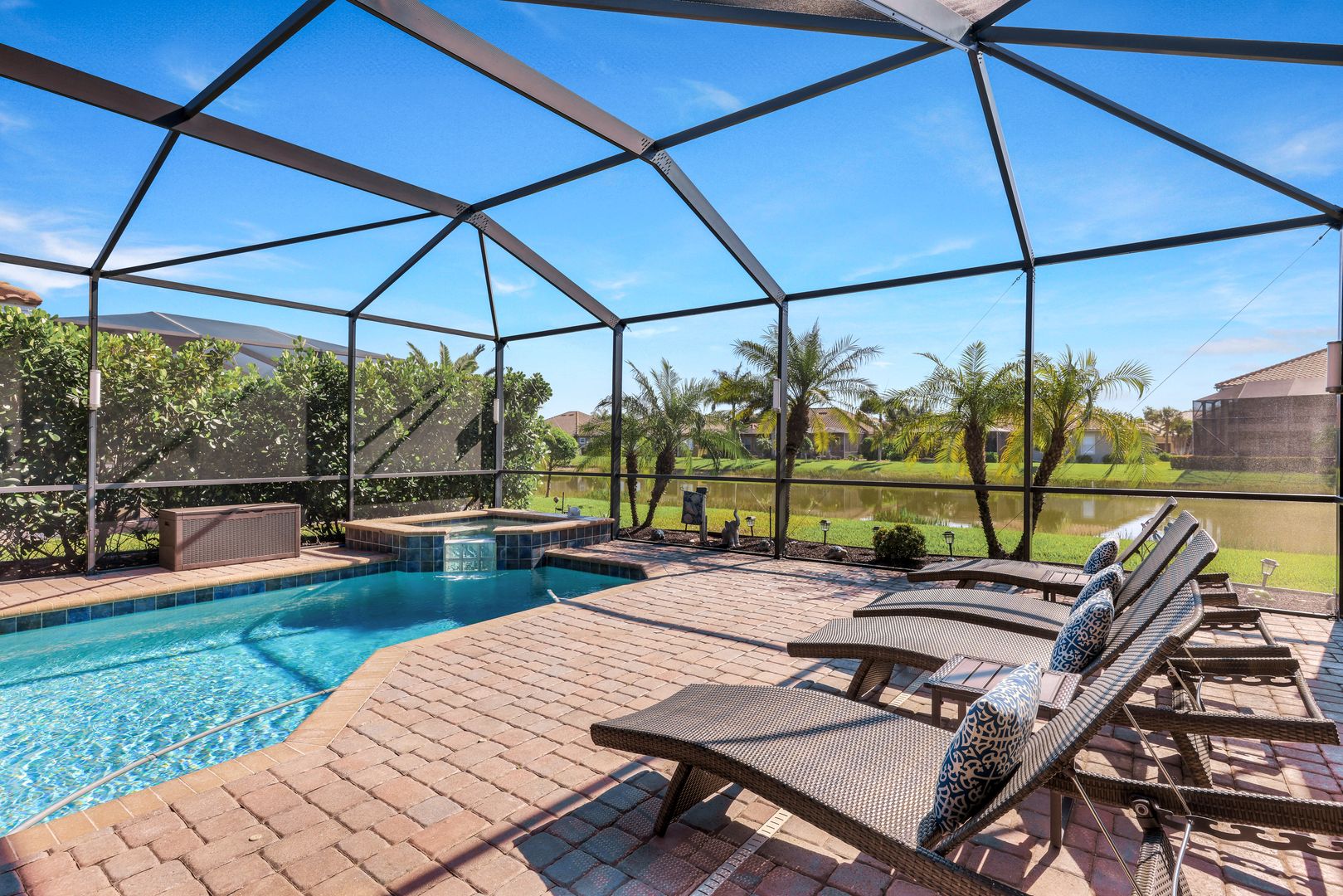 Exterior Features: The outdoor living space is equally impressive, featuring a newly screened pool cage, upgraded landscaping, and remote-controlled landscape lighting that highlights the home’s architectural features at night. The three-car garage is not only spacious and practical, but also aesthetically pleasing with newer epoxy flooring, built-in storage solutions, and overhead storage.