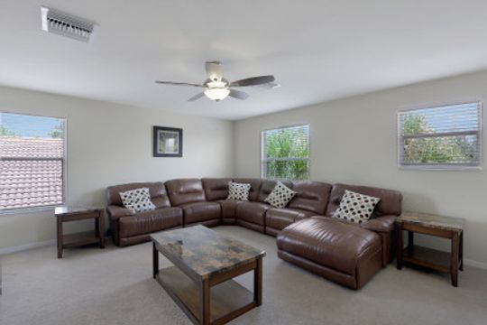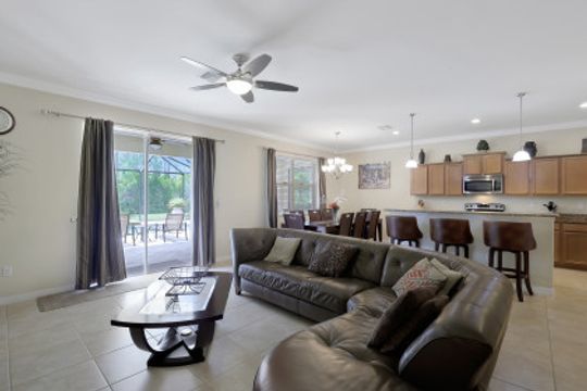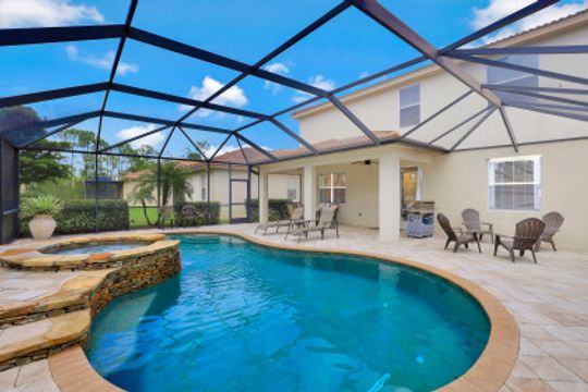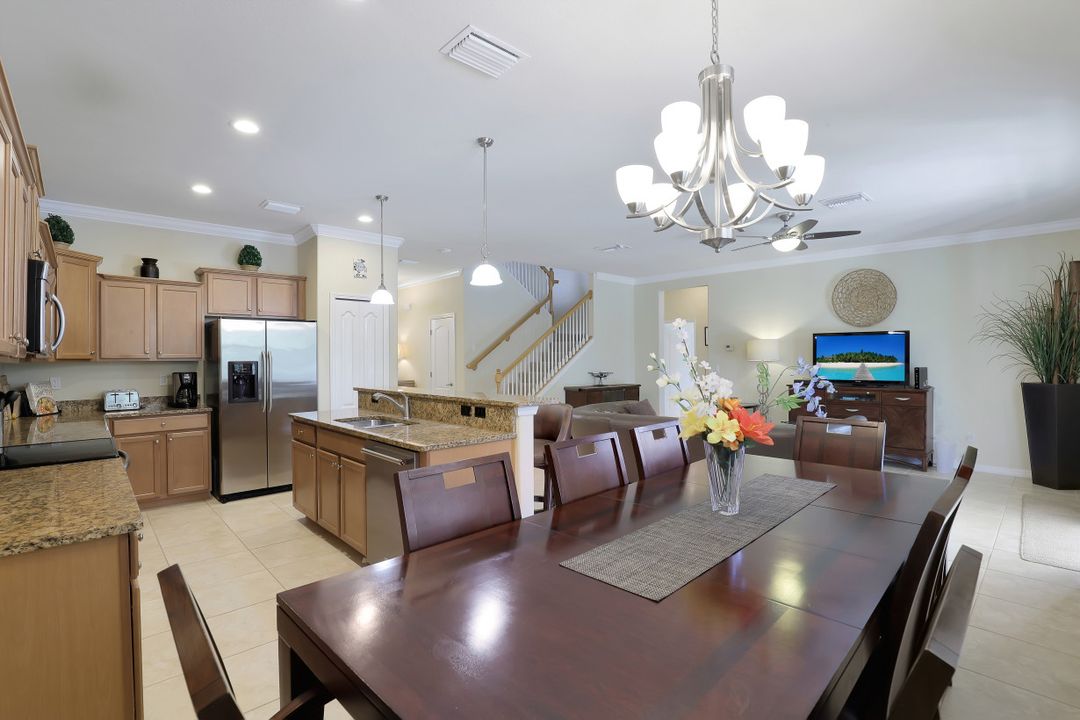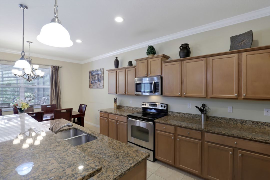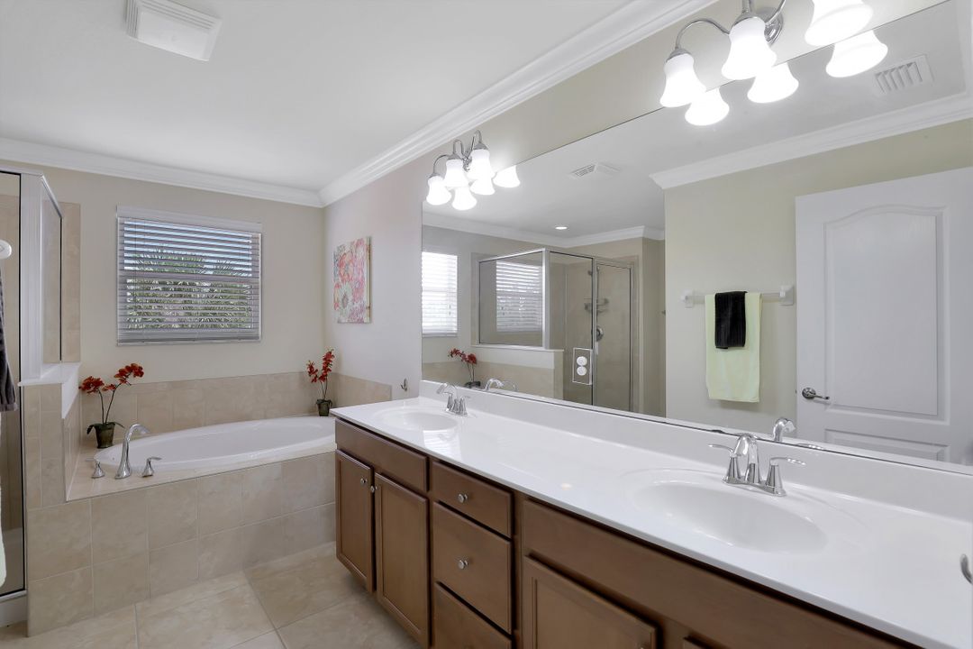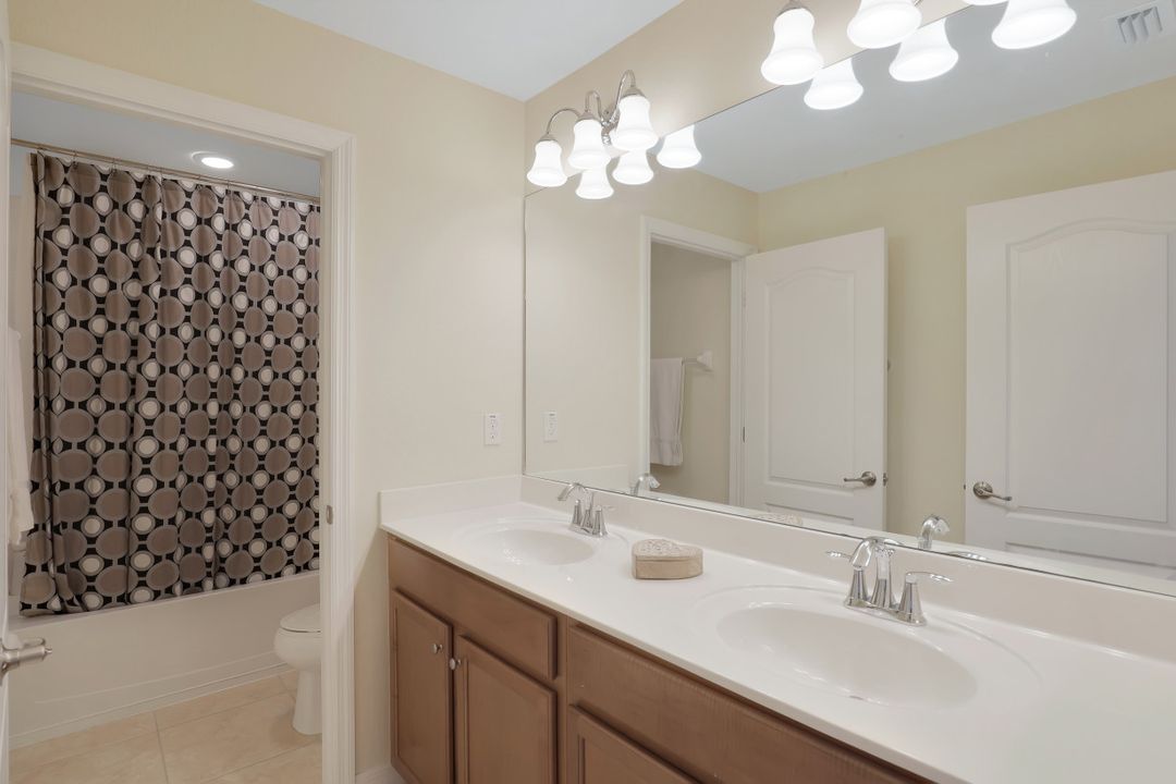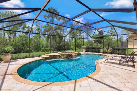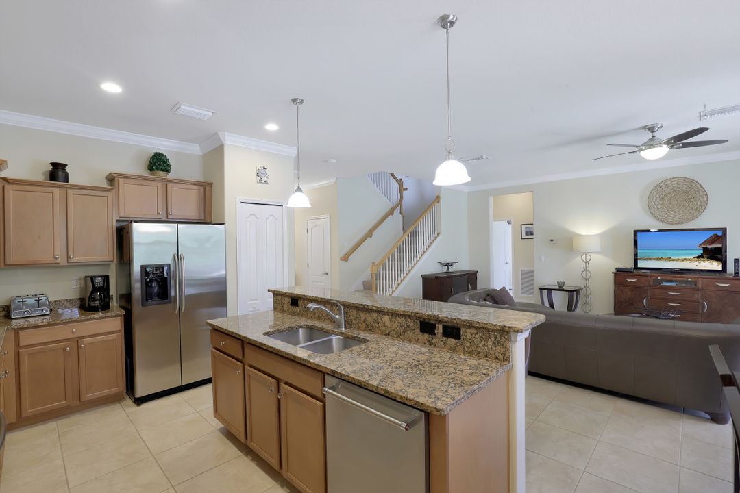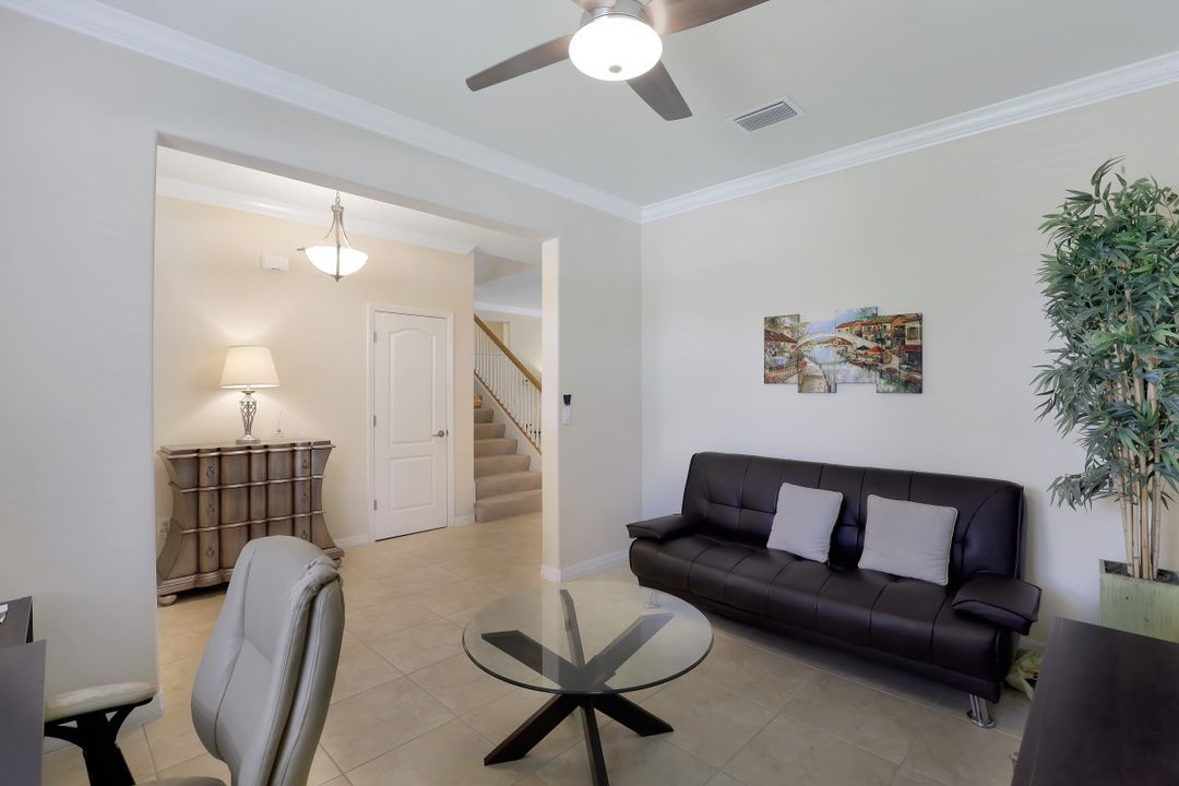 Upgraded Pool Home in Bella Terra. Room for the entire family in this nearly 2,600 sq.ft. home featuring 4 bedrooms + den and 3 full bathrooms. Amazing pool and lanai with natural stone, spa hot tub with waterfall, upgraded saltwater filtration system, and heated. All this overlooking the natural private preserve with no neighbors behind. The ideal pool area for the family! The home is upgraded throughout with tile roof, crown molding, stainless steel appliances, granite counters in the kitchen and bathrooms, a large loft upstairs for a 2nd family room, kids play room, or media area. One bedroom + den on the 1st floor and 3 bedrooms on the 2nd floor. Upstairs loft provides flexibility for almost anything you need like family game night or play room for the kids. Located in Bella Terra, one of Estero's premier communities, there are amenities for all with everything from beach volleyball, a resort style pool and spa, tennis and pickel ball courts, basketball, in-line skating, bocce ball, a flex field for intramural sports, a fitness center, playground, and tons of activities throughout the year. Come check out this phenomenal home in the amenity abundant neighborhood of Bella Terra.