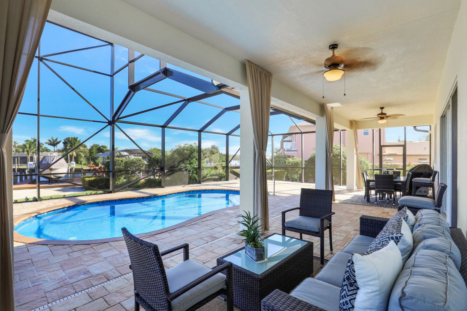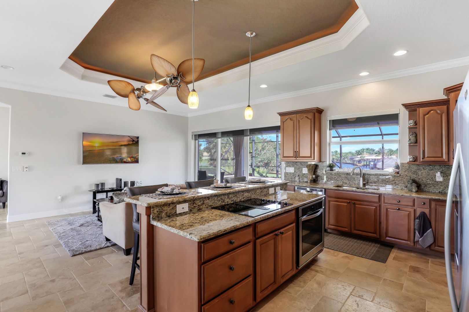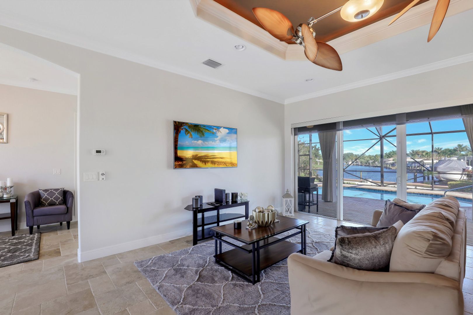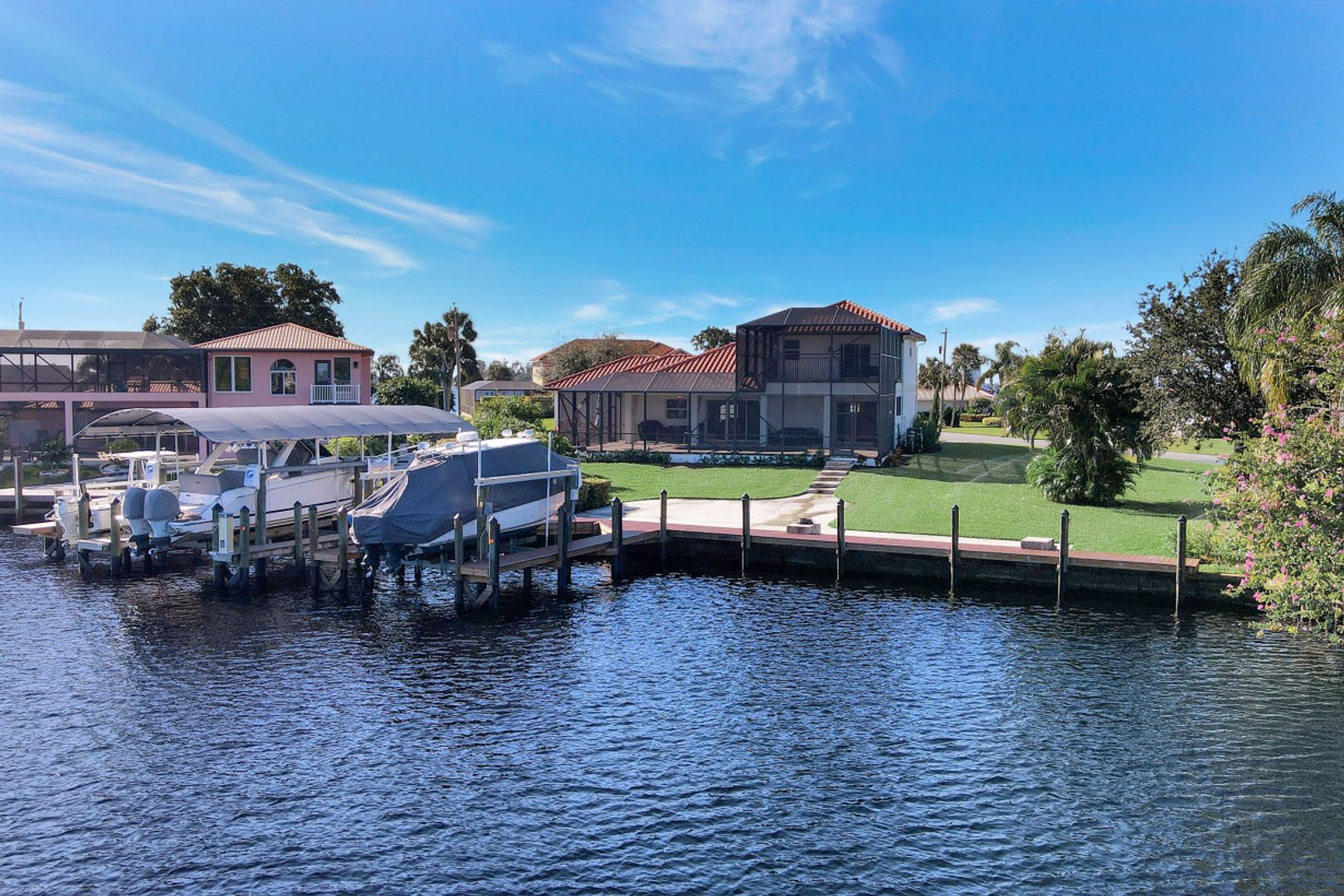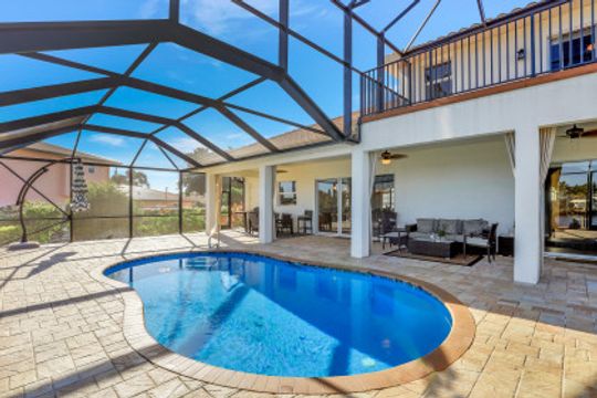 This FABULOUS SAILBOAT ACCESS pool home features the most SPECTACULAR water views of the Caloosahatchee River and surrounding waterways. A RESORT STYLE home nestled in the private & close knit boating community of the Yacht Club Colony, which is one of the best kept secrets in SWFL! This impeccable property sits on an oversized PROFESSIONALLY LANDSCAPED lot with water views from both the front and back balconies. Interior features include soaring tray ceilings, travertine tile flooring, granite throughout, spacious CONTEMPORARY kitchen and great room. The impressive master bathroom features dual sinks with granite countertops. Feel like you’re on vacation every day in this 3 BR 3 BA with INCREDIBLE views from every room! Split floor plan affords everyone their privacy. Outdoor living at its finest! Take a dip in the sparkling heated salt water pool or enjoy the AMAZING views from your own private newly BUILT composite dock with a 16k lift. Voluntary HOA is $150/year includes access to 7 acre Community Park, picnic area, fish cleaning station, boat ramp, fire pit & private beach! Enjoy what SWFL has to offer - boat, sail, kayak, SUP, Jet Ski and fishing.