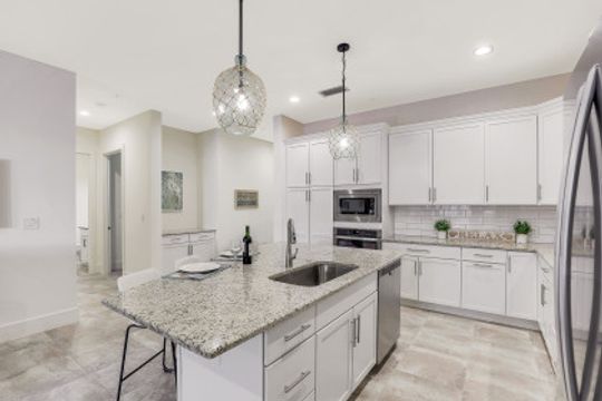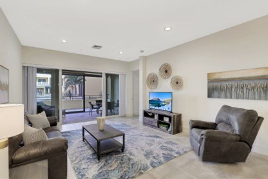 Enjoy gorgeous views from your condo with an expansive Mediterranean-style courtyard from your private screened in lanai area to enjoy your morning coffee. Fabulous light and airy spacious 2-bedroom, 2 bath condo with private 2 car garage with secure elevator lobby. The Gambaro floor plan with up-grades offers an open concept w/ the kitchen, dining & living area for easy entertaining. The gourmet kitchen features granite counter tops with breakfast island, coastal white cabinets with stainless appliances. The large master suite has a stunning master bathroom featuring his and hers sinks, soaking tub & oversized, glass enclosed walk-in shower with generous closet space. Genova is a premier guard gated community. It is in a prime location near RSW Airport, Miromar Outlets, Coconut Point, Restaurants, Public Golf Courses, Beaches and I-75. Residents can enjoy the resort-style amenities with clubhouse, indoor lap pool, outdoor resort pool and spa, fitness center, sauna, aerobics studio, locker rooms, bocce ball w/direct private access to Estero Community Park with its dog park, pickle ball ,walking/running trails.