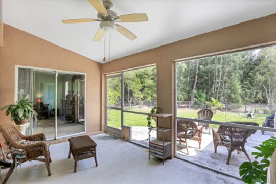 Privacy galore with this 3 bed 2 bath home, backed up to a 100 acre wooded area. Step inside the front door and be welcomed by a large great room with cathedral ceilings and sliders to the screened lanai. Outside the lanai is a very private fenced back yard, with plenty of room for a pool! The home is a split bedroom floor plan with master to the left of the great room, laundry room off the kitchen and bedrooms 2 & 3 along with the guest bathroom, to the right. Storm panels, a new roof in 2019, along with ALL ASSESSMENTS PAID IN FULL, make this home a must buy. Be sure to view the walk through video, then make your offer today.