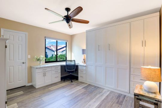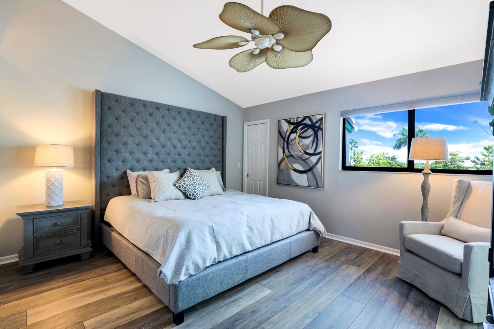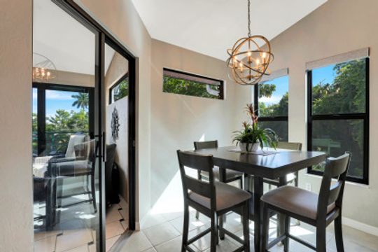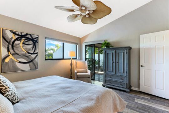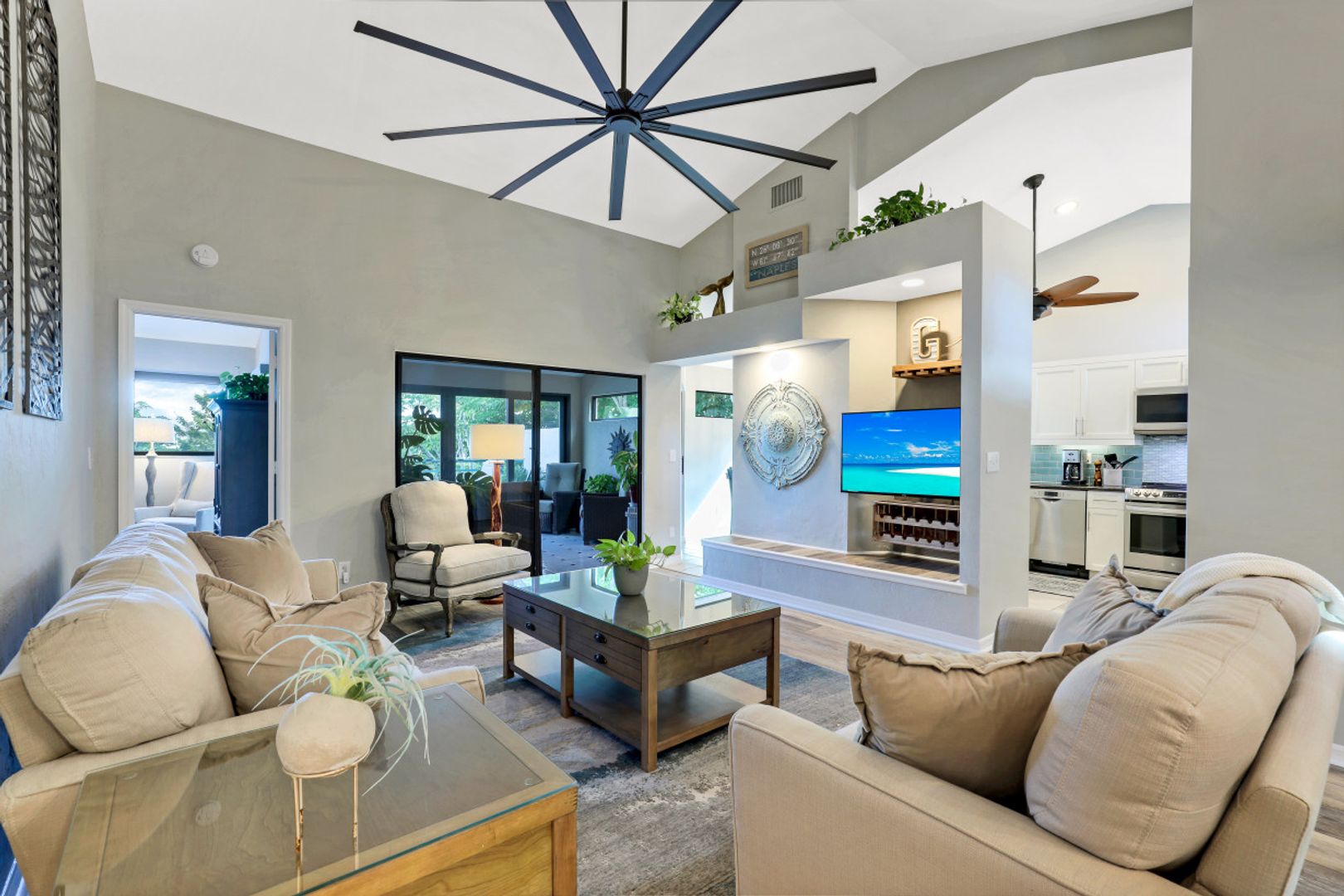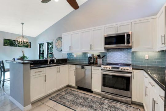 You will never want to leave the vacation-at-home vibe of this fully renovated, turnkey condo sold fully furnished w/private pond view & water feature, and gulf access w/boat slip, up to 24ft, only $500/year. Fresh paint, including doors, breathes new life into this gorgeous end unit on the top floor which has been updated throughout, including newer high-quality vinyl flooring, remodeled bathrooms, all windows & sliders replaced w/new Hurricane Windows, new blinds, new epoxy garage floor, plus primary closets & pantry finished by Closets By Design. Vaulted ceilings & ample windows allow light to flow free-range throughout to transform the space before your eyes. Enjoy preparing meals in this impressive kitchen equipped w/white cabinets, black granite & all SS appliances. The primary is a dream enhanced with double sinks & freestanding soaker tub with shiplap accent walls. The guest bedroom is fitted w/built-in desk & new Murphy bed. Fantastic location close to Downtown Naples, beaches & restaurants. Gulf access w/boat slip, up to 24ft, only $500/year.
