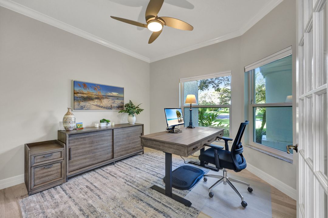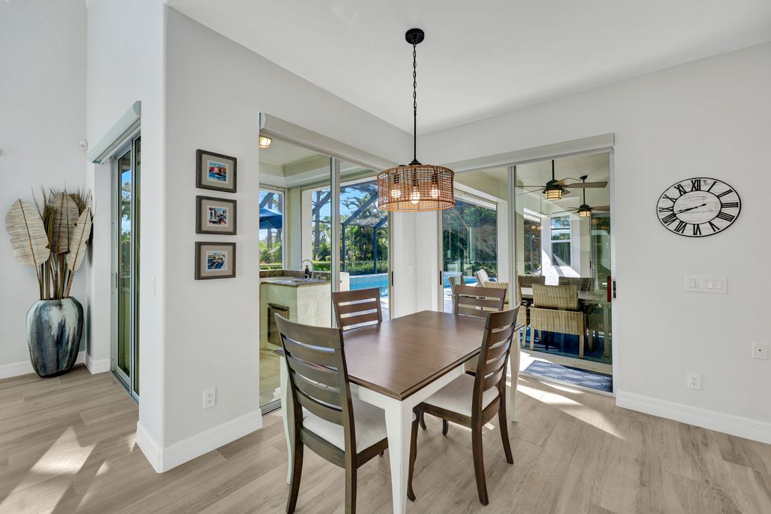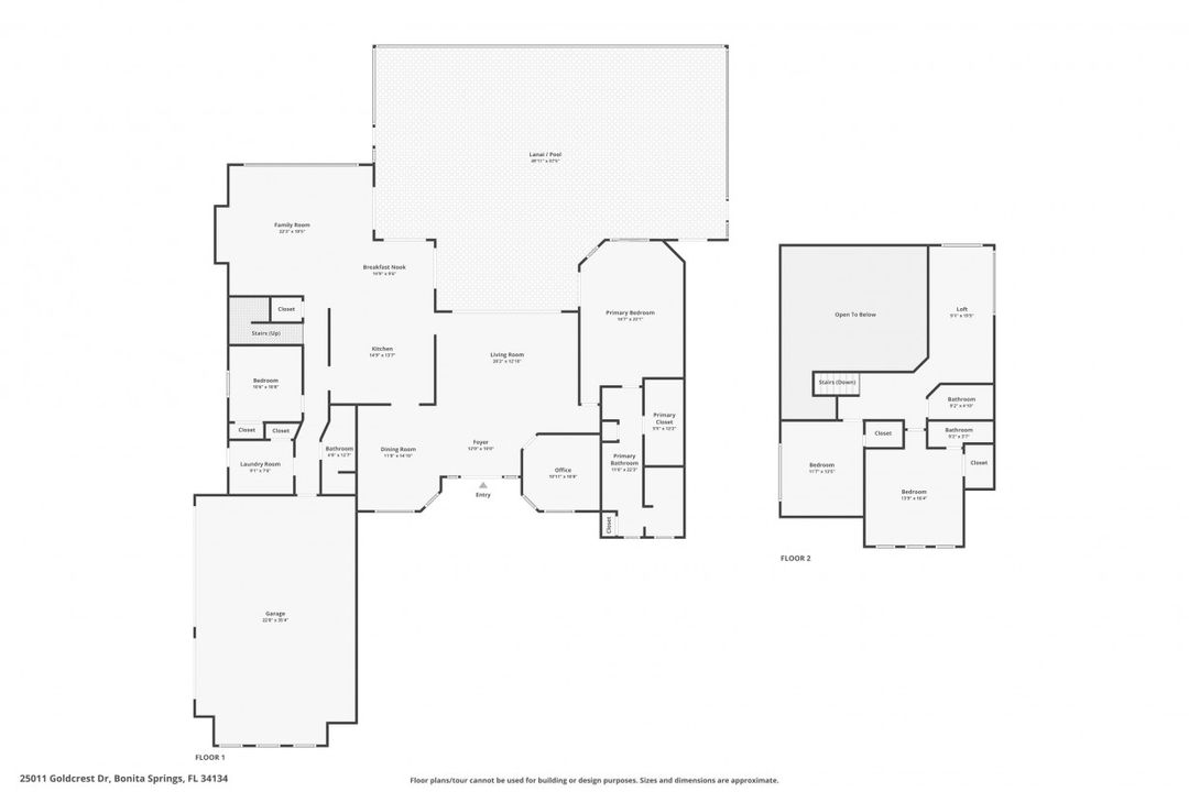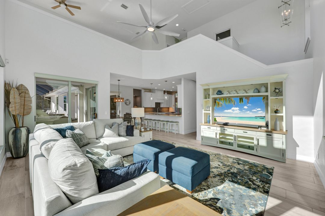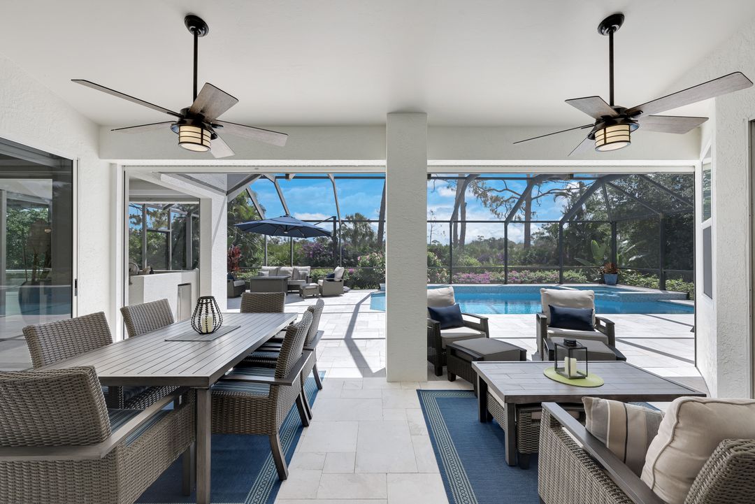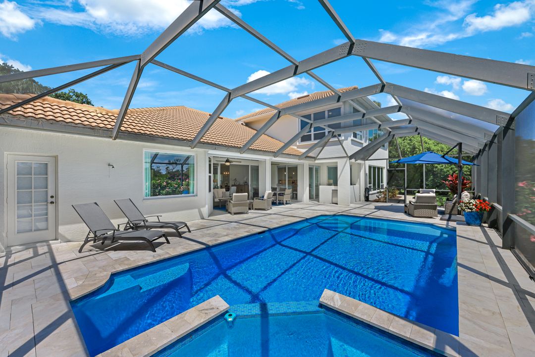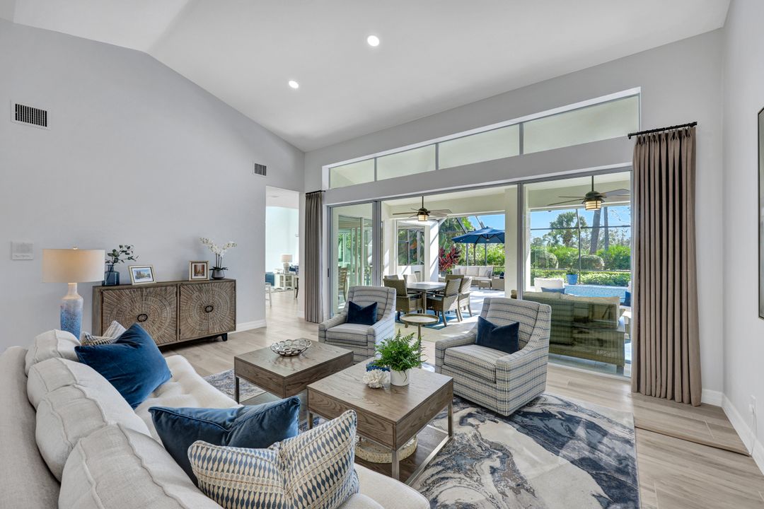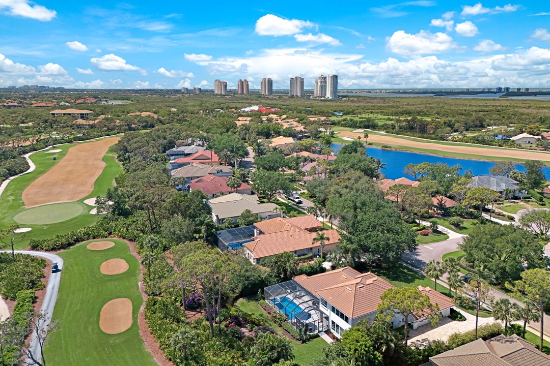 From the moment you arrive, this residence invites you to unwind. Panoramic views of the golf course from the second floor, a resort-style pool and spa, and lush privacy gardens set the tone for a tranquil, everyday retreat. The quiet, park-like backyard offers a peaceful space for morning coffee, time with pets or children, or evening gatherings. From the upstairs loft, take in sweeping vistas of the gardens, greens, and the expansive grounds below. While the main level enjoys views of the pool and tropical landscaping, the upper level reveals the full panorama of the golf course. Tucked within a serene corner of the sought-after Goldcrest neighborhood in Pelican Landing, this fully reimagined home balances architectural style with comfort and versatility. With over 3,600 square feet of living space, the thoughtful two-story layout offers four bedrooms, a den and five baths (three full, two half), designed with flexibility for multi-generational living or hosting guests with ease. The primary bath was beautifully remodeled in 2020, followed by a complete interior transformation between 2021 and 2025. Refined interior selections include bamboo wood flooring in the primary suite, large-format wood-look tile throughout the main level, and oak wood floors upstairs. Updates include a redesigned kitchen and guest baths, leathered marble pool pavers, a resurfaced pool (2022), new driveway and walkway pavers (2023), and impact-resistant windows (2024–2025). As a resident of Pelican Landing, enjoy an exceptional lifestyle with access to a 34-acre private island beach park, canoe and kayak park, tennis and pickleball, sailing, a state-of-the-art fitness center and optional memberships at The Nest Golf Club or The Colony.