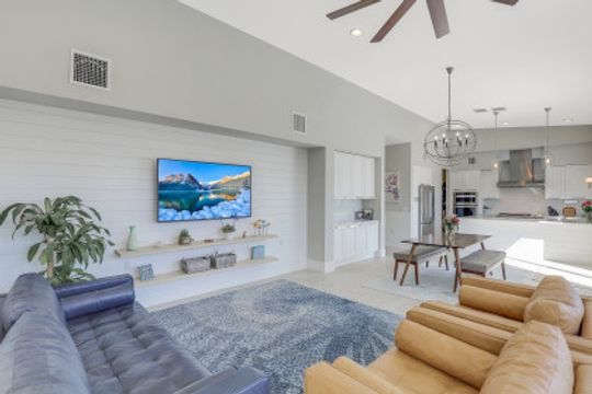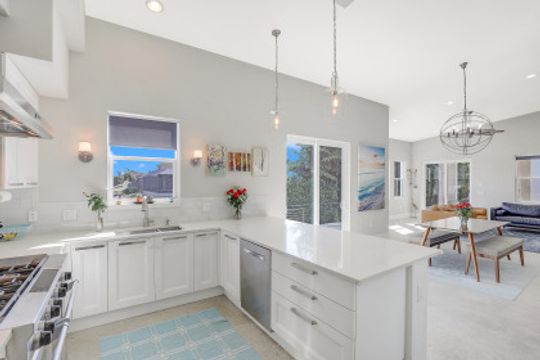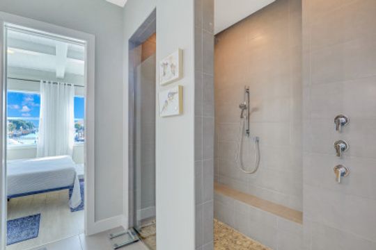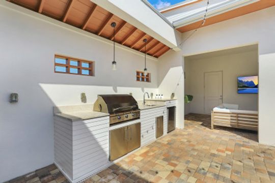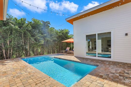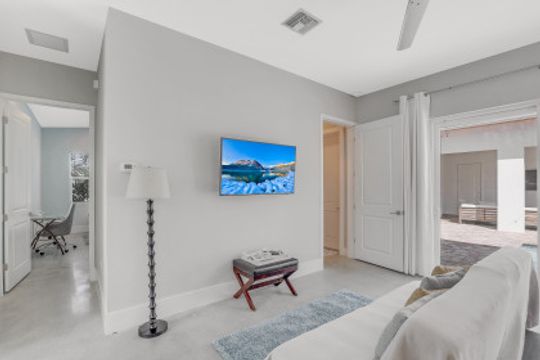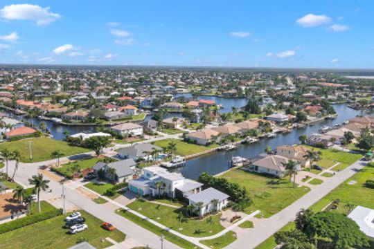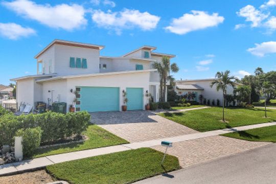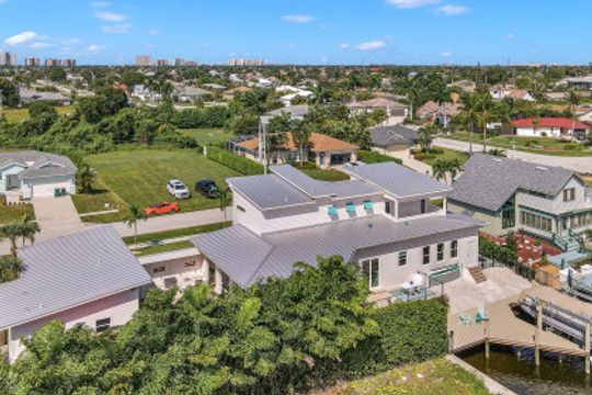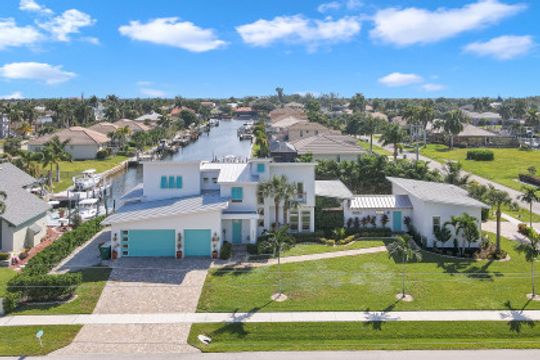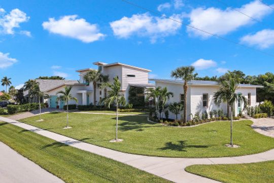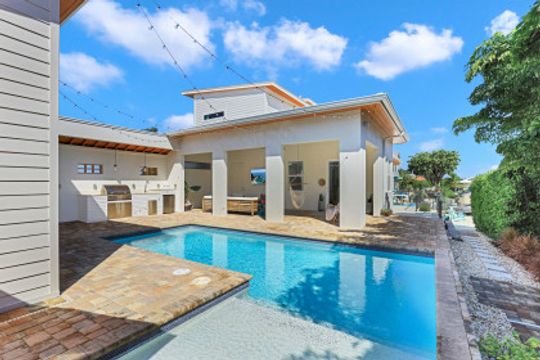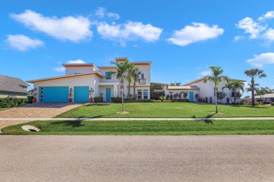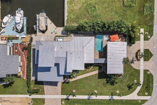 A bold design with distinctive features creates a refreshing waterfront retreat. Featuring a semi-detached, ADA accessible, self-sufficient guest house. Soaring ceilings welcome you inside the bright foyer, framed by shiplap wall accents and a red oak staircase. This recently built residence includes 2 oversized driveways, 2 indoor kitchens, wet bar and full outdoor kitchen. The kitchen in the main house includes a 48-inch professional gas range and Italian-made cabinets. Enjoy watching the sunrise over your long water view. Polished concrete floors and/or wood plank tiles throughout. At the heart of this home is a large covered and uncovered outdoor area connecting the main house and guest house that seamlessly transitions onto a newly built dock with lift. Lush landscaping provides privacy and river rock accentuate paver walkways that surrounds a heated saltwater pool positioned for direct sunlight. The 24-gauge standing-seam metal roof system and impact windows provide maximum weather protection. Only minutes to Robert’s Bay and the desirable southern boating islands. Close proximity to Mackle Park, YMCA, and more. Don’t miss this opportunity to have it all on Marco Island!