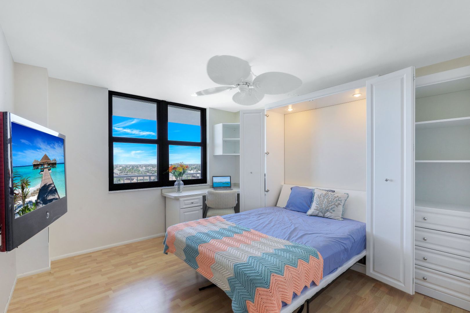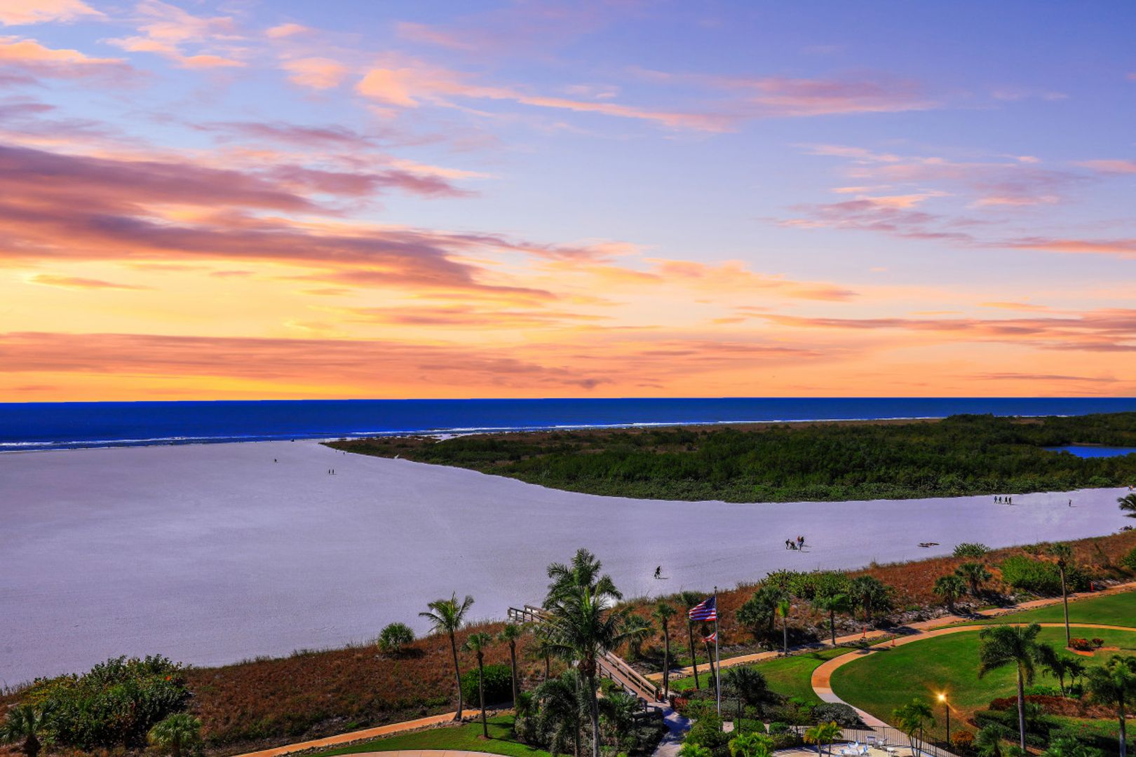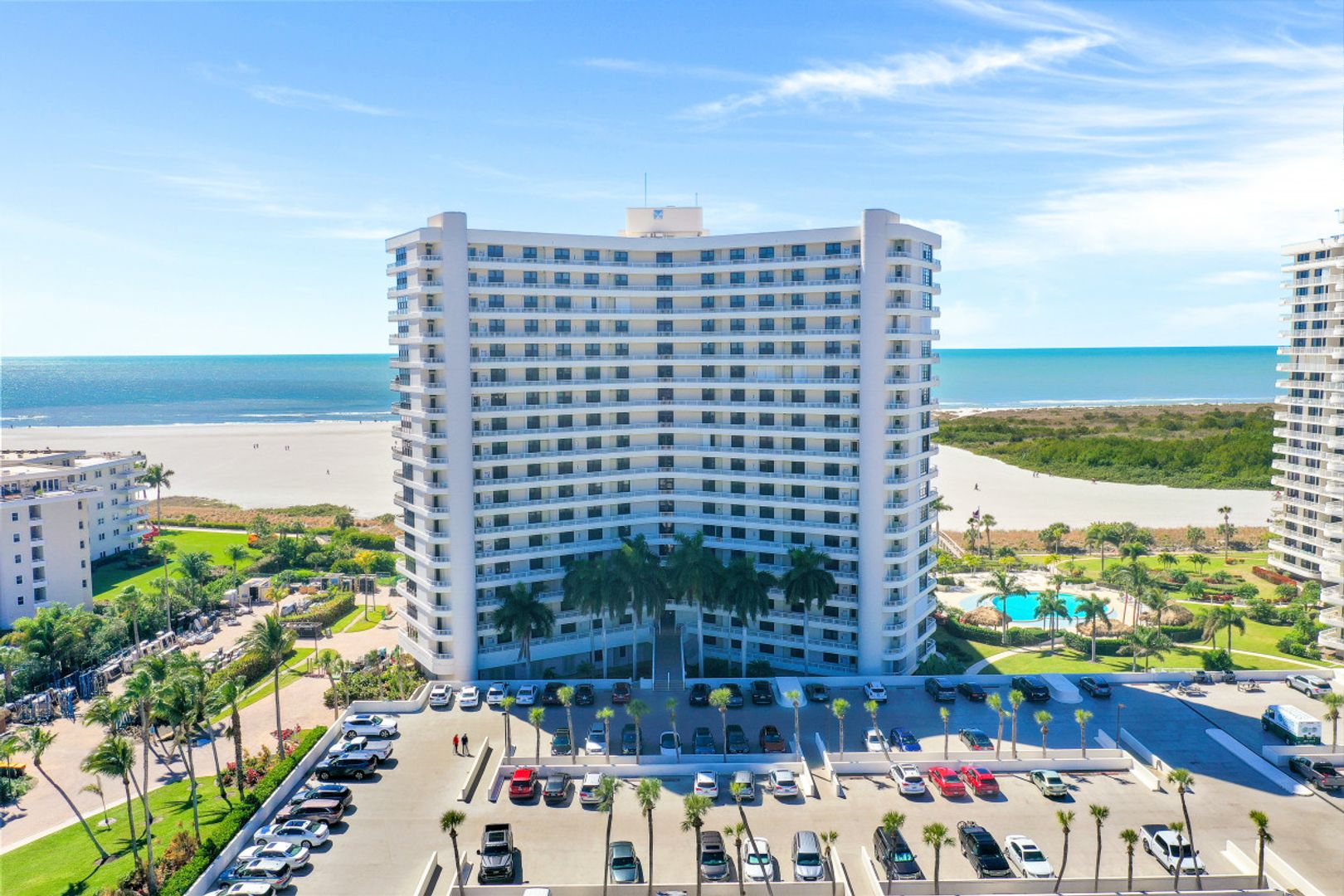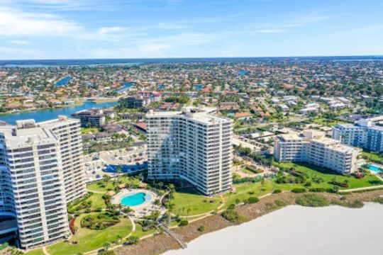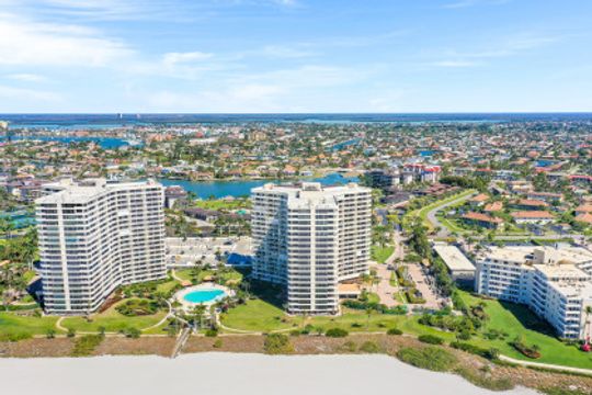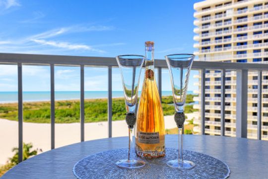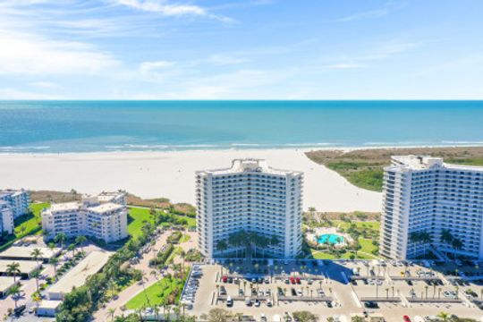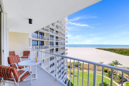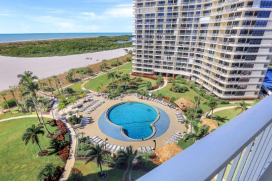 Stunning sunsets and sunrises are yours to enjoy from this lovely condominium right on the famous, gorgeous, and relaxing, white sandy beach of Marco Island. Captivating and breathtaking wide water and island views from every room. Offered furnished for added convenience, this residence features an inviting open floor plan, hurricane shutters, spacious kitchen, walk-in shower in master bathroom and a functional murphy bed in guest bedroom for maximum use of space. The open balcony is the ideal setting to sip your morning coffee or your favorite happy hour drink, entertain or simply relax and embrace the soothing breeze and tropical scenery. South Seas is the only complex on Marco Island offering beach and boat docks along with diverse amenities to suit any lifestyle including pool, tennis and pickle ball courts, bike and kayak storage, social and exercise room, shuffleboard, barbecue/picnic area, manicured landscaped grounds, and on-site management. All this in a centrally located Gated Community walking distance to shops and restaurants. This unit is a nice canvas to make it your own piece of Paradise.