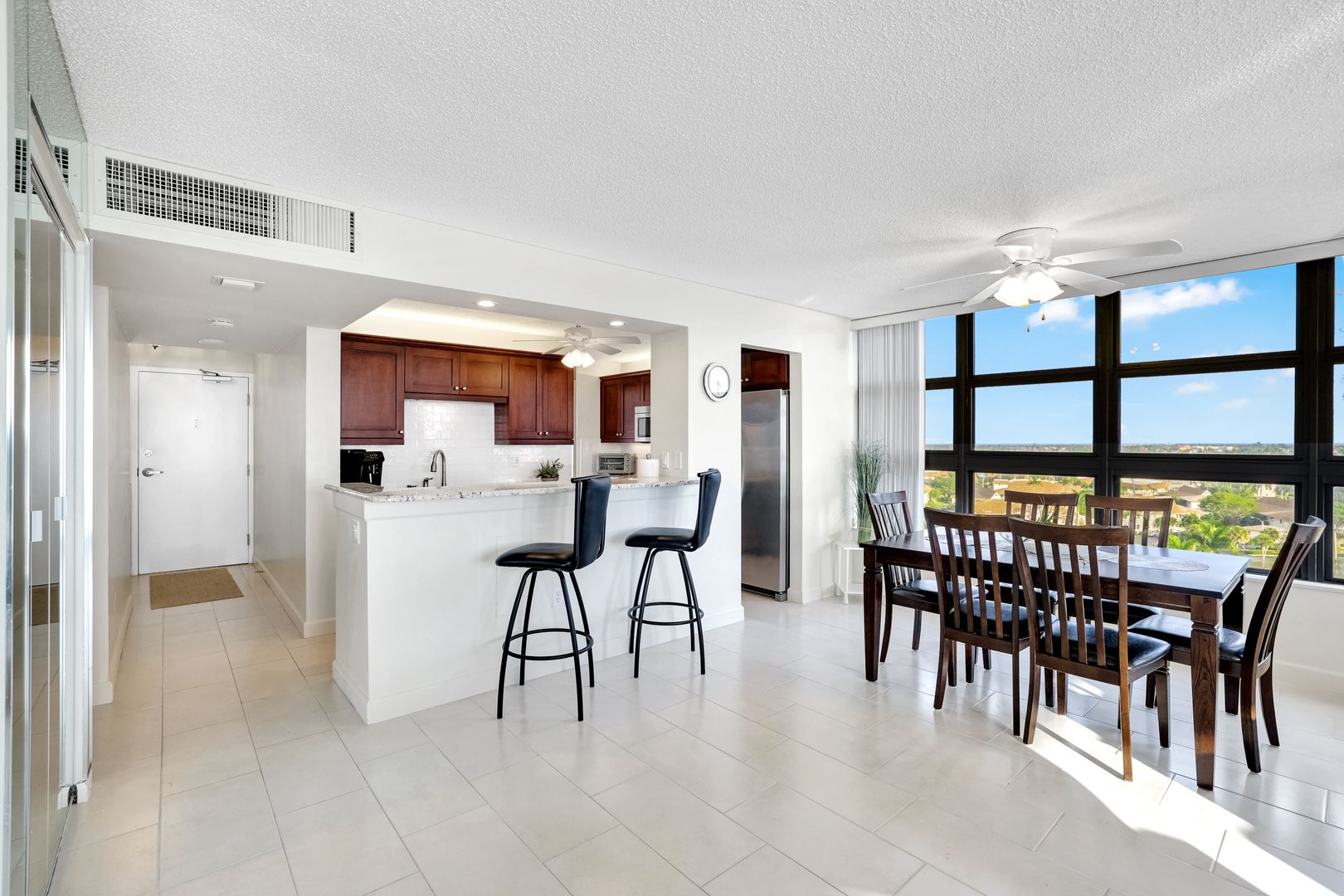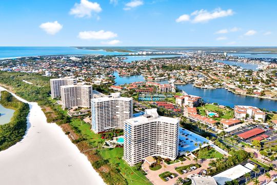 Extraordinary beachfront residence where sweeping Gulf, island, and bay views create a stunning backdrop to everyday living. This rarely available 06 stack, featuring 2-bedroom, 2-bath corner condominium has been beautifully updated and offers mesmerizing sunrises, dramatic sunsets, and panoramic vistas from every room. Bathed in natural light from its western exposure, the residence features a refined kitchen with custom cabinetry, stainless steel appliances, generous storage, and a spacious bar ideal for entertaining. High-impact windows combine elegance with peace of mind. The expansive wrap-around balcony invites effortless indoor-outdoor living—perfect for entertaining, sunbathing, or simply savoring the rhythm of the waves and tropical breezes. A secondary balcony provides a serene, private escape for quiet reflection. Offered fully furnished, ready to move in. Located within South Seas—the only Marco Island community with both beach and bay access—residents enjoy resort-style amenities, boat docks for lease, tennis and pickleball courts, kayak storage, manicured grounds, and a stunning renovated building. Gated community and ideally located close to shops and restaurants. Luxury coastal living redefined.