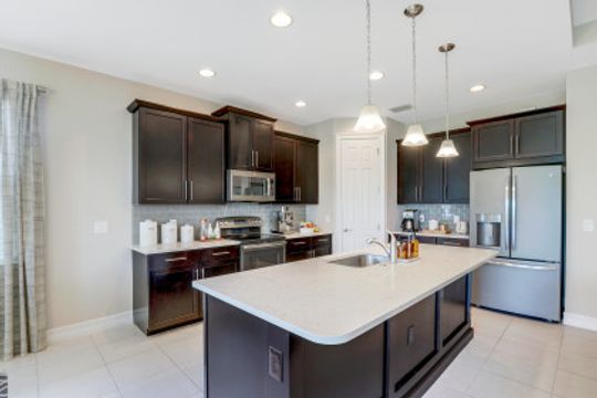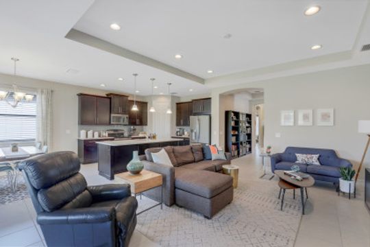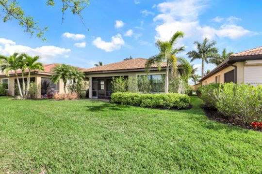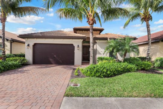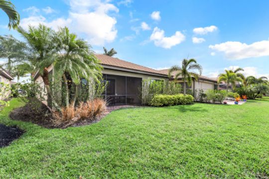 Come see this 1983 sqft single level home located in the gated community of Paloma! This 3 bedroom + den, 2 bath home features a paver driveway, garage shelving system, keyless front door entry, open concept floorplan, tile throughout and tray ceilings. The light and bright living area provides direct lanai access and is open to the dining area and large, functional kitchen that boasts a suite of stainless steel appliances, quartz countertops, large island, shaker cabinets with upper crown molding, custom backsplash and breakfast bar. The generously sized owner’s suite provides ample natural lighting, tray ceilings and a private ensuite with a tiled walk-in shower, soaking tub and dual sinks. 2 more spacious bedrooms, 1 full bath and a den complete this beautiful home. The large, southwestern facing lanai gives you breathtaking water and landscaped views and offers a space to host gatherings or simply relax and enjoy the Florida weather. Paloma boasts amenities that include a community pool, fitness center and tennis courts all while being conveniently located 15 minutes from the beach and close to Coconut Point and The Promenade.