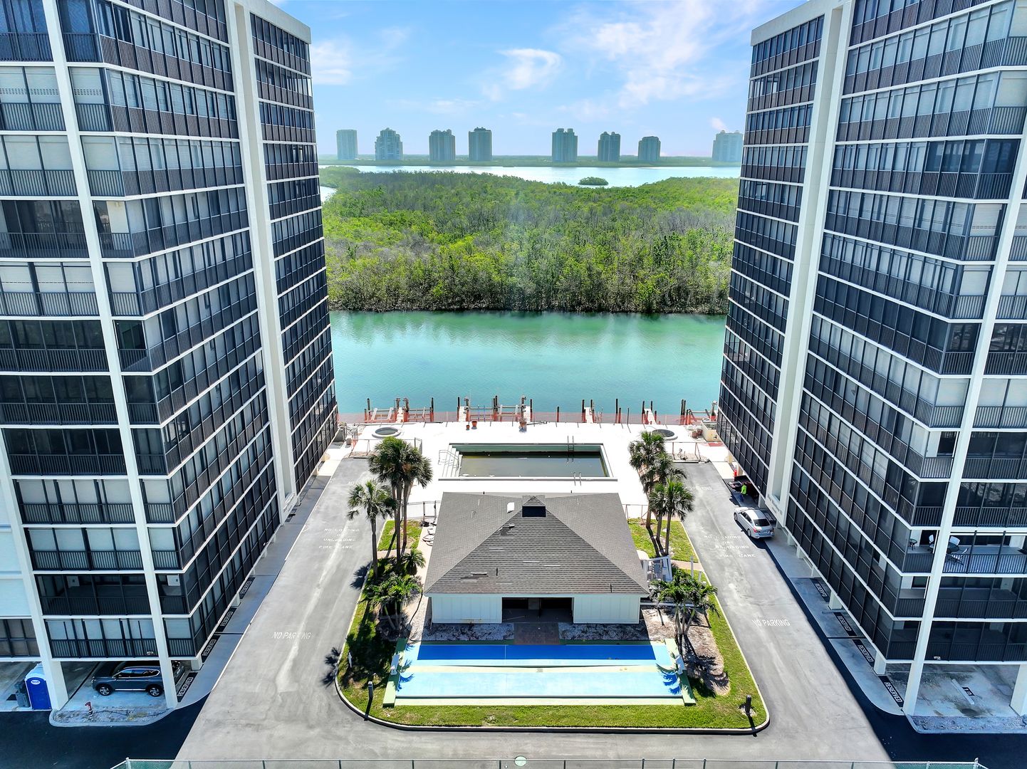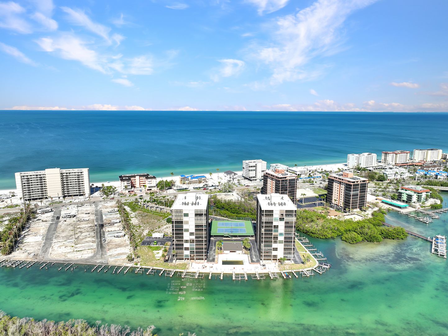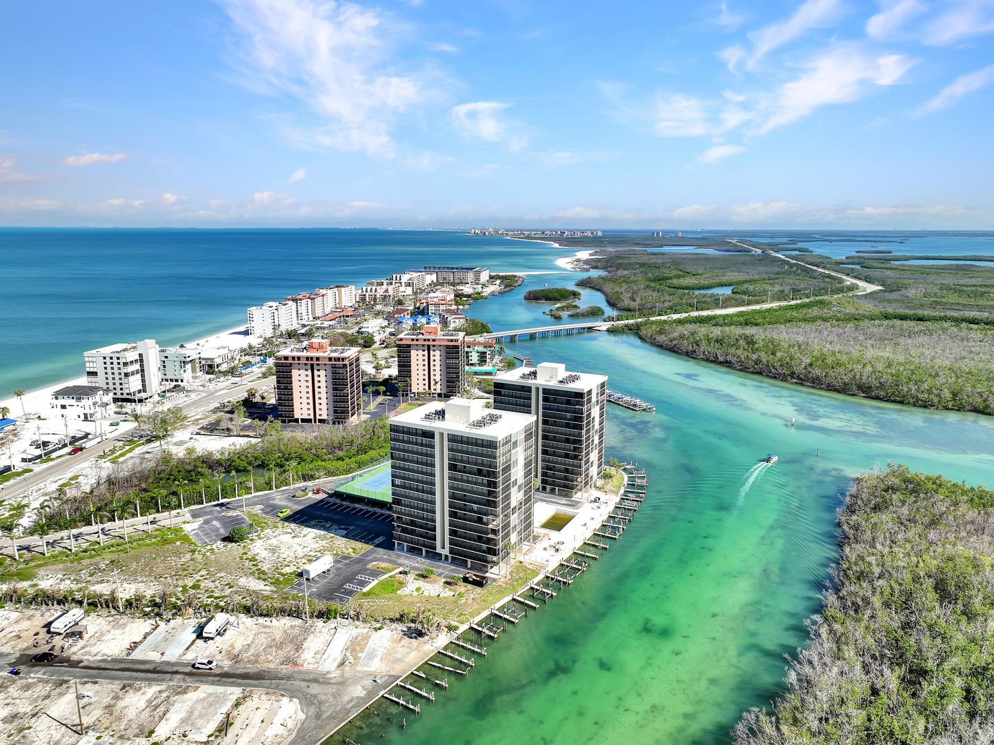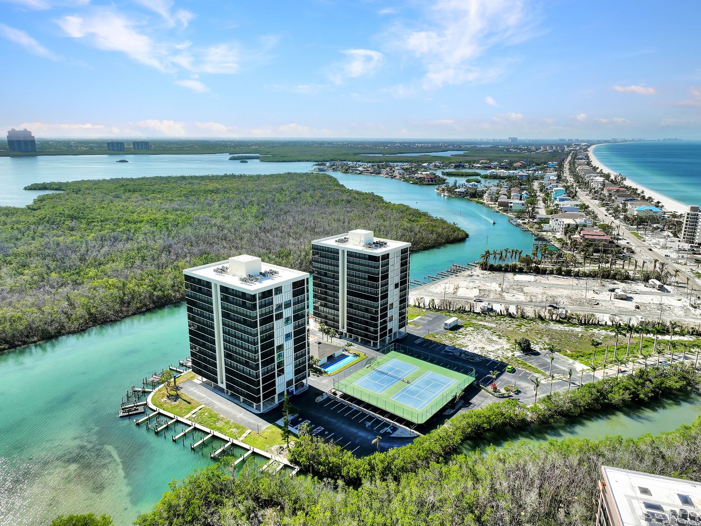 Call or Text Aron Hubers to see this unit 239-250-9300. Best Priced 2 bedroom 2 bathroom with gulf view available on Bonita Beach!! TurnKey ready unit!! Bay Harbor Club offers the best 2 bedroom layout you will find on the beach. Water views from every window allows you to enjoy the beach view from kitchen, dining, living room and the oversized master bedroom. Guests enjoy access to the lanai for beach and bay views as well. A true owners unit, the master suits has a large walk-in closet as well as 2 additional hanging closets. The Master bathroom has been updated with duel sinks and a floor to ceiling tile shower, with custom storage space. Guest accommodations include guest suit with full bathroom and custom closet. This unit includes a built in electric fireplace with mantel and built in tv/entertainment. The kitchen was redesigned to offer a view of the beach through the living room as well as a view of the bay and pool area through the kitchen window, oversized granite counter tops and updated appliances makes this unit ready for you to entertain. All new impact glass throughout, as well as a fabric storm shutter to provide privacy and protection from the elements. All assessments have been paid and the community will be ready from this fall/winter. Bay Harbor really has it all and this unit is priced to sell.
