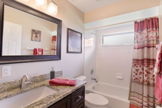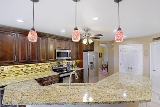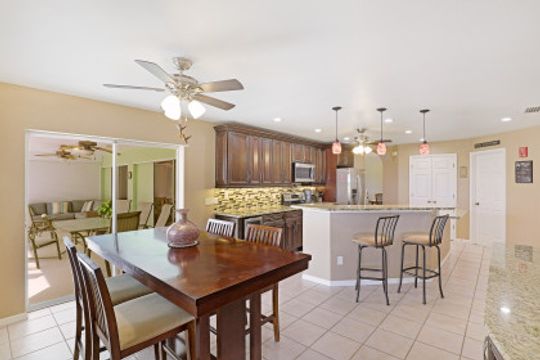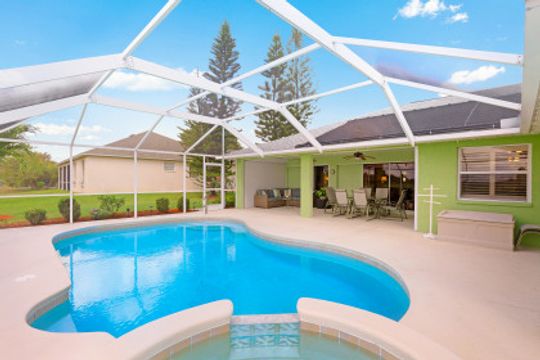 Located in the quiet neighborhood of Bethany Trace, this home has been very well maintained by the original owner. Boasting updated kitchen and bathrooms, new roof in 2017, split bedroom floor plan with a family room, breakfast nook and spacious covered lanai with solar heated pool, as well as electric storm shutters on the lanai. Bethany Trace offers central water and sewer, sidewalks and a low $40 per month HOA.