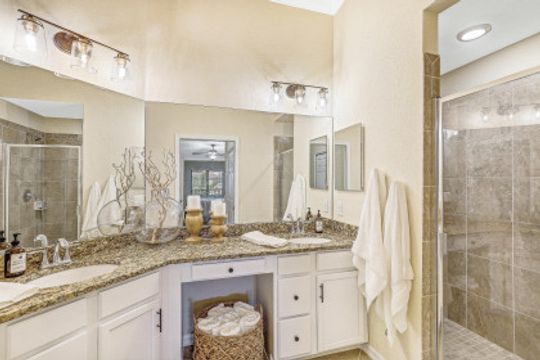 GOLF MEMBERSHIP INCLUDED at this absolutely stunning DiAngelo floor plan VERANDA! This stand out residence is gorgeously appointed with quartz countertop in the kitchen that offsets the fresh white cabinetry. In the great room, enjoy the built in cabinetry with fireplace over looking the lake and golf course with a NW exposure for comfort on the back Lanai. The spacious master suite features walk in closet and seating area. The front veranda is screened and gives you even more living area. Superbly located within walking distance of the main amenities center featuring a lagoon style pool with waterfall and lap lanes, poolside cabanas and bar/grill for resort style living. Or get busy with a robust round of golf on the Gordon Lewis designed course or tennis on one of the 8 lighted har tru courts! There's a state of the art fitness center and classes available, pampering at the full service spa and sauna. The fantastic main clubhouse offers dining options, club/game rooms. Bonita National is in a prime location, midway to RSW airport or Naples.