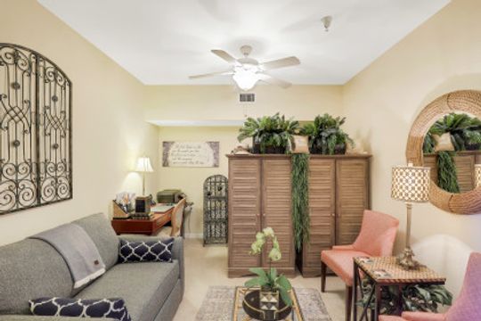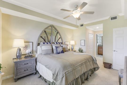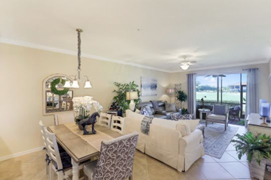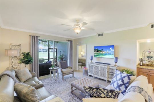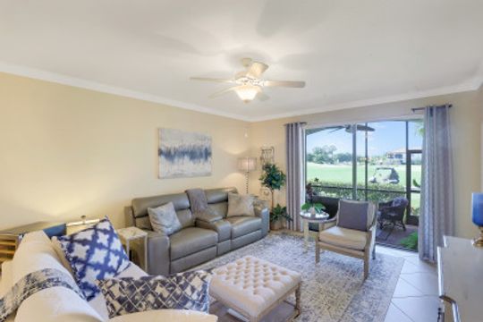 SOCIAL MEMBERSHIP included with this beautiful FIRST FLOOR Veranda! You will enjoy your coffee while watching fantastic eastern sunrises from your front lanai. Wind down with a glass of wine while taking in the Florida sunsets on your rear lanai, which also overlooks the #9 green of Bonita National’s Gordon Lewis Championship Golf Course. It feels like home from the minute you walk through the door. The owner’s bedroom boasts two spacious walk-in closets and an ensuite bath with a walk in shower. The 2nd bedroom provides guests their own space for privacy, plus a spacious den providing another excellent area for you and your friends and family to enjoy. Bonita National offers top notch amenities including Utopia-A FULL service spa, formal and informal dining available in the gorgeous clubhouse, resort-style lagoon pool with waterfall and lap lanes, pool side bar and grill, private cabanas, a Tennis Center with 8 Har-Tru surface Tennis courts and Pro-Shop, amazing aqua driving range, and of course, the beautiful 18 hole Championship Golf Course. There is never a dull moment with the superb social activities calendar, meeting and game rooms for your enjoyment!