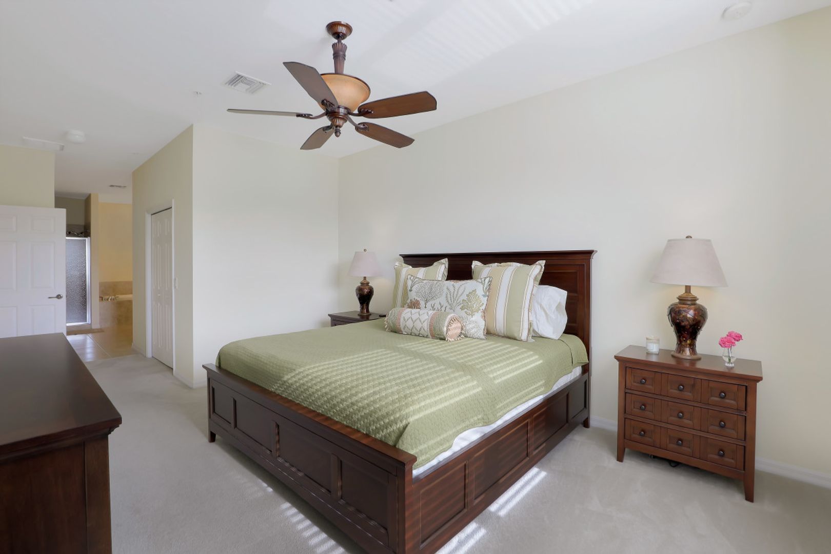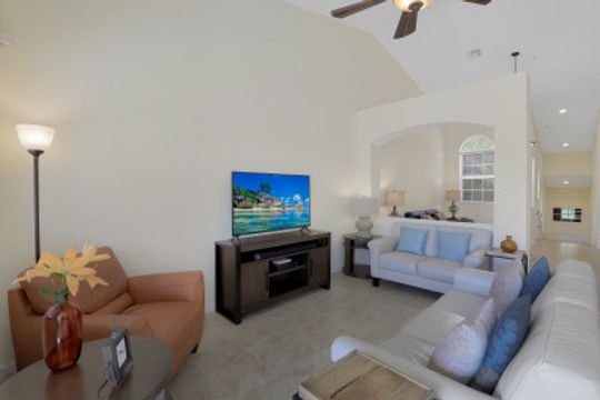 Located 5 minutes to Barefoot & Bonita Beach , this well cared for 3 bedroom 2 bath condo with attached garage is located in the newer Marbella subdivision of the Spanish Wells community. Boasting an open floor plan with split bedrooms, nicely appointed & partially furnished, new HVAC system 2020 & Hot Water tank 2018 , beautiful eat in kitchen, upscale lighting & ceiling fans, large master suite w/ two closets, his & her sinks, soaking tub & separate shower, freshly painted with neutral colors & serene water, sunset, turtle preserve & golf course views is a very affordable option for vacation or retirement home close to everything you love to do in Southwest Florida. The community of Marbella has 2 pool/BBQ picnic areas for residents & Spanish Wells has an option for Social or Golf membership to enjoy tennis, dining, fitness & golfing. Members of Spanish Wells also enjoy a membership to Tarpon Cove Yacht Club with dining, tennis, fitness & shuttle rides to Wiggins State Park Beach. At nearly 2000 sq ft there is plenty of room for entertaining family & friends as well as room to spread out & work from home if needed. A full 1 year warranty is being provided by seller at closing.