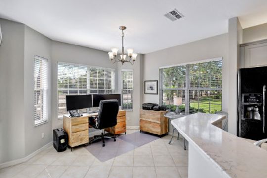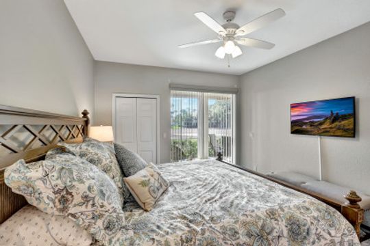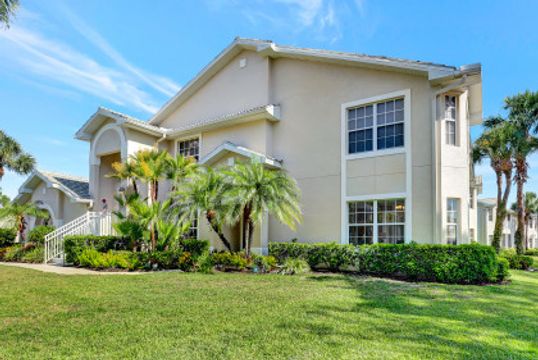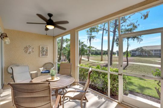 Beautiful and spacious first floor coach home with 2 car attached garage. Very nicely furnished and move-in ready!! Updates include beautiful granite in kitchen and new guest and master baths! Bright open floorplan with panoramic golf course and lake/fountain views! Social membership included and Golf Memberships are available. Golf Course is currently under a fabulous enhancement renovation! Just minutes from I-75 and beaches. Hunters Ridge is very friendly, casual, and offers a large variety of social activities. Hunters Ridge is financially stable with low fees and no CDD's!! Enjoy all a private golf country club has to offer including large community swimming pool with poolside cafe, club patio bar, fitness center, clubhouse, dining room and grill room, tennis courts, pickleball courts, bocce ball, golf simulators and much more!