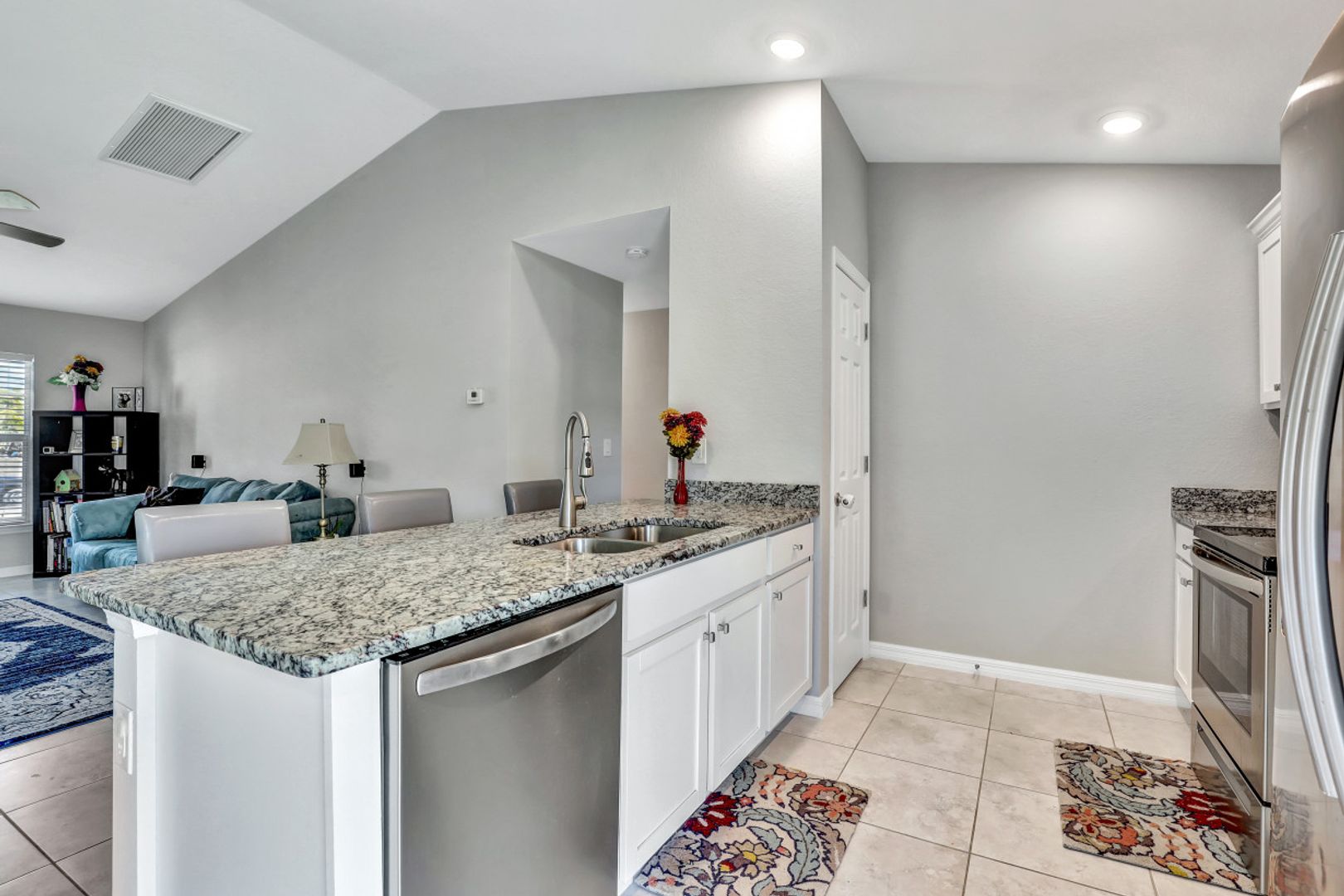 YOUR NEW HOME AWAITS YOU WITH THIS CONVENIENT SPLIT FLOOR PLAN!! The open concept makes this three-bedroom, two-bathroom newer construction home one of our most desirable properties in the NW Cape Coral. Take advantage of this quiet neighborhood that is perfect for pets and family to enjoy privacy, dual vanities in the master bath, and a large walk-in closet in the owner's suite make this property perfect for you. As you arrive at your new home you will be introduced to easy maintenance landscaping simple enough to add your own touches. Entering through the doorway you are welcomed with an open concept & inviting living area. You will find a large and comfy living room where you will enjoy watching the big game or having a quiet evening. You will be impressed with this gorgeous home. This home is in the highly desirable and growing NW part of Cape Coral. Open floor plan with cathedral ceilings and kitchen overlooking living area. Home features nice upgrades such as tile throughout, granite, stainless steel appliances, and granite countertops. The open living concept with plenty of room for dining and living. The Laundry room is inside the home.