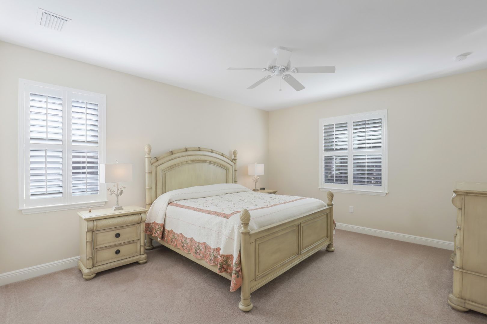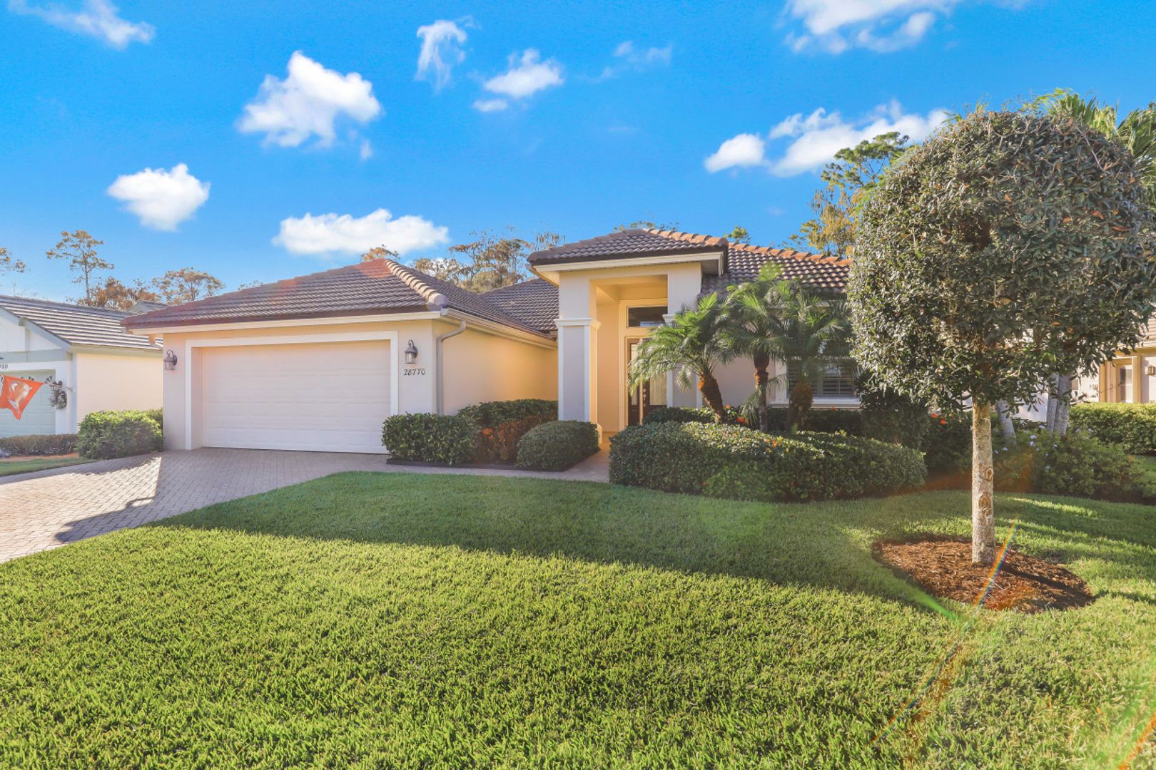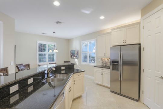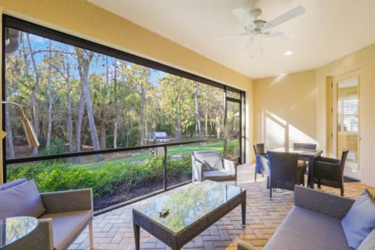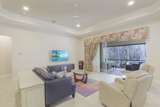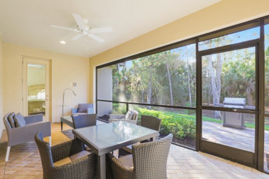 Gorgeous Single Family Home! This Open and Spacious Floorplan is Very Nicely Furnished and beautifully appointed with 18” tile on diagonal, coffered ceilings in foyer and great room, 8 ft. doors and sliders! Large kitchen with granite counters & stainless steel appliances! Plantation Shutters throughout! Brick paver driveway and lanai. The tranquil location offers a lovely lanai that overlooks a beautiful preserve with New Motorized Storm Smart Hurricane Screen and extended outdoor patio!