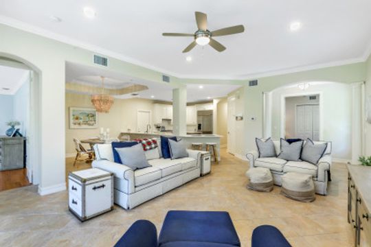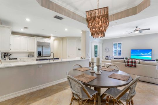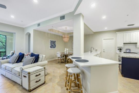 Experience the Ritz Carlton lifestyle in this immaculate, spacious 1st fl condo ideally located on a cul-de-sac in the private/gated enclave of Castillo in Tiburon. A recently remodeled open kitchen allows for a true great room plan. Perfect for entertaining, the gourmet kitchen has a large center island & breakfast bar w/quartz & marble countertops, white cabinets, SS appliances, gas cooktop & walk-in pantry. A newly painted interior, custom plantation shutters, lighting & ceiling fans create a bright & relaxing living space. The outdoor lanai facing the preserve provides wooded views w/the ultimate in privacy. Expansive 2-car garage w/ample storage space. Castillo residents enjoy a quiet community pool, w/spa, BBQ area & comfortable seating. Rated one of the best US golf resorts, Tiburon includes two 18-hole, Greg Norman-designed golf courses & is home to the LPGA Tour's CME Group Tour Championship, the PGA TOUR's QBE Shootout, PGA Tour Champions Chubb Classic, LiveFest Music Festival and much more! Just minutes away from Vanderbilt Beach, Mercato, Waterside Shops and downtown Naples, this 5-star community is resort living at its finest. Golf available w/no waiting list!