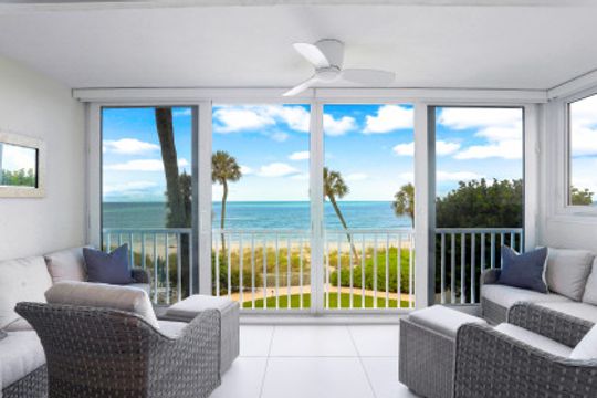 Elevate Your Experience of Surf, Sand & Splendid Sunsets! Direct BEACHFRONT living with UNOBSTRUCTED Gulf views at Jamaica Towers, a community of just 32 owners. REMASTERED from floor to ceiling, this light-filled CORNER residence presents a unique opportunity to own your slice of paradise, Clive Daniel-furnished if desired. The spacious floor plan was redesigned to couple a seamless great room flow with the privacy of 3 bedroom suites. Signature features range from under-lit onyx-quartzite countertops to raised tray ceilings and linear A/C vents behind crown molding with up-lighting, and from impact windows/sliders to a brand new washer-dryer in the home. The coastal style favors a neutral color palette throughout. From the sliding glass door-enclosed lanai that opens to the soft breezes and soothing sounds of the Gulf shore, watch dolphins play & birds probe at the water's edge. And toast to the beauty of awesome sunsets! Impeccably maintained building with renovated lobby, on-site manager, tropical beachfront pool, BBQ grills, ample private parking and storage, bike-kayak-paddleboard storage, etc. Its coveted Gulf Shore Boulevard location places you near Downtown and Venetian Village.