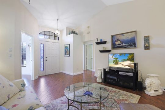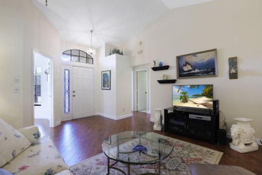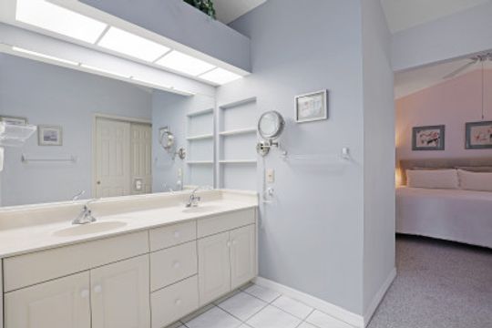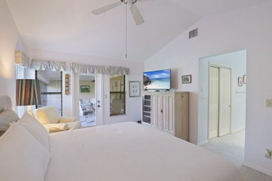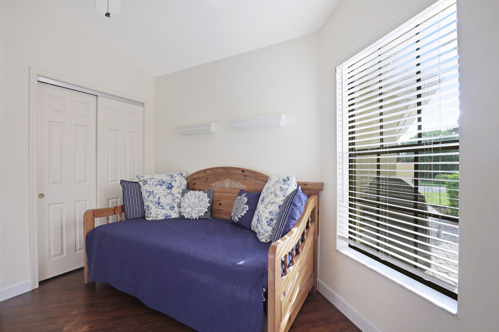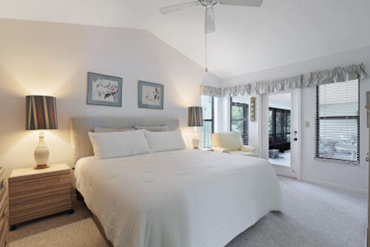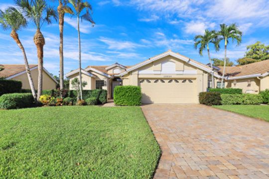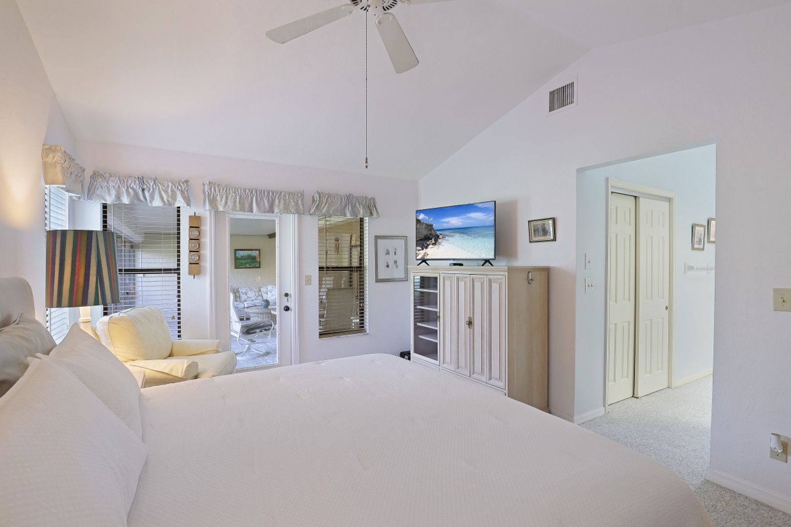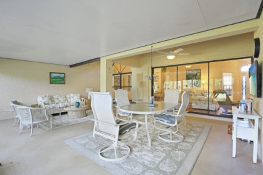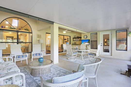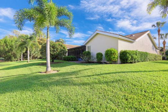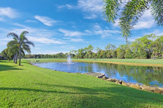 Charter Membership Included which allows the owner to choose, on an annual basis, to be a “social only” or “golf/social” member ($35,000 value)! Excellent cul-de-sac location, end residence, on the 9th fairway with beautiful lake, fountain, and golf course views! Three bedrooms, two baths with large extended lanai, paver courtyard entry and driveway with 2 car attached garage! A/C 2018! Electric Storm Shutters on lanai! Hunters Ridge is very friendly, casual, and offers a large variety of social activities. Hunters Ridge is financially stable with low fees and no CDD's!! Enjoy all a private golf country club has to offer including large community swimming pool with poolside cafe, club patio bar, fitness center, clubhouse, dining room and grill room, tennis courts, pickleball courts, bocce ball, golf simulators and much more!