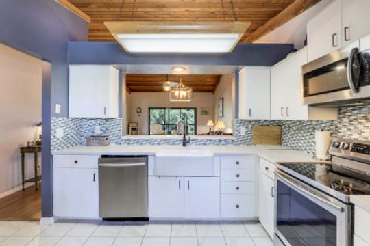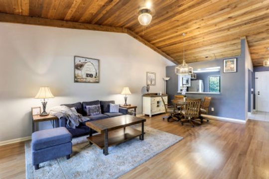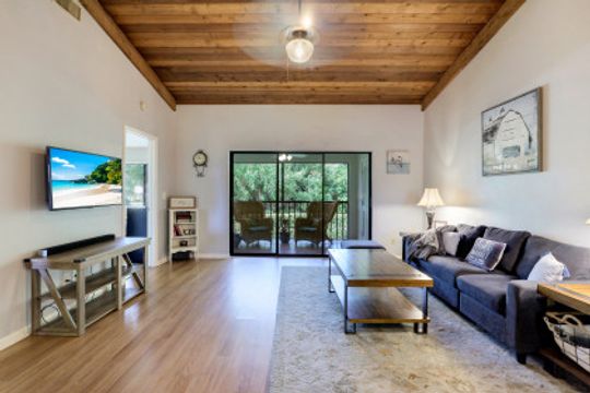 Welcome to this updated & charming 2 bed/2 bath condo. Upon entering, your eyes will be drawn to the beautifully dramatic vaulted wood ceilings giving this home its spacious yet cozy feel. Refreshed kitchen includes newer appliances, a farmhouse sink and tile backsplash. Low maintenance wood look & tile flooring throughout (no carpet). Both baths have been updated and the home is tastefully painted in a warm, neutral palette. Sip your morning coffee on the screened lanai while enjoying the sunrise painted sky. Windsor is an intimate community within Kings Lake where you can enjoy a lakeside walking/jogging path or socialize with your neighbors at the community pool. Easy walking distance to Kings Lake Square shopping center to visit Publix, Starbucks, restaurants & other convenient services. Low fees cover all exterior expenses and include cable & water so you can enjoy a worry-free SW Florida lifestyle. Best of all you are only minutes to historic Olde Naples famous for incredible shopping & dining. Or visit the nearby white, sugar sand Gulf of Mexico beaches.