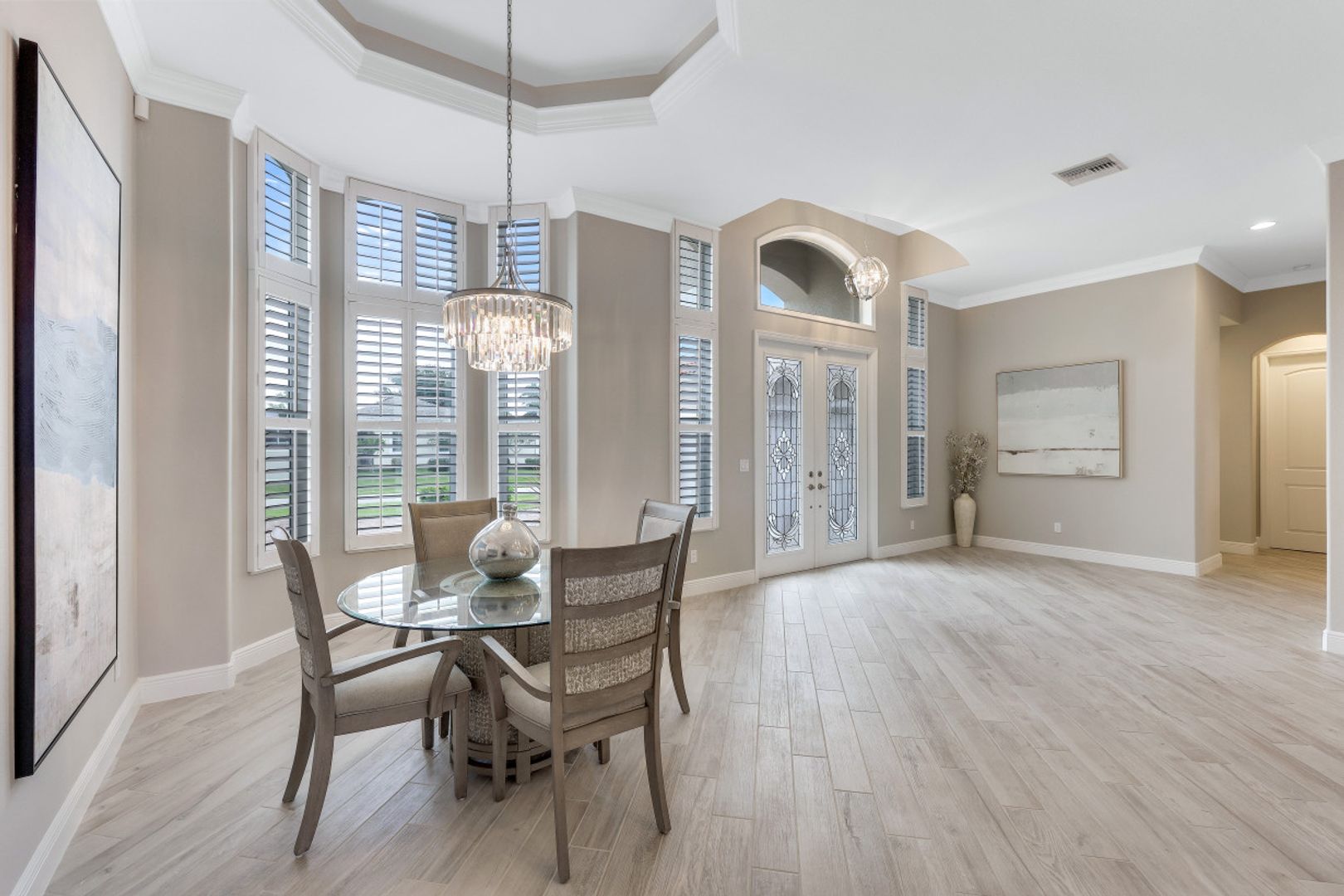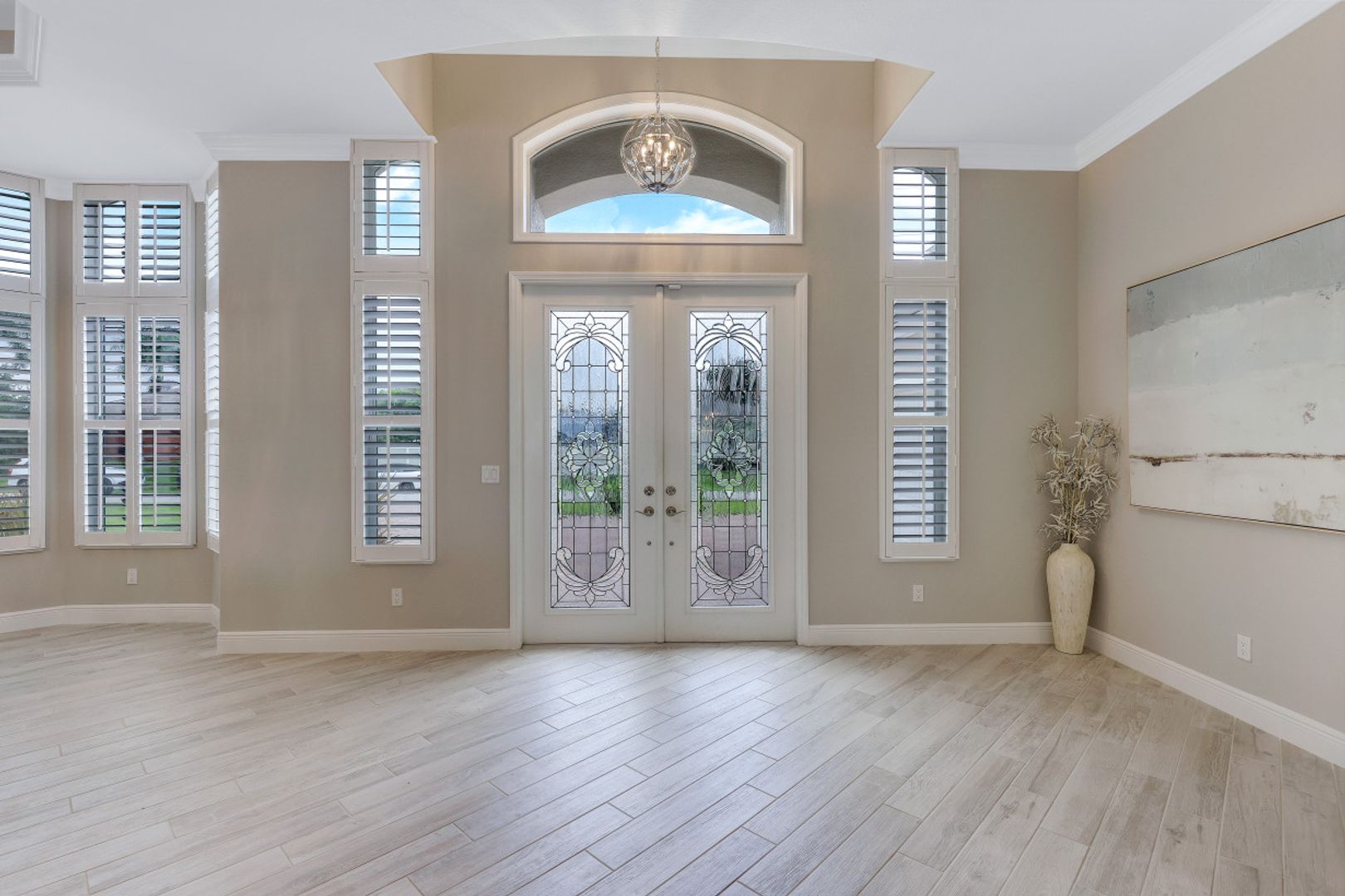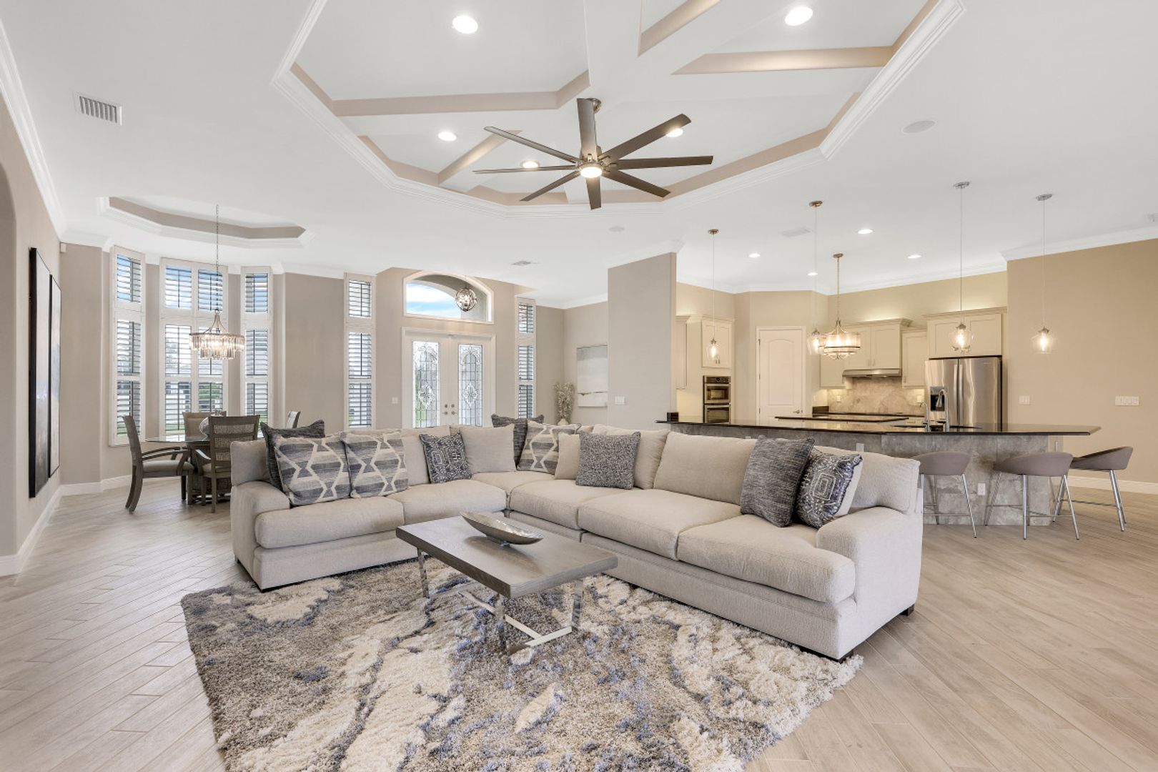 STUNNING SUNSETS WITH WESTERN EXPOSURE ON UNOBSTRUCTED INFINITY CANAL W/LAKEFRONT VIEWS off canal cul-de-sac with GULF ACCESS in SW Cape Coral. Enter a great open room floor plan with an immediate striking water view, 11' tray ceilings, 8' doors, plank tile on diagonal & plenty of natural light. Over 3400 sq ft of living space, formal dining & multiple points of entry onto the extended paver lanai area. The large breakfast bar kitchen with an island features black granite counters, a wall oven, stainless steel appliances, under mount sink, & tankless reverse osmosis system. The entire house is wired for high-speed internet in every room. Owners’ suite with tray ceiling & walk-in closets has a large bath with coffered ceilings, dual vanities, a soaker tub & walk-through shower. Large additional bedrooms plus a large guest room/junior master, each has full baths. Features plantation shutters throughout plus crown molding, newly painted, steam shower, and 6' Napoleon Allure electric fireplace. The pool has a swimming machine for a great workout. NOT IN A FLOOD ZONE! Located on a quiet, low-traffic side street. White sandy beaches & world-class fishing can be at your fingertips.