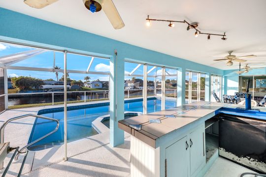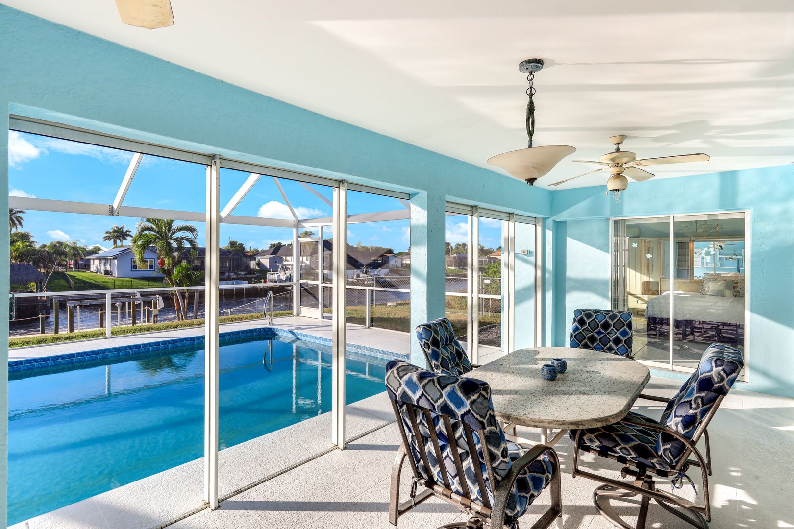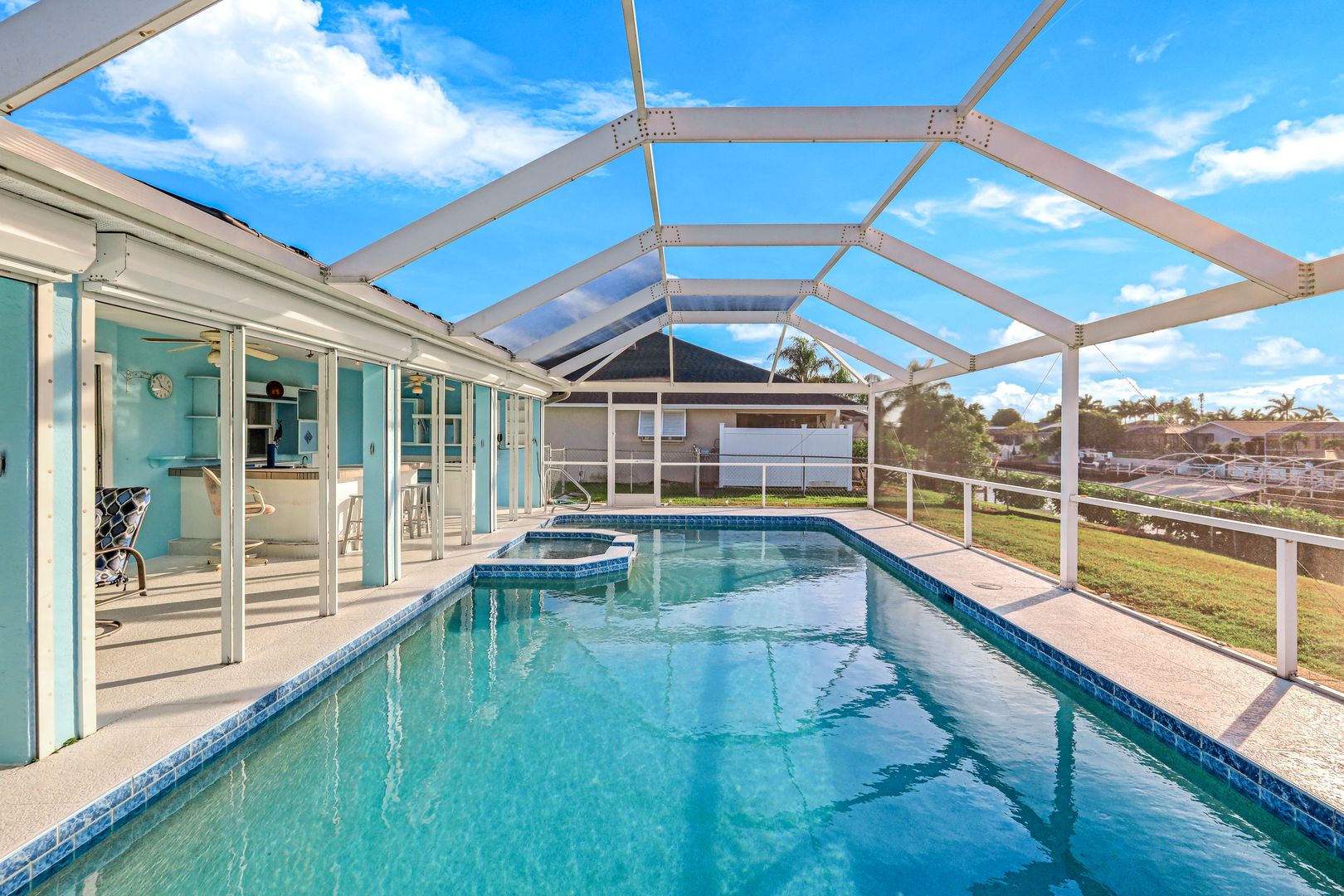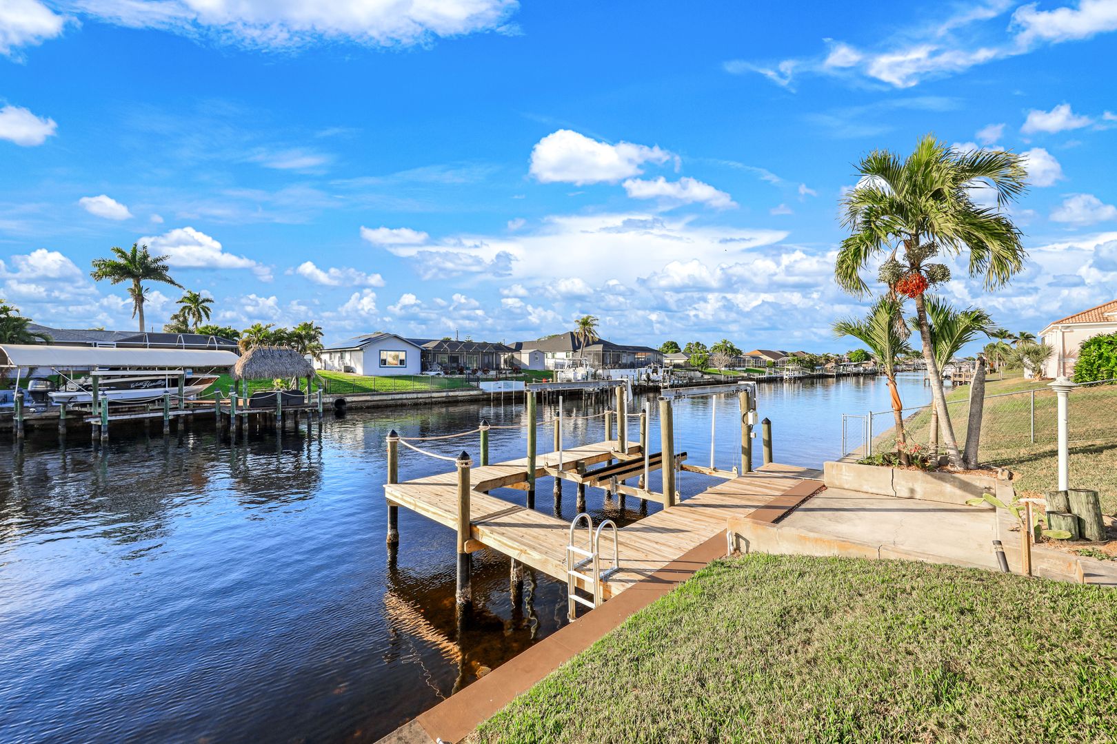 PRICED TO SELL – Great Opportunity to own this 3 Bedroom, 2 Bath, Gulf Access Pool home, situated on the Rubican Canal in Southeast Cape Coral. Enter through the Etched Glass Entry Door and immediately take in the View of the Huge Sparkling Pool and Spa, and just beyond is the Dock and Lift waiting for your boat to call it home. Pocketing Sliding Glass doors connect your inside living area with the Screened Pool area and Outdoor Kitchen. This one-owner home is ready for you to make it your own. The Primary Suite includes a Good-sized Walk-in Closet, Large Walk-in Shower and Separate Tub. The Dock was Redone in 2024 and the Boat Lift has a New Motor. Other Features include: New Roof 2022, New Water Heater 2022, New AC 2017, New Screen Enclosure 2023, New Fence 2021, 7 New Impact Windows 2019, Pool and Spa are Solar Heated, Tile Floors throughout, Pool Bath, Indoor Laundry Room, Over-sized 2-Car Garage with Utility Tub, Drop-stair Attic access, an Impressive Circle Driveway, all on a Large 12,465 sq ft Lot. For your Safety and Storm Protection, there are 7 Impact Windows, Accordion, Crank Down and Manual Shutters, as well as Electric Rolldown Shutters on the Lanai. One bedroom is currently being utilized as the dining room. All Utility Assessments are Paid in Full. Home is in an X Flood Zone and does not require flood insurance. Ideal Location close to Shopping and Dining with easy access to Fort Myers, Punta Gorda, all of Cape Coral, and just a short drive to RSW International Airport and Punta Gorda Airport.