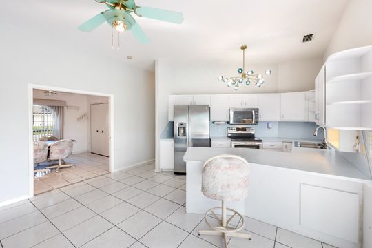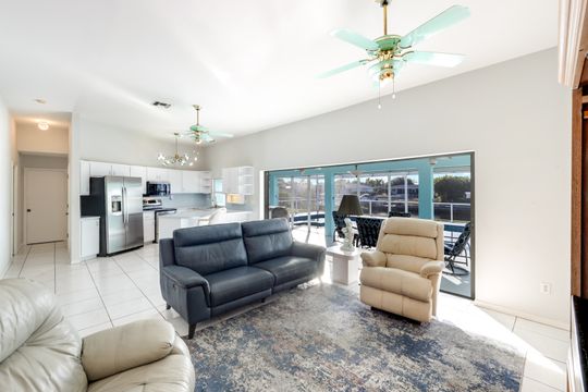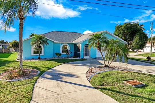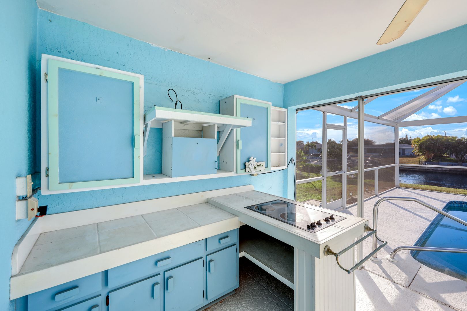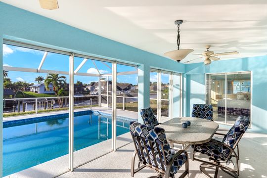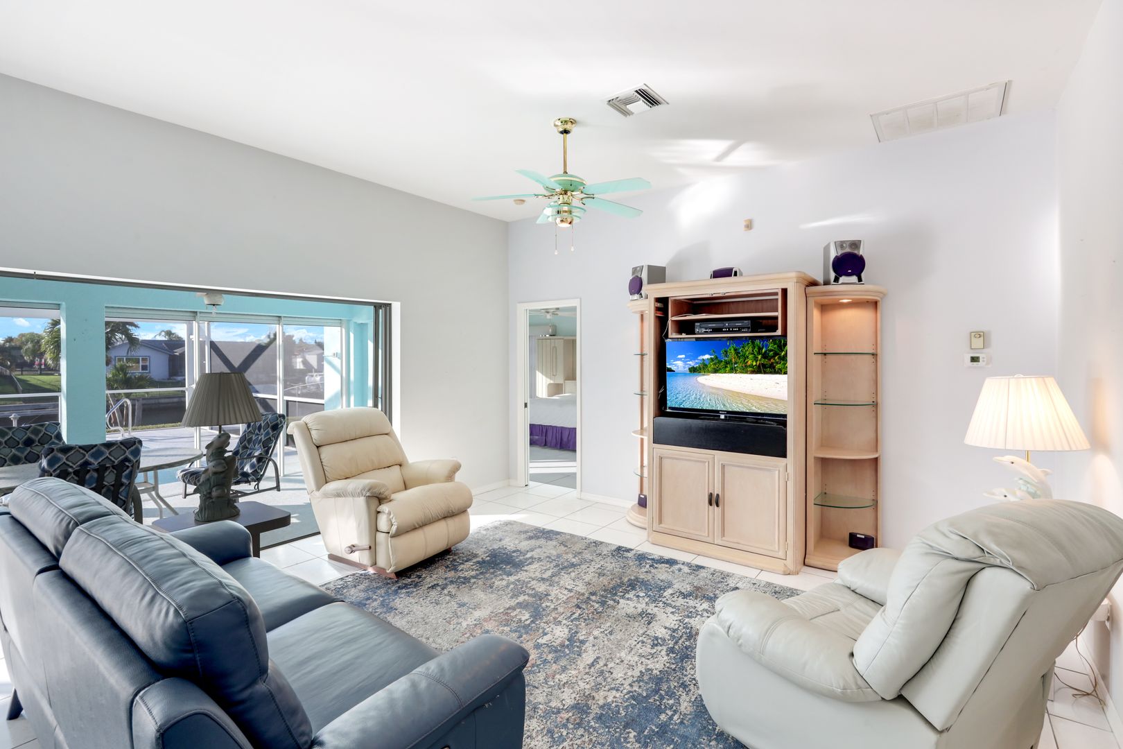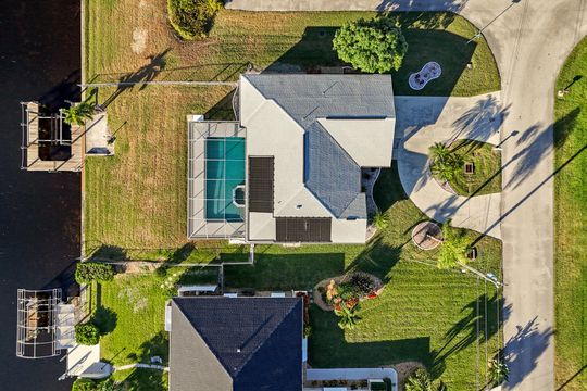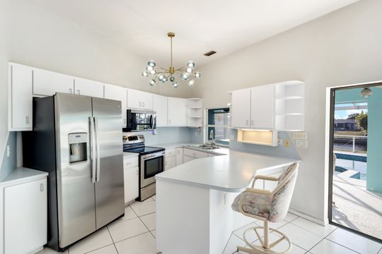 PRICED TO SELL – Great Opportunity to own this 3 Bedroom, 2 Bath, Gulf Access Pool home, situated on the Rubican Canal in Southeast Cape Coral. Enter through the Etched Glass Entry Door and immediately take in the View of the Huge Sparkling Pool and Spa, and just beyond is the Dock and Lift waiting for your boat to call it home. Pocketing Sliding Glass doors connect your inside living area with the Screened Pool area and Outdoor Kitchen. This one-owner home is ready for you to make it your own. The Primary Suite includes a Good-sized Walk-in Closet, Large Walk-in Shower and Separate Tub. The Dock was Redone in 2024 and the Boat Lift has a New Motor. Other Features include: New Roof 2022, New Water Heater 2022, New AC 2017, New Screen Enclosure 2023, New Fence 2021, 7 New Impact Windows 2019, Pool and Spa are Solar Heated, Tile Floors throughout, Pool Bath, Indoor Laundry Room, Over-sized 2-Car Garage with Utility Tub, Drop-stair Attic access, an Impressive Circle Driveway, all on a Large 12,465 sq ft Lot. For your Safety and Storm Protection, there are 7 Impact Windows, Accordion, Crank Down and Manual Shutters, as well as Electric Rolldown Shutters on the Lanai. One bedroom is currently being utilized as the dining room. All Utility Assessments are Paid in Full. Home is in an X Flood Zone and does not require flood insurance. Ideal Location close to Shopping and Dining with easy access to Fort Myers, Punta Gorda, all of Cape Coral, and just a short drive to RSW International Airport and Punta Gorda Airport.