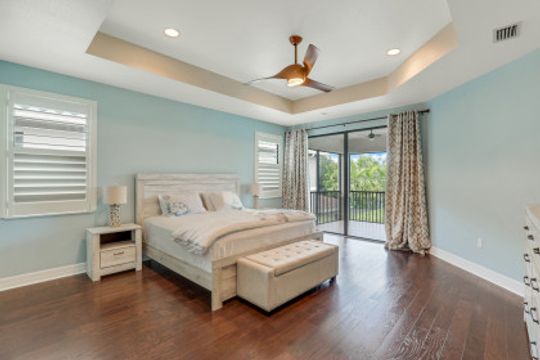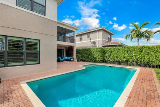 Running out of room? Upgrade your home and community in this substantial home where everyday living feels like a vacation. Savor your morning coffee while watching the sunrise from the screened master balcony. Then take a refreshing dip in the sparkling pool. With 6 bedrooms, formal dining, loft, living & family rooms this popular Shiraz floor provides space for everyone to have fun. Home chefs will love the light & bright gourmet kitchen with upgraded appliances including double oven & ambient lighting. Upstairs, the master suite has custom walk-in closets and a bath with separate his & her spaces connected by a double entry shower. A professionally painted interior is completed with plantation shutters on all windows, beautiful wood flooring & ceiling fans. The fenced yard is great for kids to play or dogs to run. Located in Riverstone, a social, vacation-inspired community zoned for "A" rated schools. Recreation area includes a fitness center, social hall, resort & lap pools, spa, 5 Har-Tru tennis courts, basketball & pickleball court, tot lot & full-time activities director. Now is the time to enjoy the Naples lifestyle you have been dreaming of.