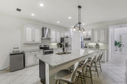Searching for more room? Upgrade your home & community in this spacious yet cozy home where you can enjoy the Naples lifestyle you've been dreaming of. With 3,200 sq. ft., 5 bedrooms & loft this Merlot floor plan easily accommodates a large family or guests. Entertain in the heart of the home with a family room, living room, formal dining & open gourmet kitchen that flow together. Large 1st-floor master with His & Her walk-in closets. Master bath has double vanity, jetted tub & walk-in shower. Numerous upgrades include: all windows & doors have been upgraded to impact resistant glass, new carpet, newer dryer, newer dishwasher, 80-gallon water heater, upgraded kitchen cabinets, hooded range, stainless steel appliances, laundry pre-plumbed for sink & upgraded flooring. Pocket door added to 5th bed/bath to create a suite. Out back is a screened lanai with a private, sunny south-facing yard & plenty of room for a pool. Located in Riverstone, a social, vacation-inspired community for all ages. Including fitness, social hall, resort & lap pools, spa, 5 tennis courts, basketball & pickleball courts, & tot lot. A full-time activities director plans fun events so it's easy to make friends.